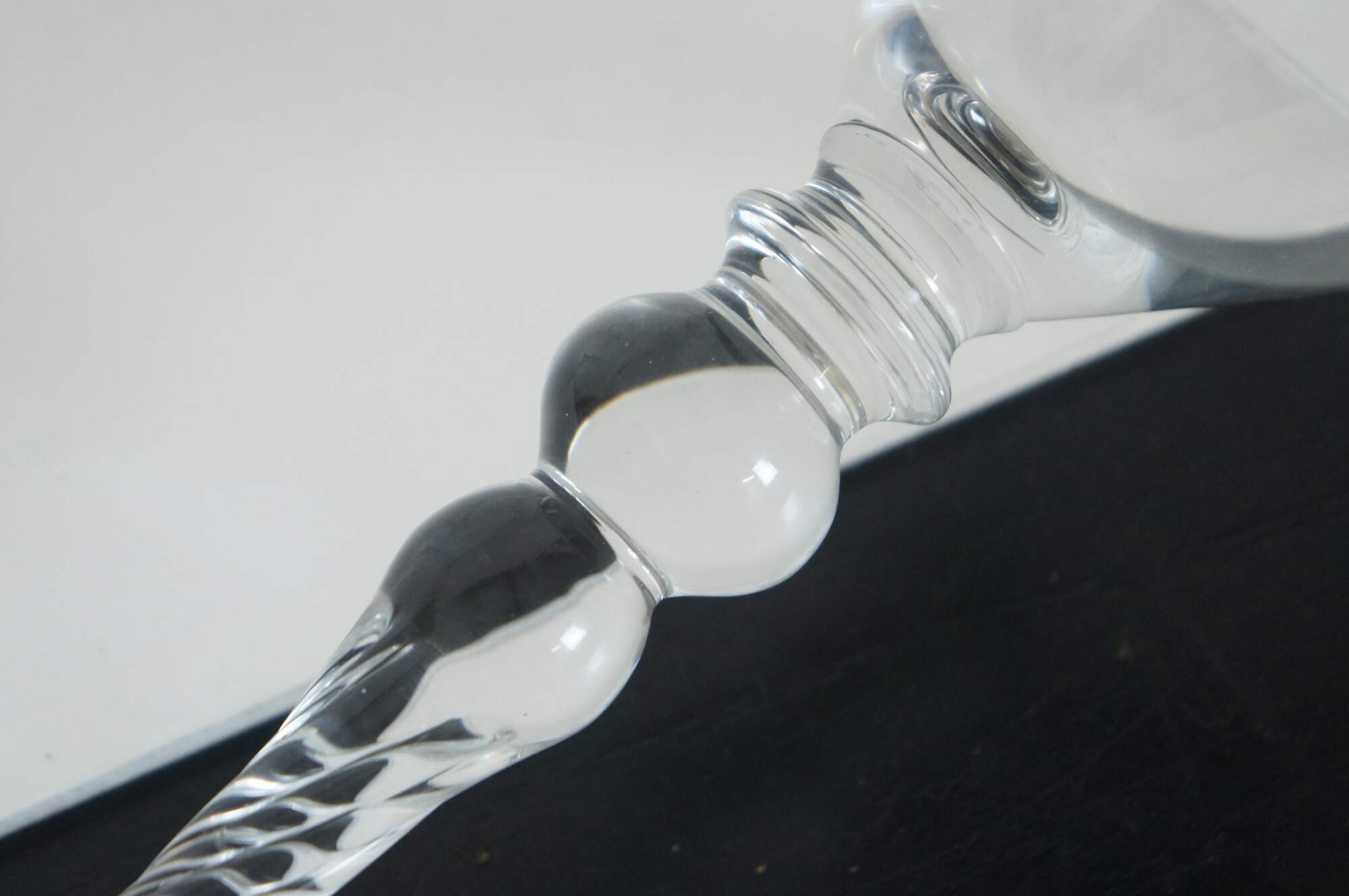 Set of four vintage glass martini glasses featuring tall tapered form with stacked ball / orb and twisted design.