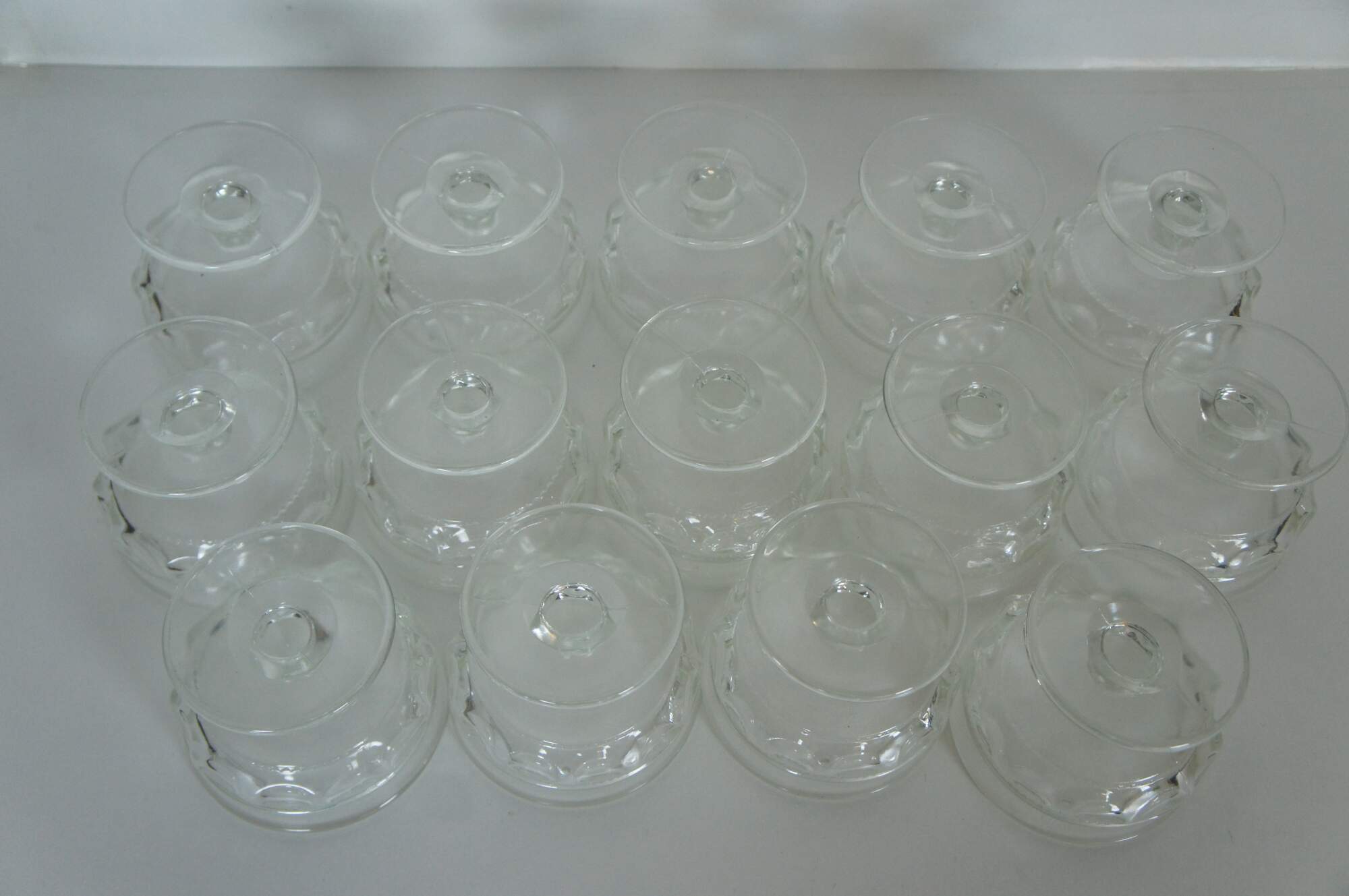 Vintage set of fourteen Indiana Glass sherbert compote glasses in the Kings Crown Thumbprint design.