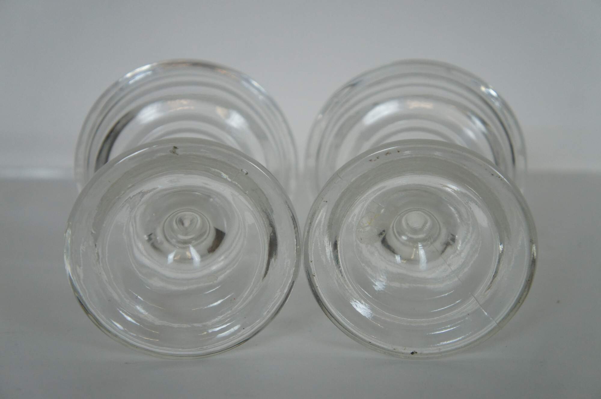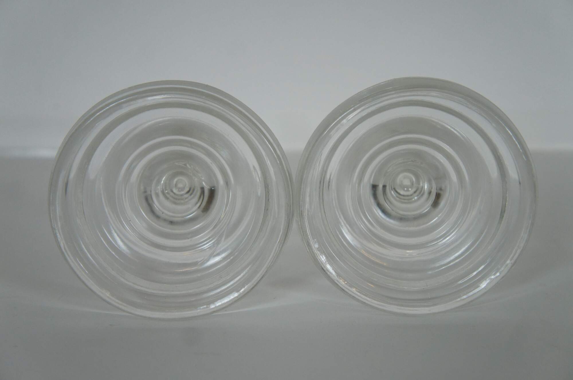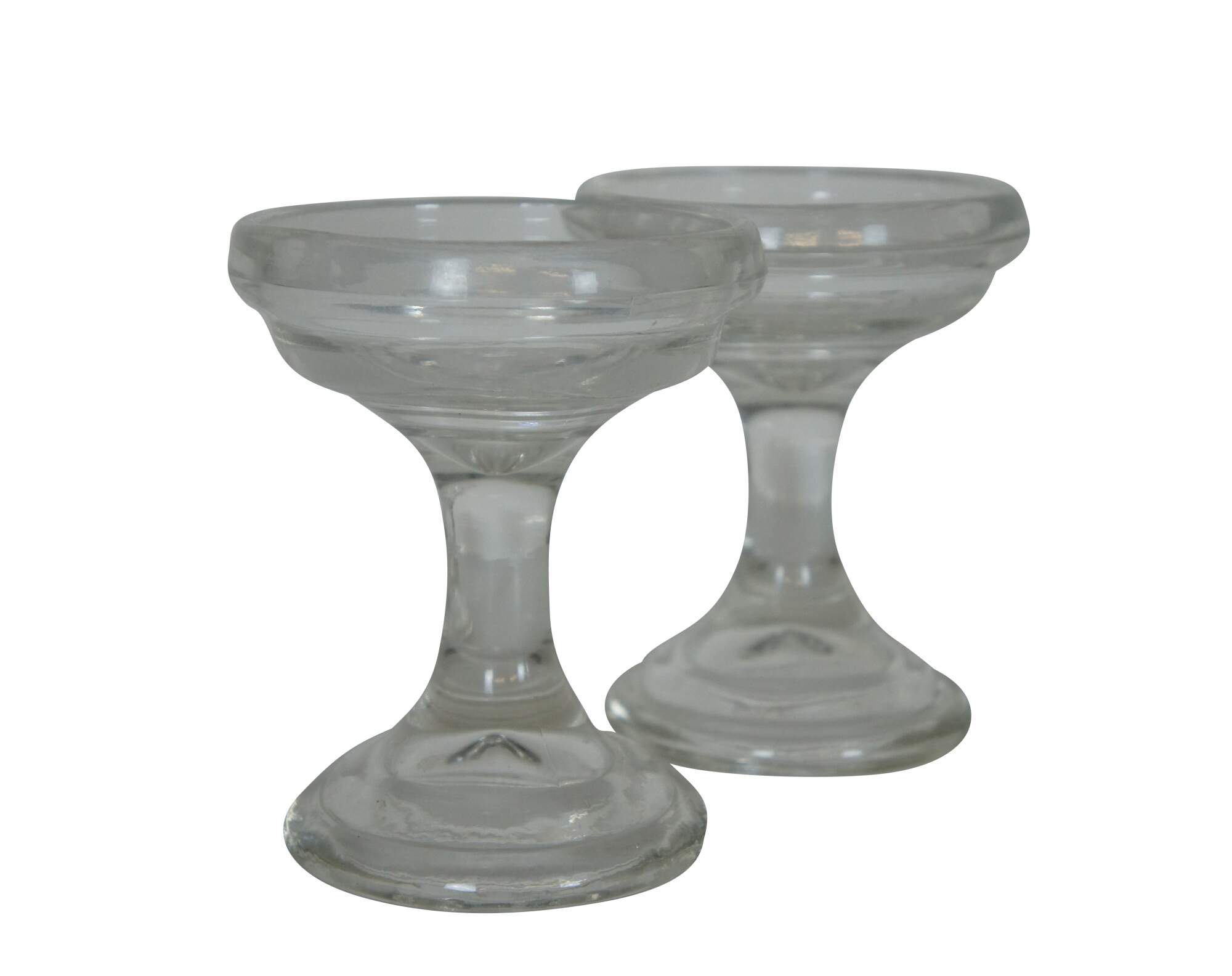 Set of two vintage pressed glass candle holders.