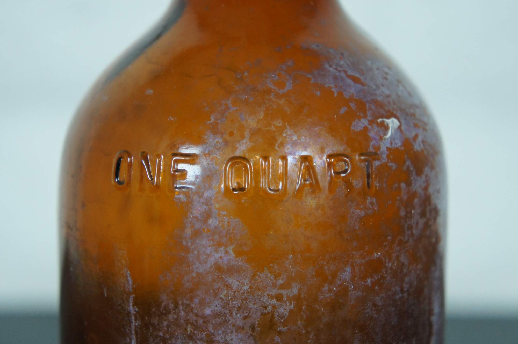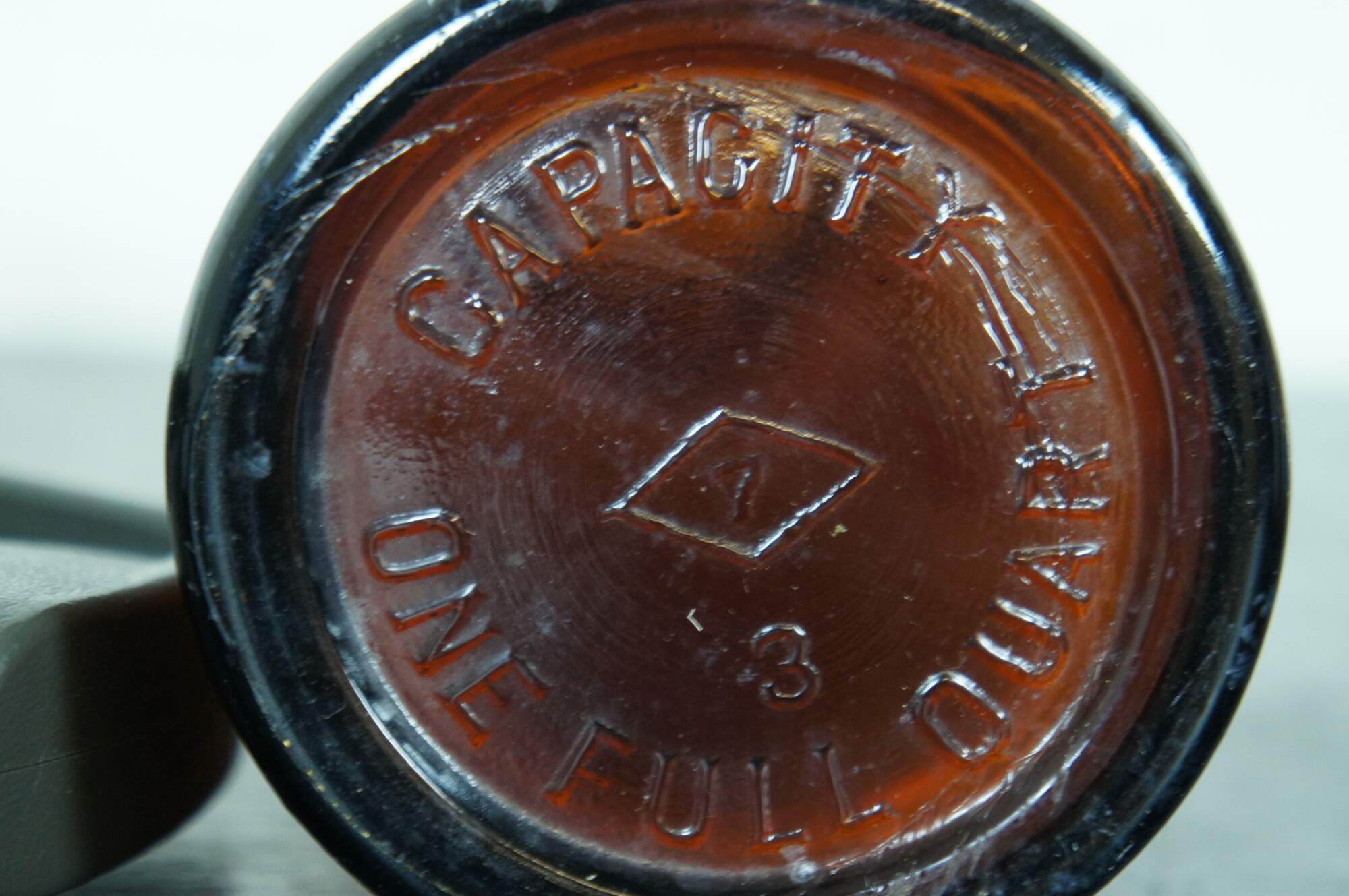 Antique amber glass bottle, most likely made by the Illinois Glass Company for medical use, circa 1900-1929. Embossed with the words “One Quart” on the side and “Capacity One Full Quart” and a diamond with a 7 inside it, above the number 3, on the base. “From 1929-1983 the Owens-Illinois Glass Company (1929 – present) was the world’s largest glass producing factory located in Alton. As a major employer to Alton residents, it boosted the economy and made Alton a highly successful industrial town in the 20th century. In the late 19th century, Alton had an established glass industry comprising of several small businesses, with the largest being the Illinois Glass Company. It was started in 1873 by William Eliot Smith (1844-1909) and Edward Levis (1819-1903).1 After 1877 their success demanded a larger space for production, thus prompting Alton leaders to fundraise to help purchase land to keep the company from moving to St. Louis.2 By 1915, the Illinois Glass Company modernized the glass industry by using bottle machines invented by the Owens Bottle Machine Company that replaced skilled glassblowers. The machine made producing standardized bottles faster and at a higher quantity. The Illinois Glass Company produced glass products for a wide variety of uses: medicine bottles, alcohol bottles, soda bottles, ash trays, and more.3 The company’s success prompted the Owens Bottle Machine Company to buy the Illinois Glass Company for $19 million in 1929, which created the Owens-Illinois Glass Company. William (Bill) Levis (1890-1962), the former President of the Illinois Glass Company and grandson of co-founder Edward Levis, became the new Executive Vice President and General Manager of the Owens-Illinois Glass Company, the headquarters of which moved to Toledo, Ohio. Soon, the Alton plant became the largest glass bottle producers and the largest container factory owned by Owens-Illinois.5 Alton had three plants: the General Engineering Division, Plant #97 Alton Central Shops Division, and Plant #7, which was the Glass Containing Plant. The height of production for the Alton plant was in 1973, with 2,400 workers that operated nine of the ten available furnaces and 31 bottle-forming machines. Rumors of the Alton Plant #7 closing circulated in the 1980s following several layoffs, leaving the plant running at 10% of its former capacity. On July 27, 1983 news broke that the Alton plant would close due to a lack of business, leaving 17 plants open nationwide. The Alton plant closed on October 19, 1983 after 110 years of operation, leaving the remaining 312 employees without their jobs. The shutdown came from the growing popularity of plastic and aluminum bottles, slowing the demand for glass bottles.6