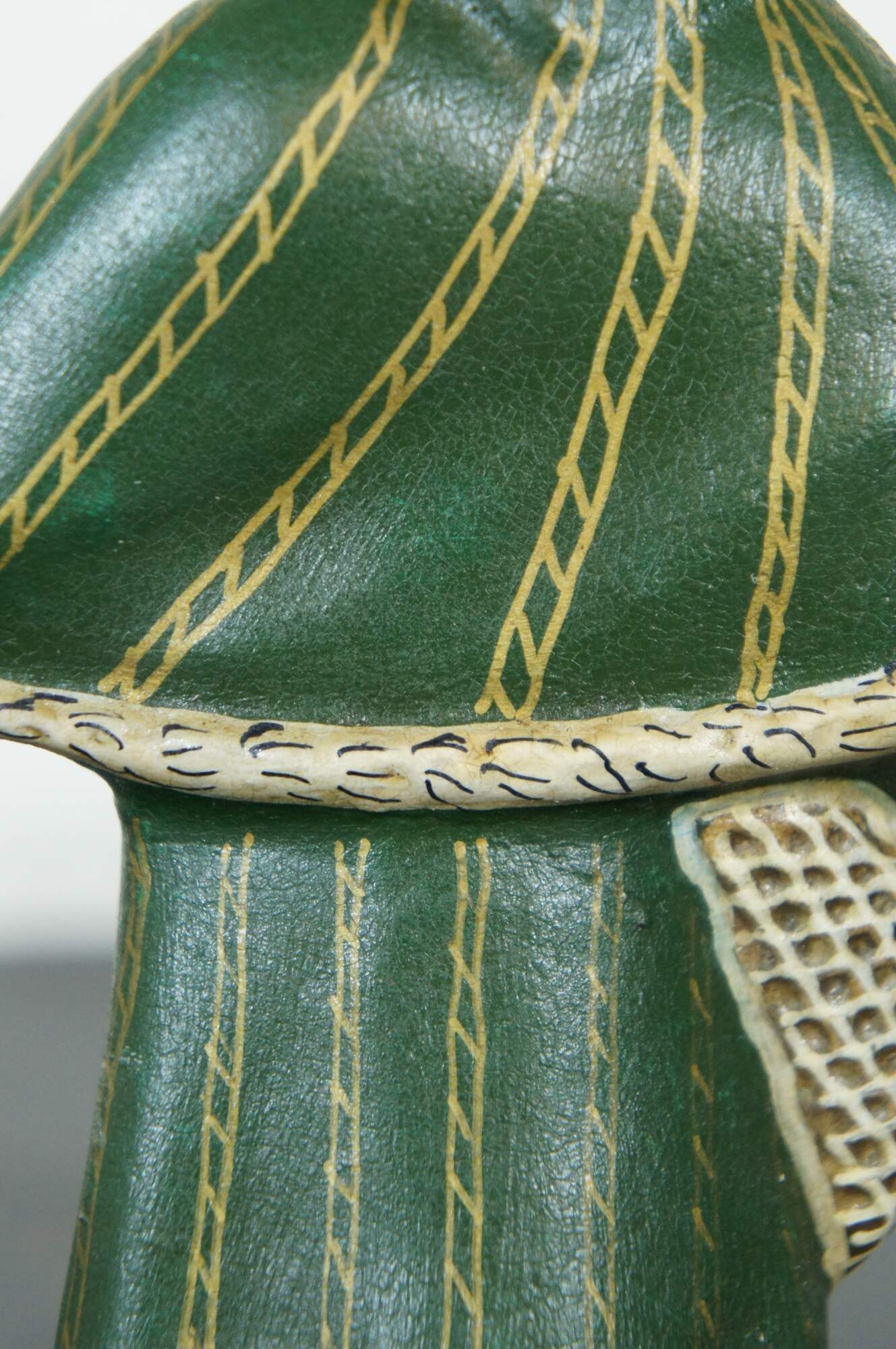 Good Overall - Gentle wear to paint, repaired section at back of foot, chipped bottom edge, missing bottle brush tree in hand