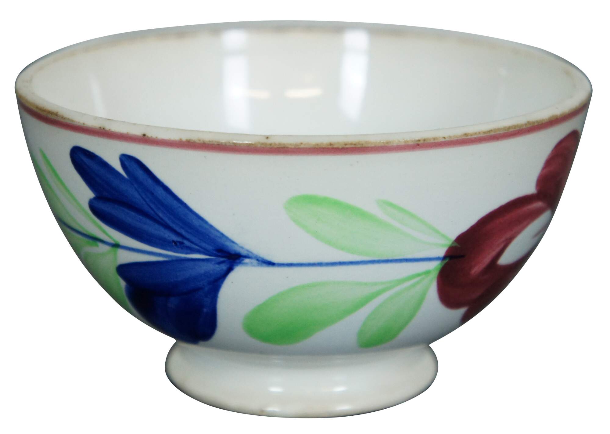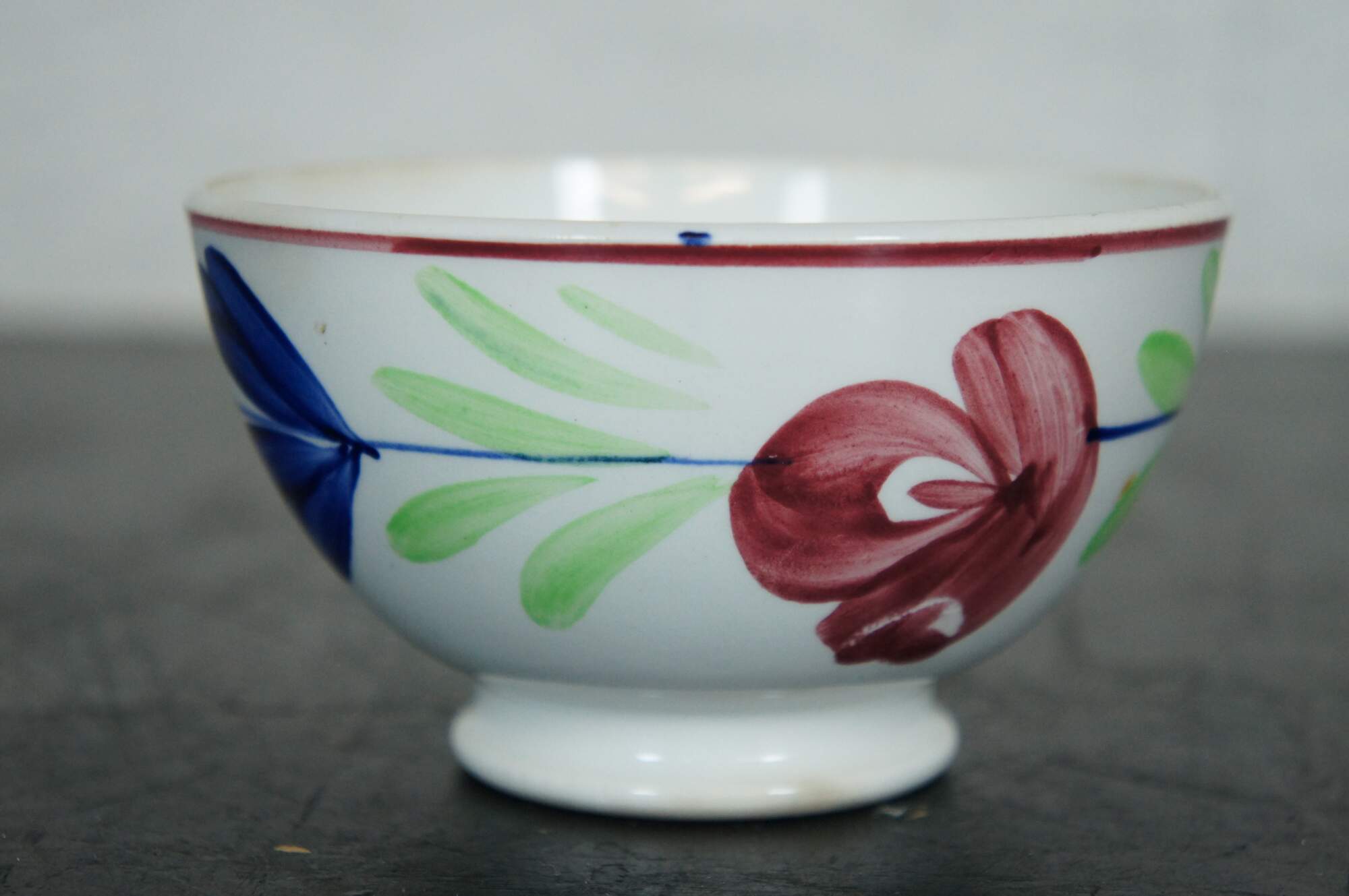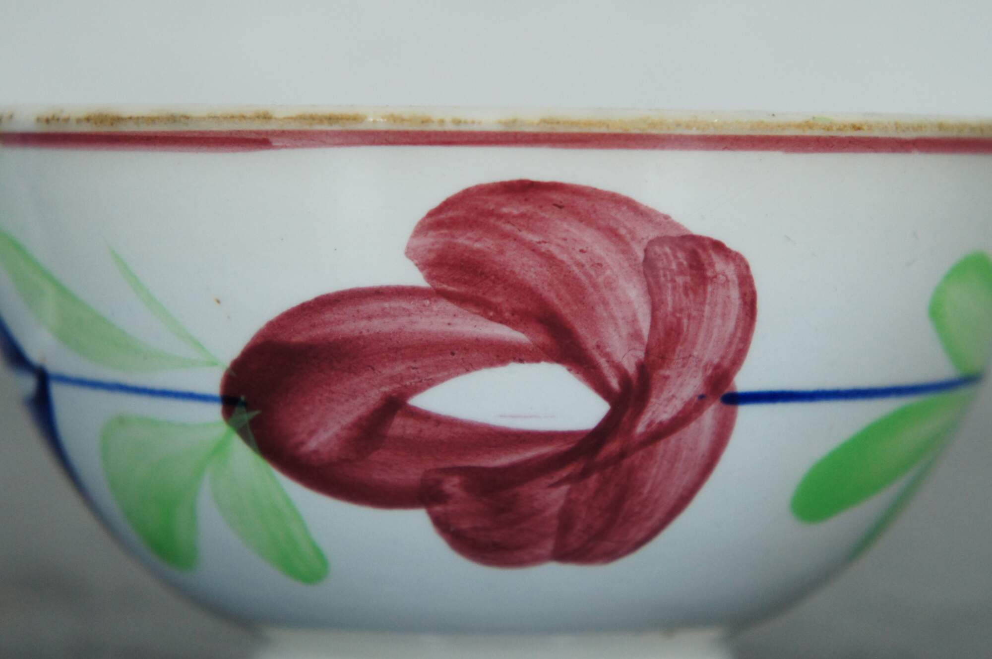 Antique pair of porcelain bowls hand painted with red roses and blue and green leaves, made by Nimy, in Belgium.