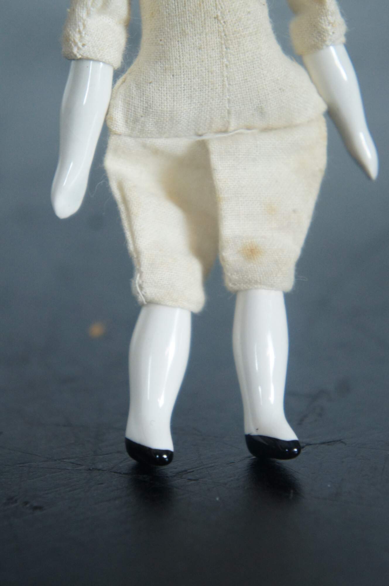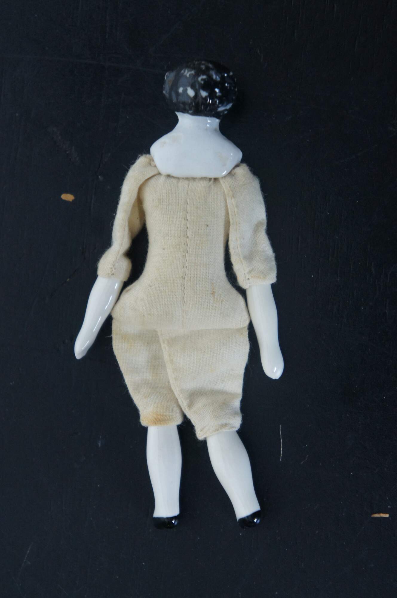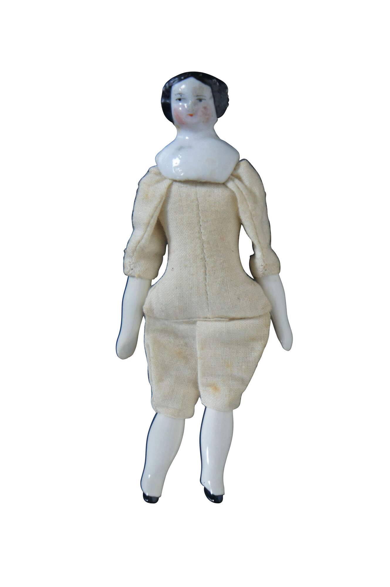 porcelain head, hands, feet and additional baby doll; painted features, cloth body.