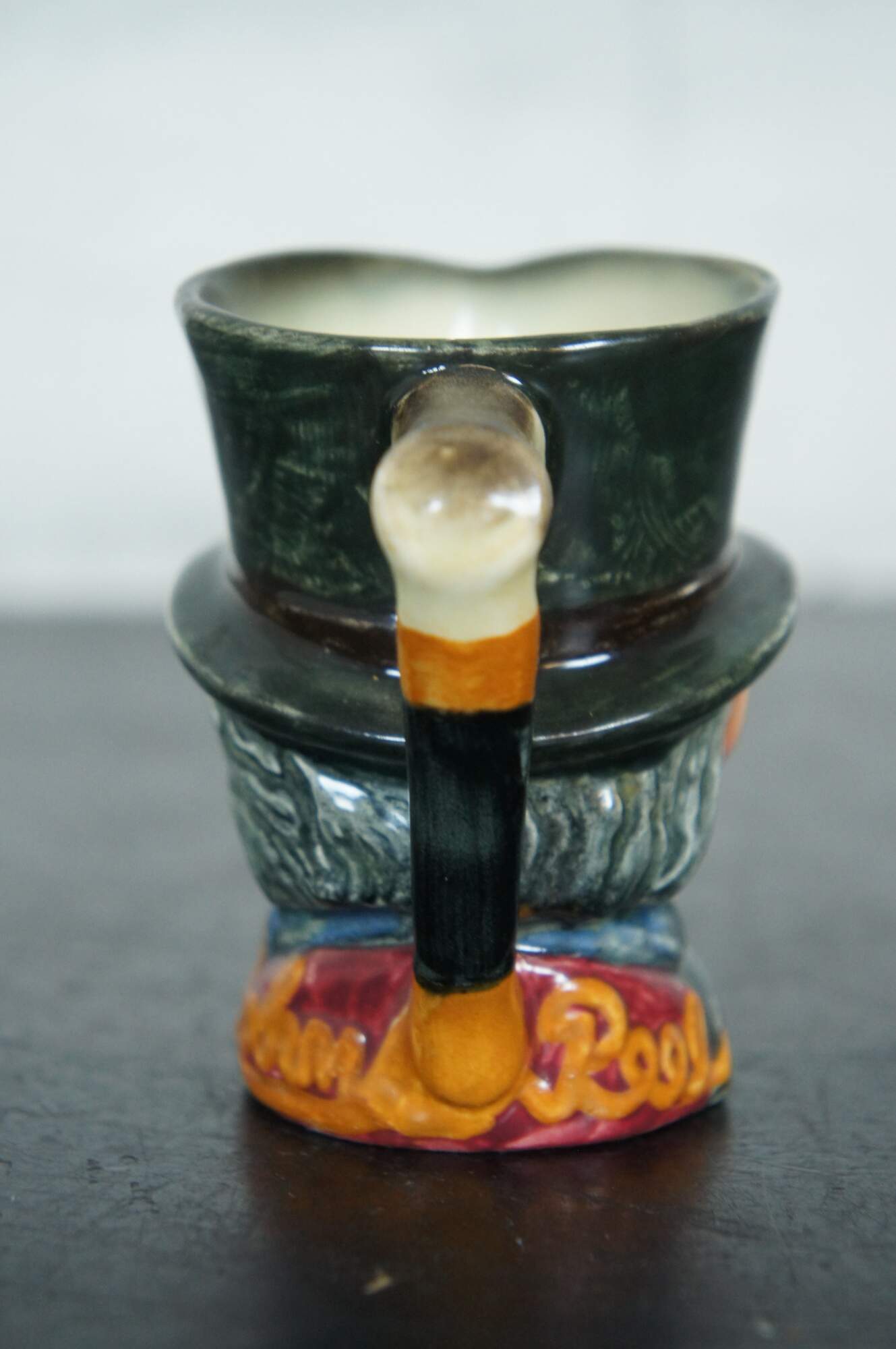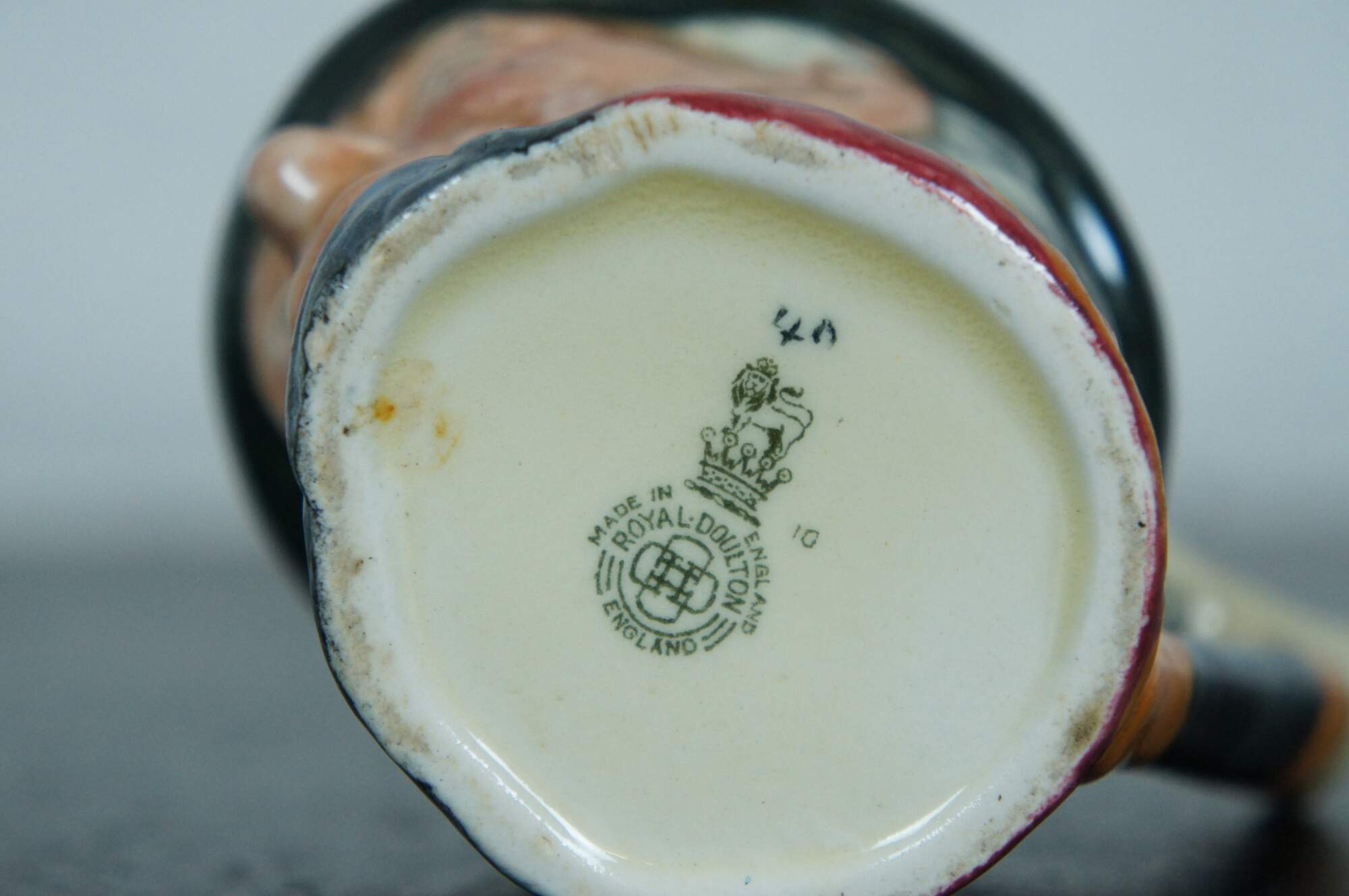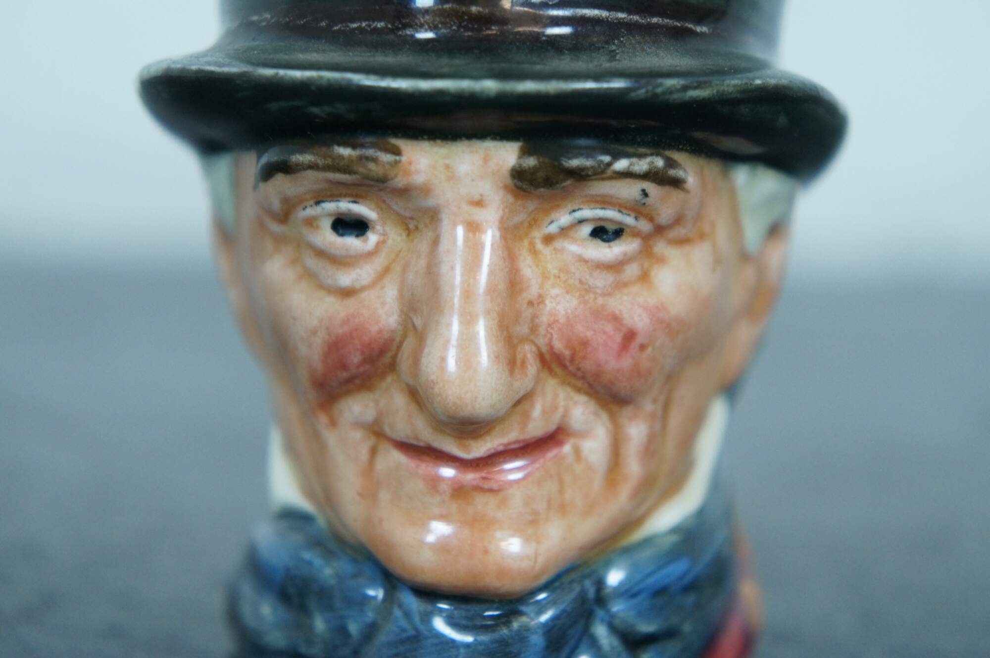 Mid Century Royal Doulton porcelain miniature Toby jug / character mug in the shape of John Peel. “John Peel (13th November 1776? – 13 November 1854) was an English huntsman who is the subject of the nineteenth century song "D'ye ken John Peel" - "ken" meaning 'to be aware of' or 'to know' in some dialects of the North of England and Scotland. a famous Cumberland hunting song written around 1824 by John Woodcock Graves (1795–1886) in celebration of his friend John Peel (1776–1854), an English fox hunter from the Lake District. The melody is said to be a contrafactum of a popular border rant, "Bonnie Annie." A different version, the one that endures today, was musically adapted in 1869 by William Metcalfe (1829–1909), the organist and choirmaster of Carlisle Cathedral. The tune etymology has a long history that has been traced back to 1695 and attributed to adaptations – one in particular, from the 20th century, the 1939 jingle, "Pepsi-Cola Hits the Spot.