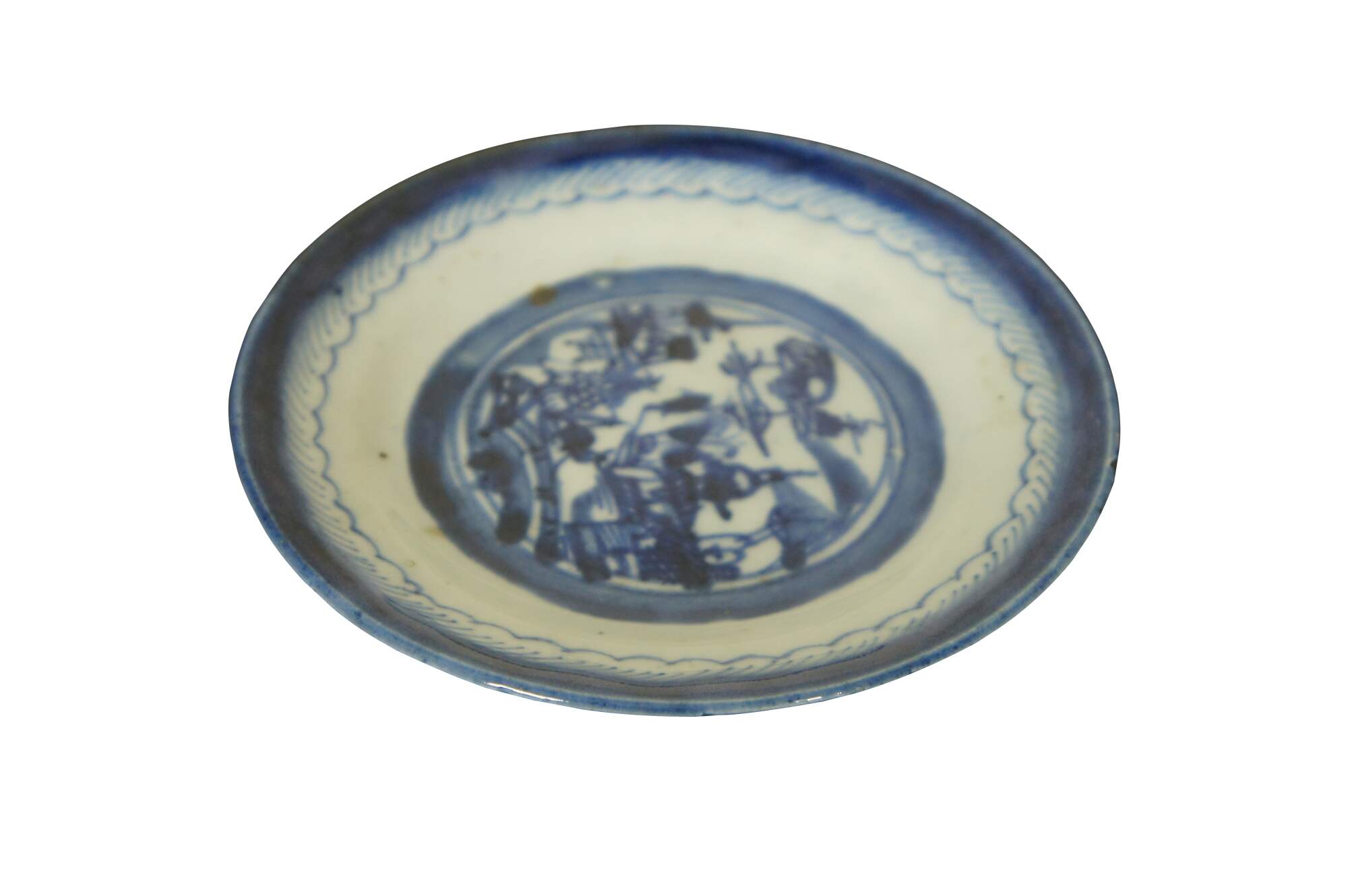 Charming hand painted cantonware blue and white porcelain plate from last half of the 19th century.