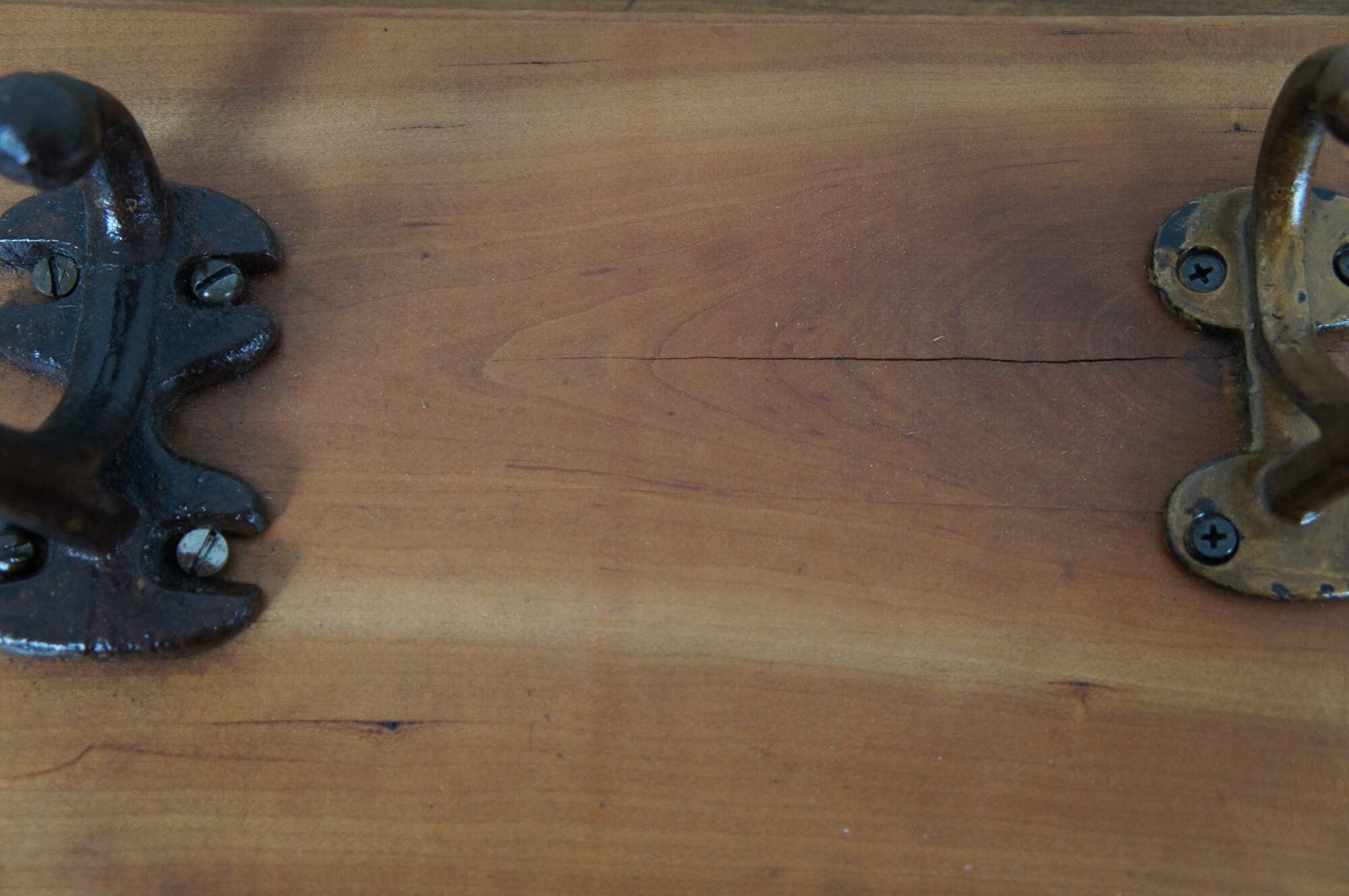 Rustic cherry wood hat / coat / clothing rack / wall tree with five iron hooks.