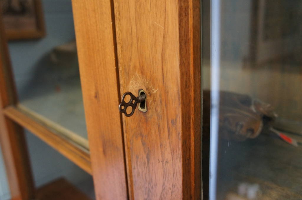 Antique Oak Primitive China Cabinet Curio Original Glass Rustic Display Ships