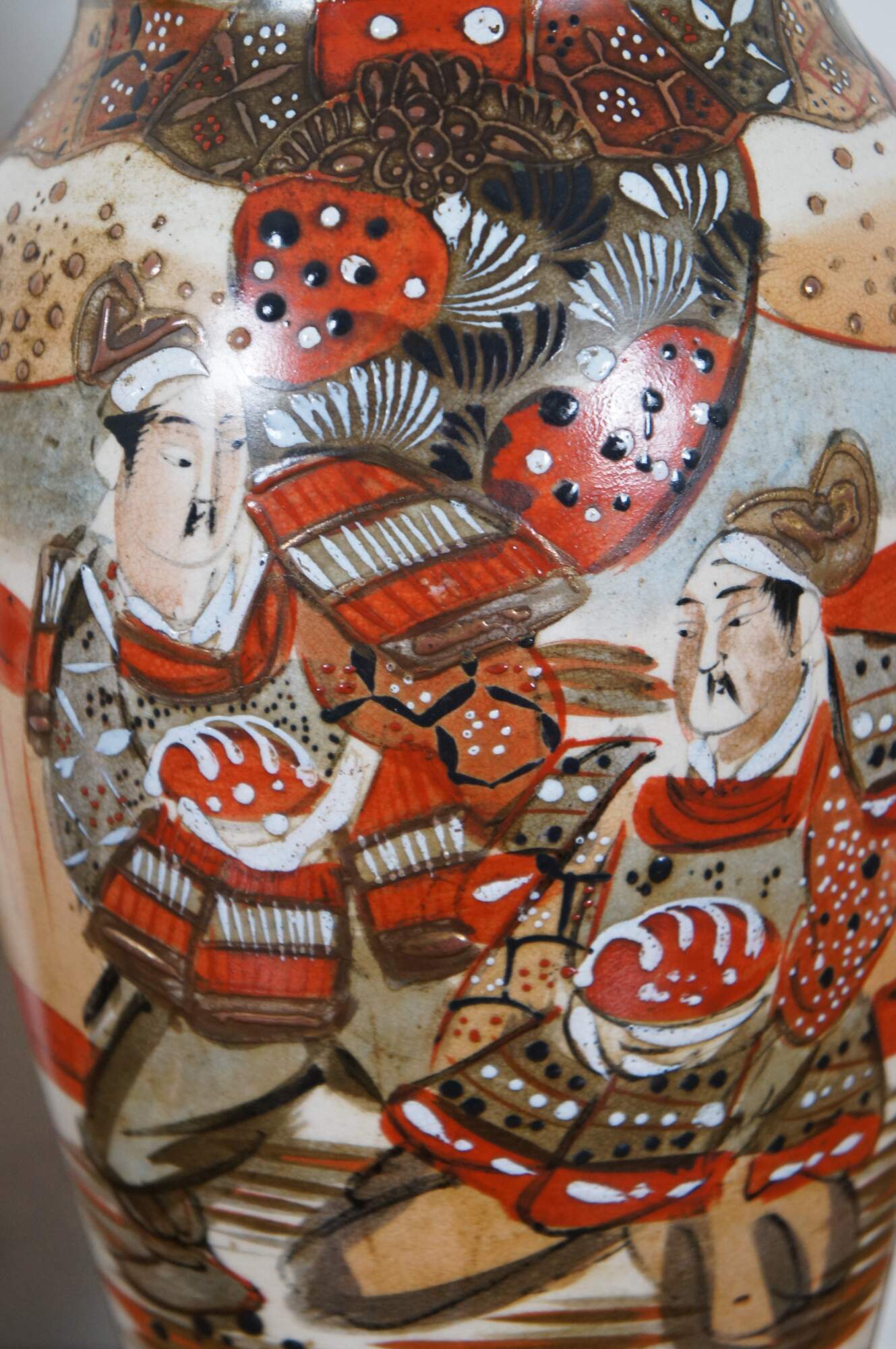 Similar to cloisonné in appearance and design, moriage designs are applied using slip (a clay product) on top of the pottery and then fired. Moriage dates back to the 17th century in Japan and the creation of what is now called Satsuma. In the Satsuma region in Southern Japan there was a burgeoning Korean immigrant population that was producing a variety of pottery at the time. The Satsuma style involved classic vase and pot shapes that were covered in raised designs. These designs were built up using gilt (gold) for a 3D effect that was not easy on the wallet.