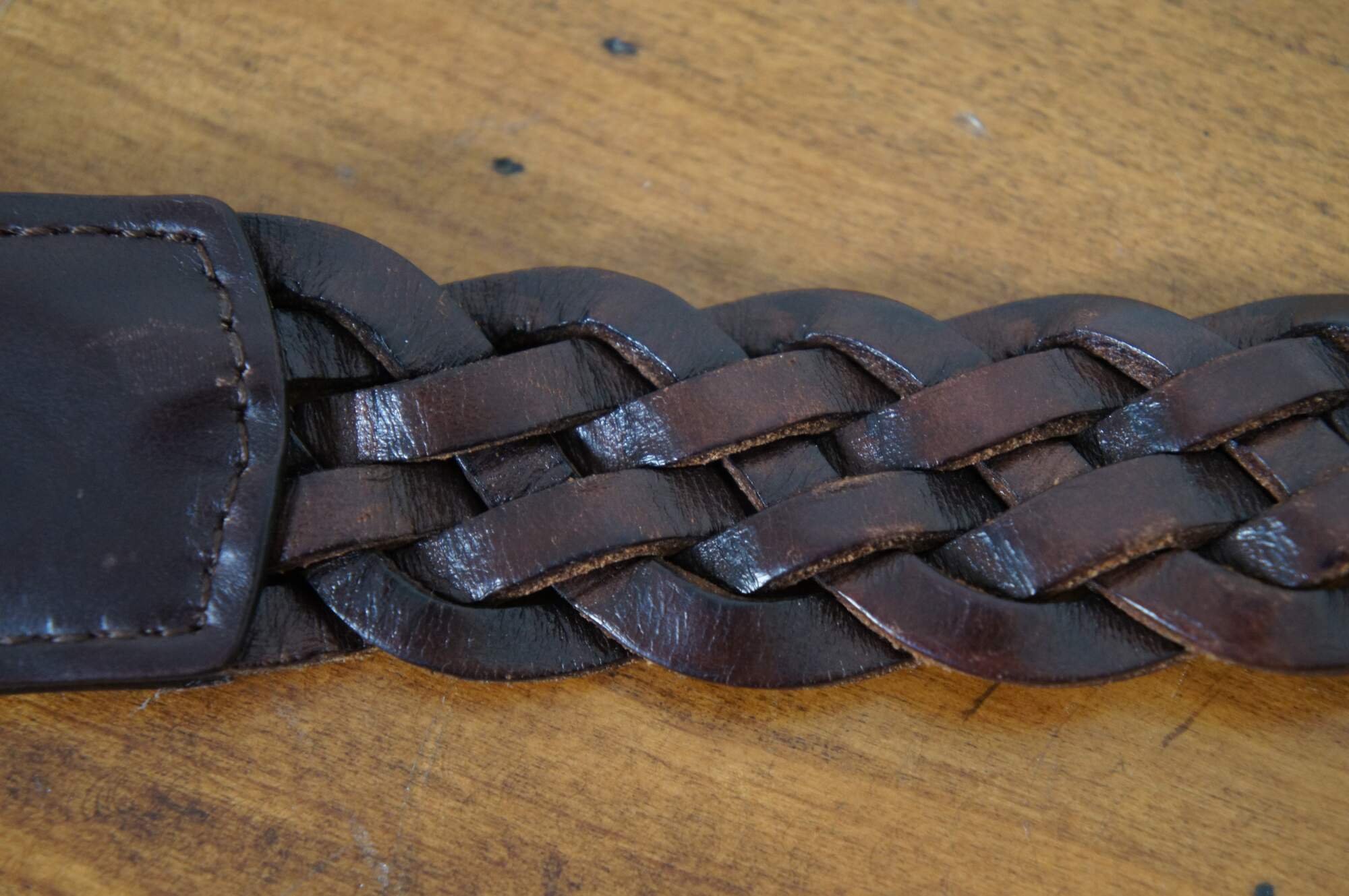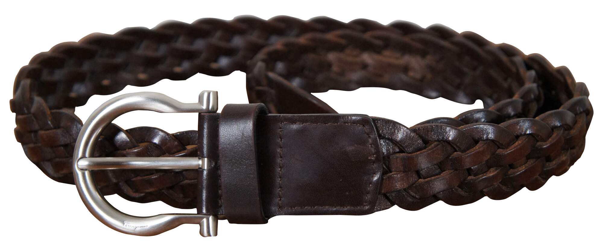 Salvatore Ferragamo brown leather woven / braided belt with Gancini horseshoe shaped silver toned buckle.