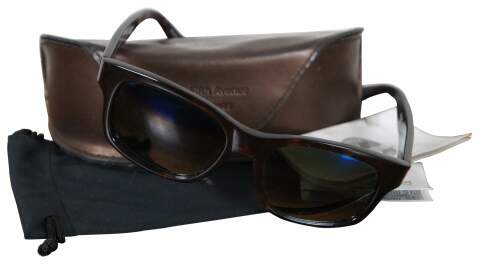 Vuarnet & Saks Fifth Avenue tortoiseshell sunglasses, drawstring dust cover, and leather case; made in France.
