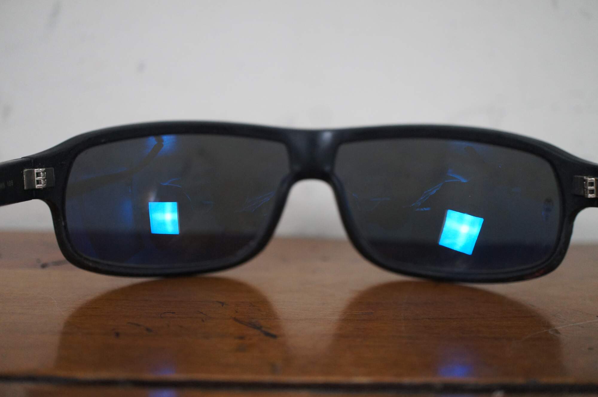 Good Overall - Rubber coating on frames oddly tacky to the touch; right hinge slightly bent/lens not fully secure; wear to case