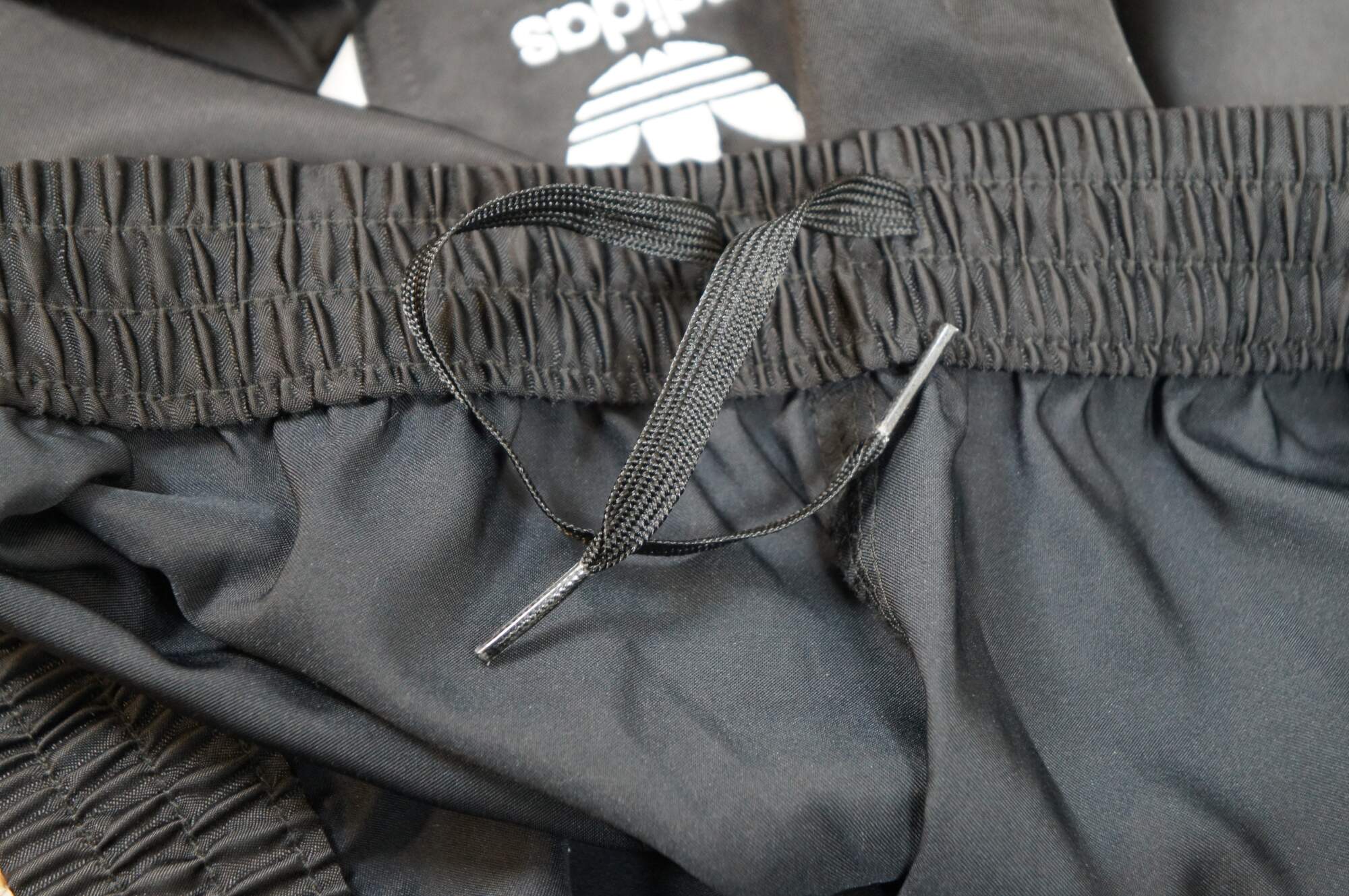 Adidas black and white Pride athletic shorts with rainbow logos and Love Unites tag, two side pockets, one rear pocket and elasticized / drawstring waist.