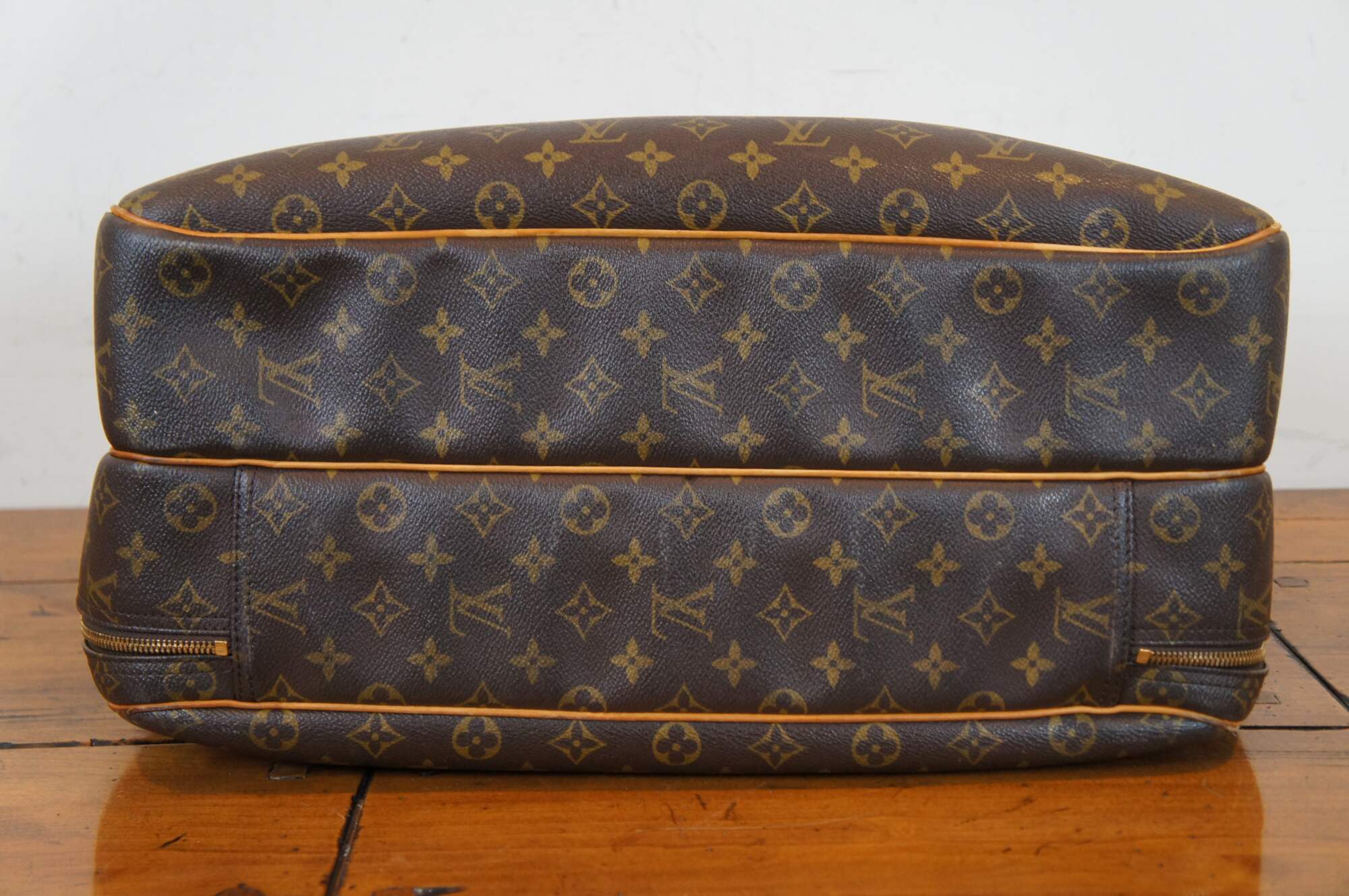Louis Vuitton Paris Alize 24 Heures Monogram Travel Bag in the classic monogram pattern that features round top handles and gold-toned hardware. It is designed with a convenient front slip compartment. The bag opens up to 2 large compartments, both with 2-way zip fastening, with an internal pocket in each. It comes with a detachable and adjustable shoulder strap. Marked VI 0928. Made in France, February 1998
