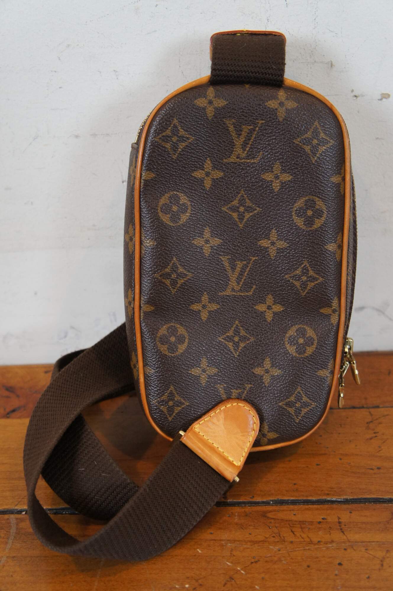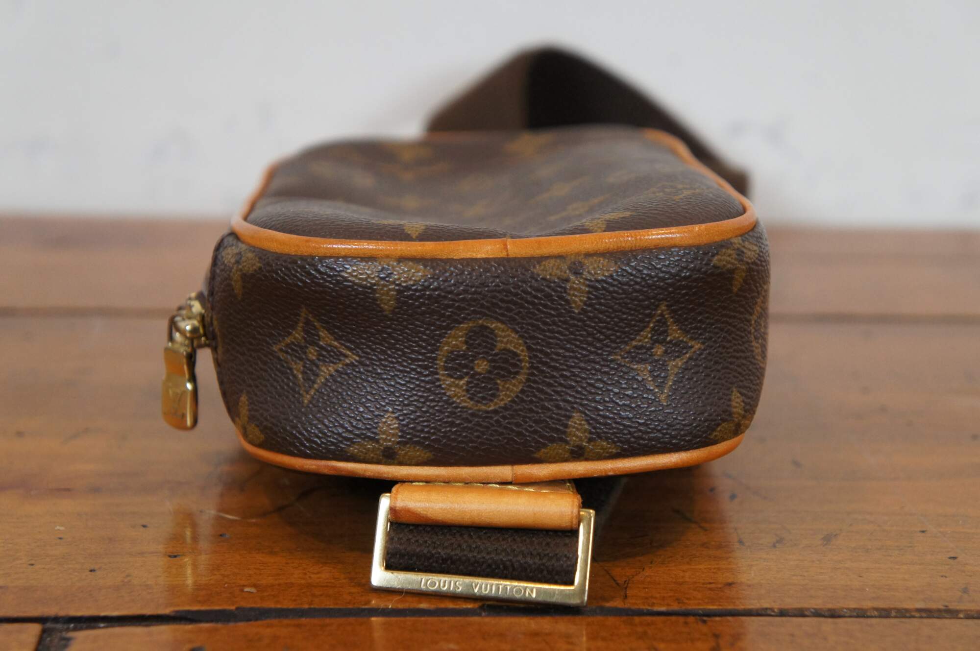 Louis Vuitton Paris Pochette Gange brown monogram crossbody or bum bag, featuring one main zippered compartment, single exterior slip pocket, and adjustable strap.