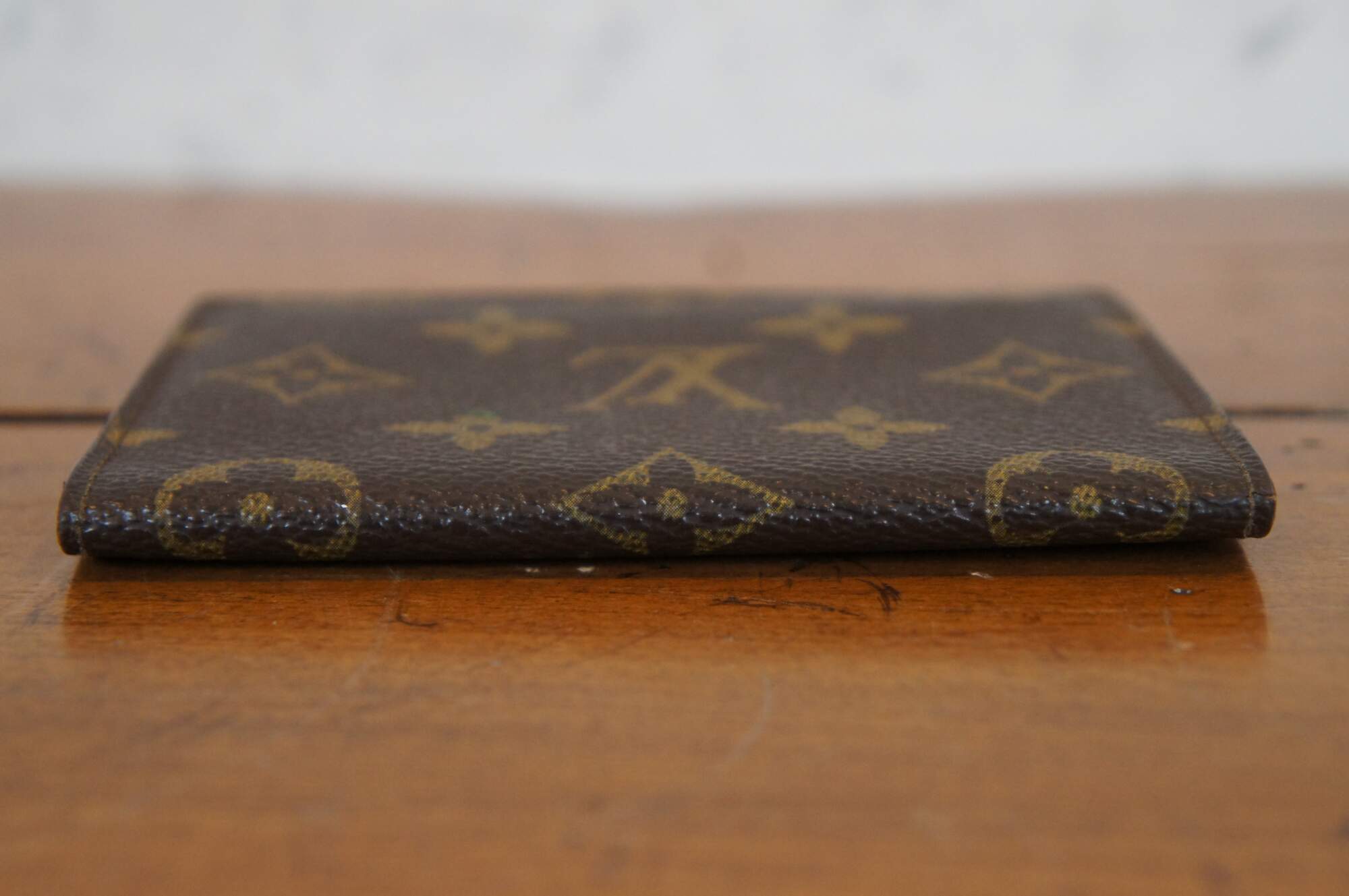 Louis Vuitton Paris brown monogram (Porte 2 Cartes) bi-fold ID holder with two clear plastic card slots. Serial No. - MI883, Made in France, March of 1988