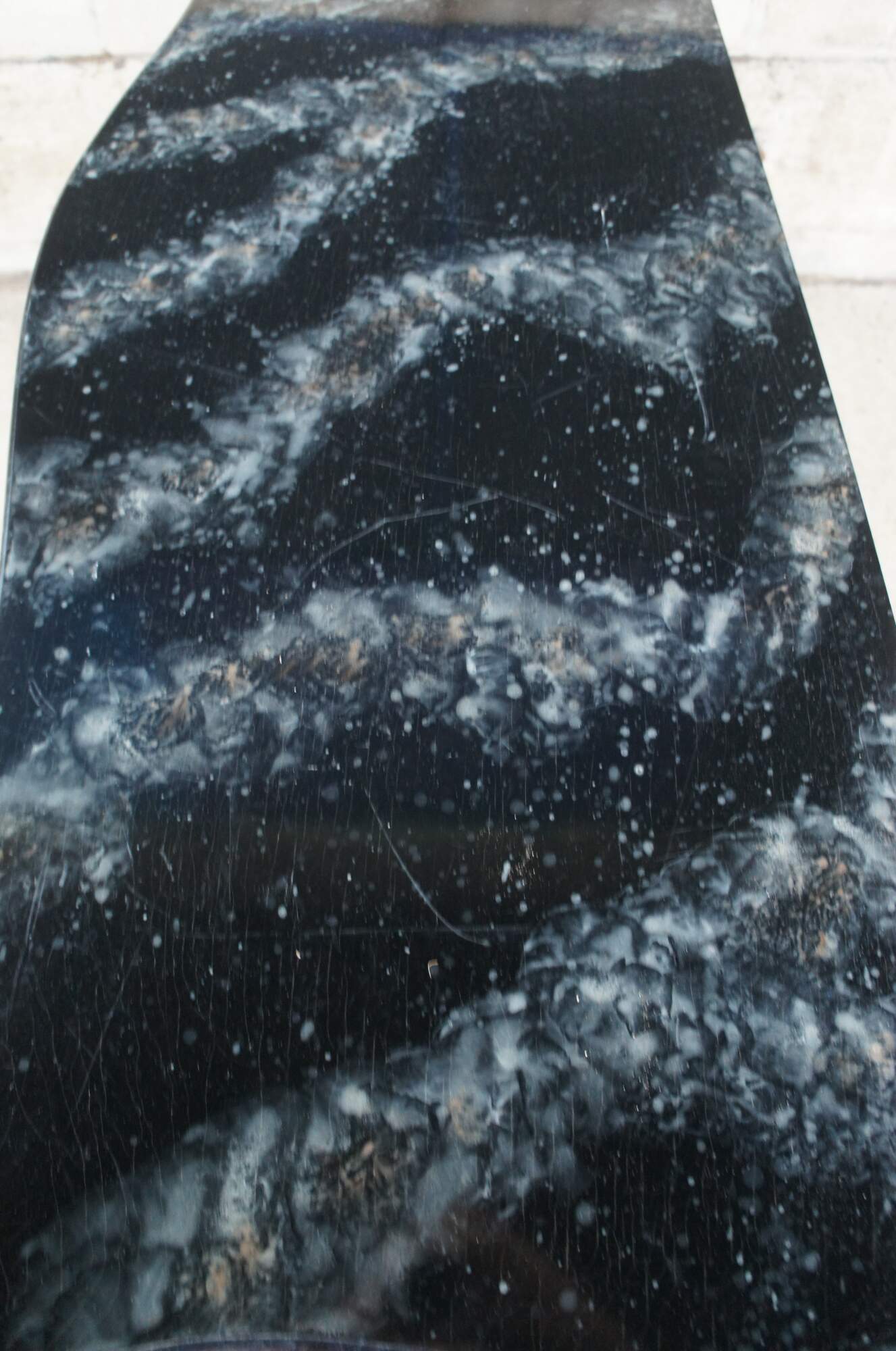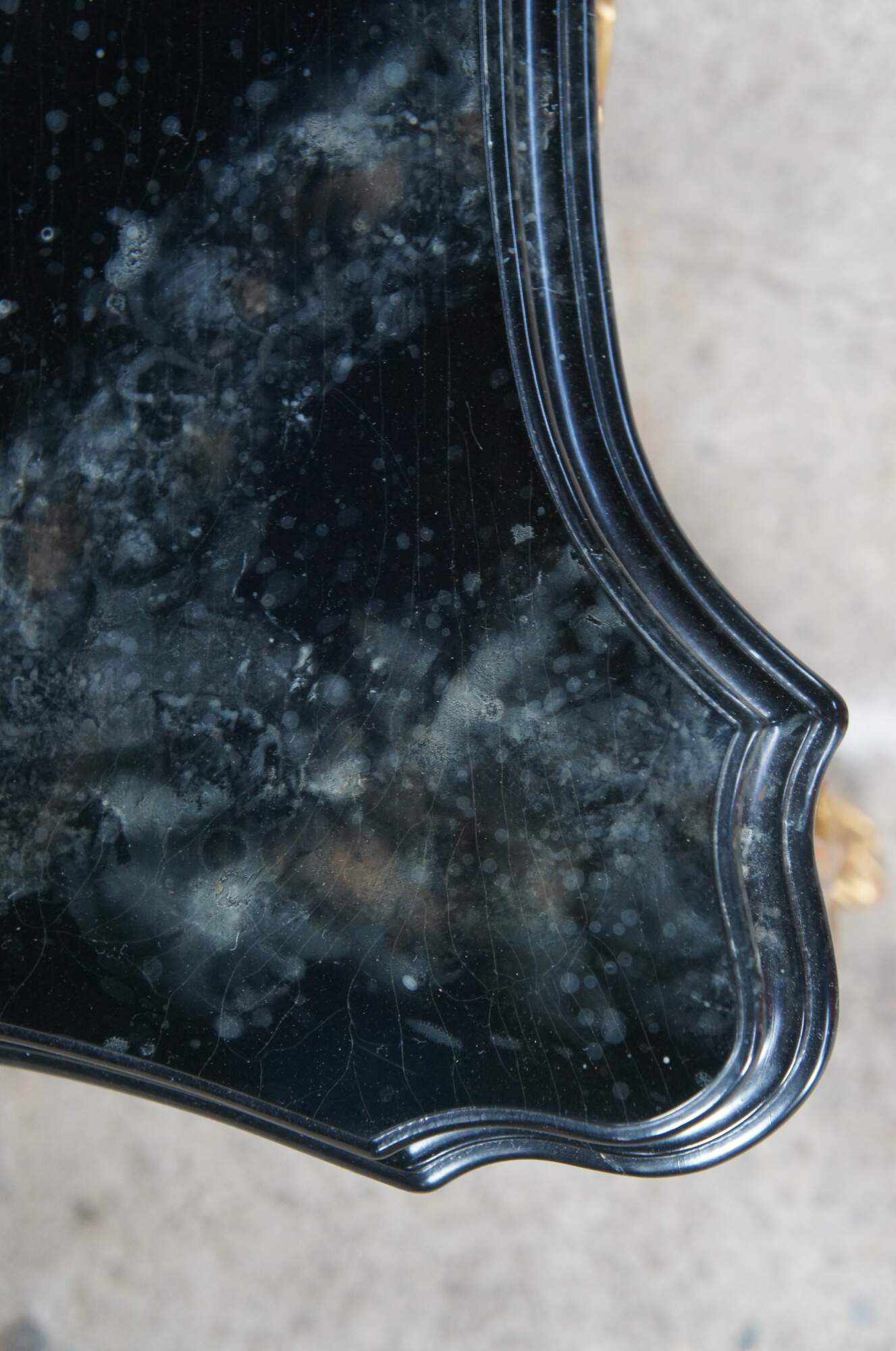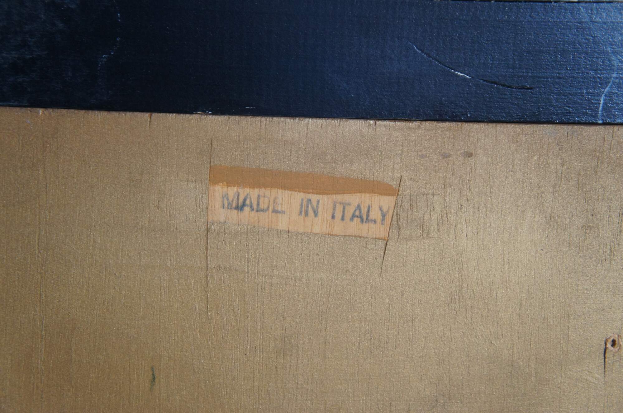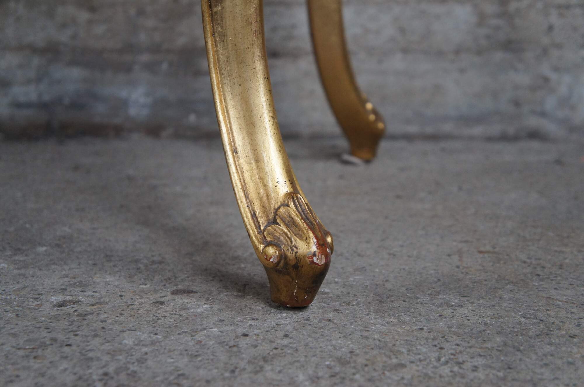 Late 20th century Rococo style console or hall table. Features a serpentine form with faux marble top, a scalloped and pierced giltwood frieze and scalloped legs with acanthus feet. Marked along back side "made in Italy