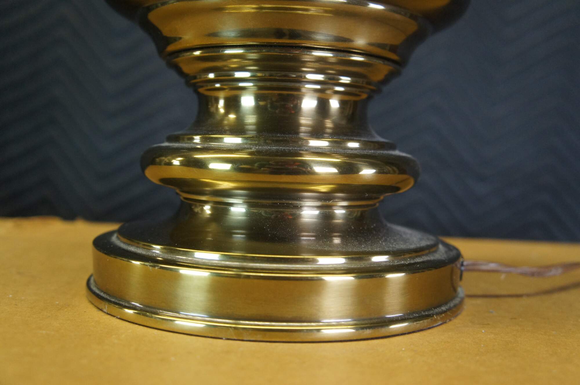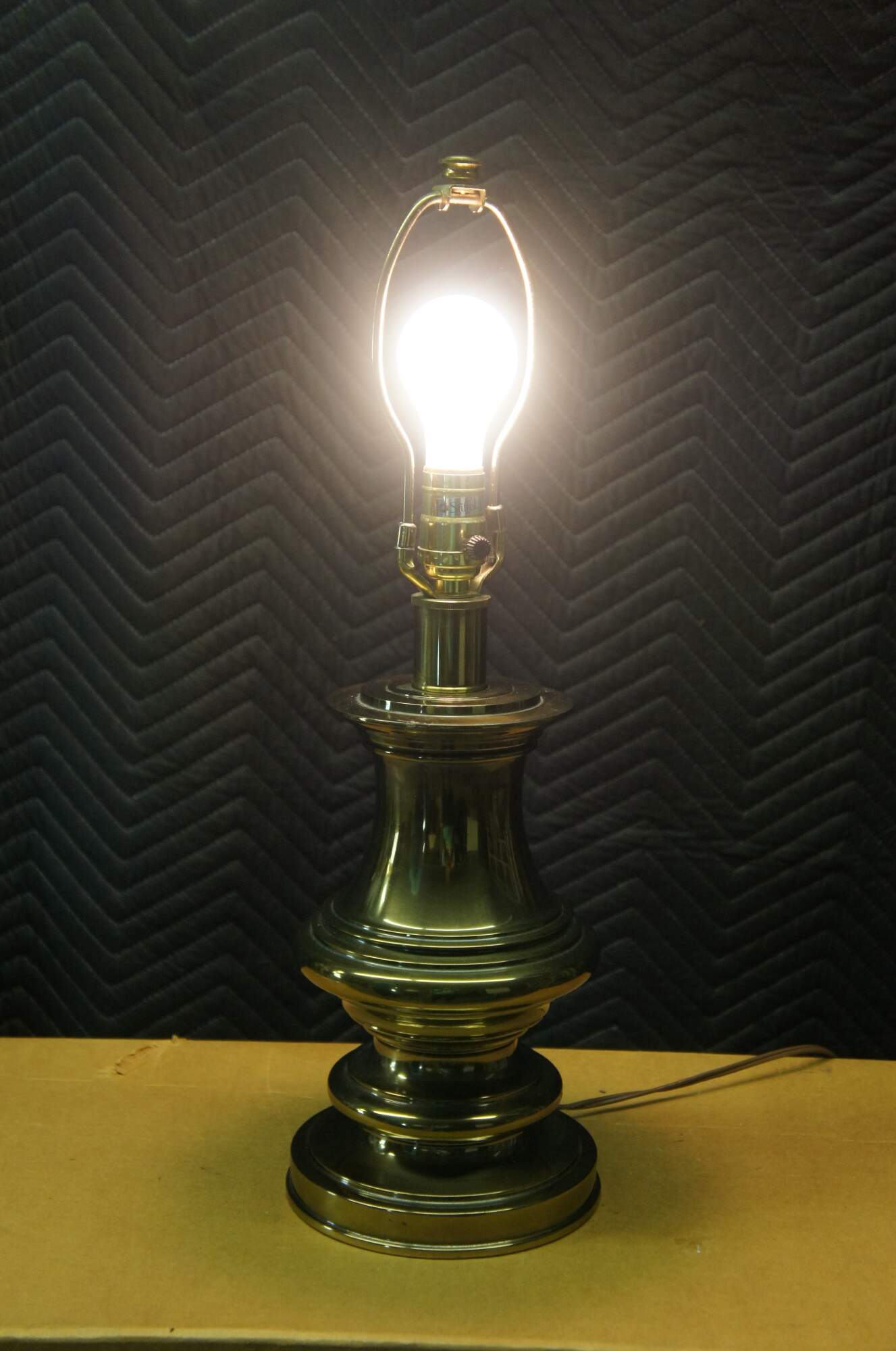 Vintage Stiffel Hollywood Regency style table lamp. Made of heavy brass featuring a trophy or urn form.