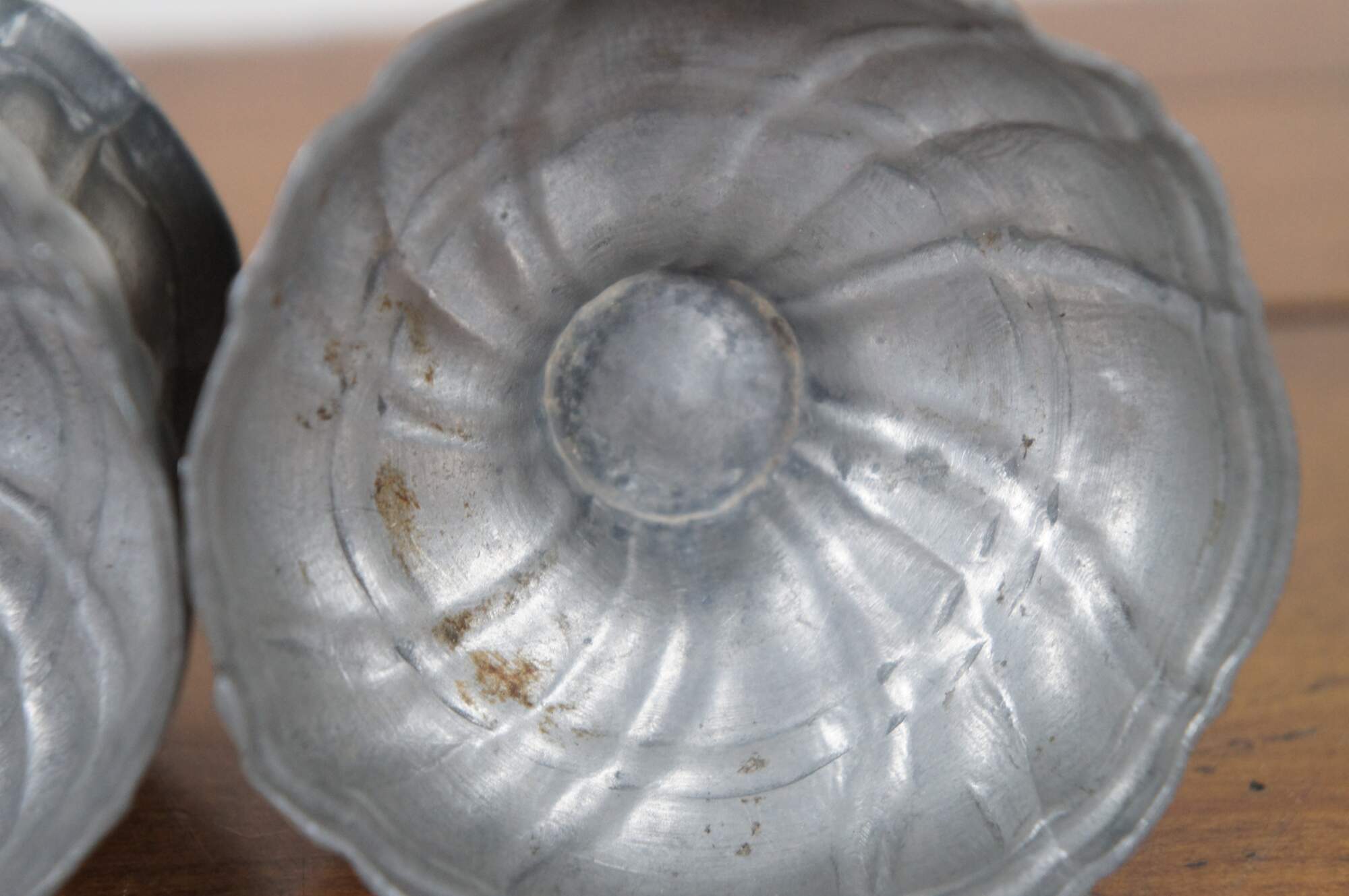 Pair of rare antique 18th century pewter salt cellars / bowls / pedestal dishes or footed cups with unique scalloped and swirled form.