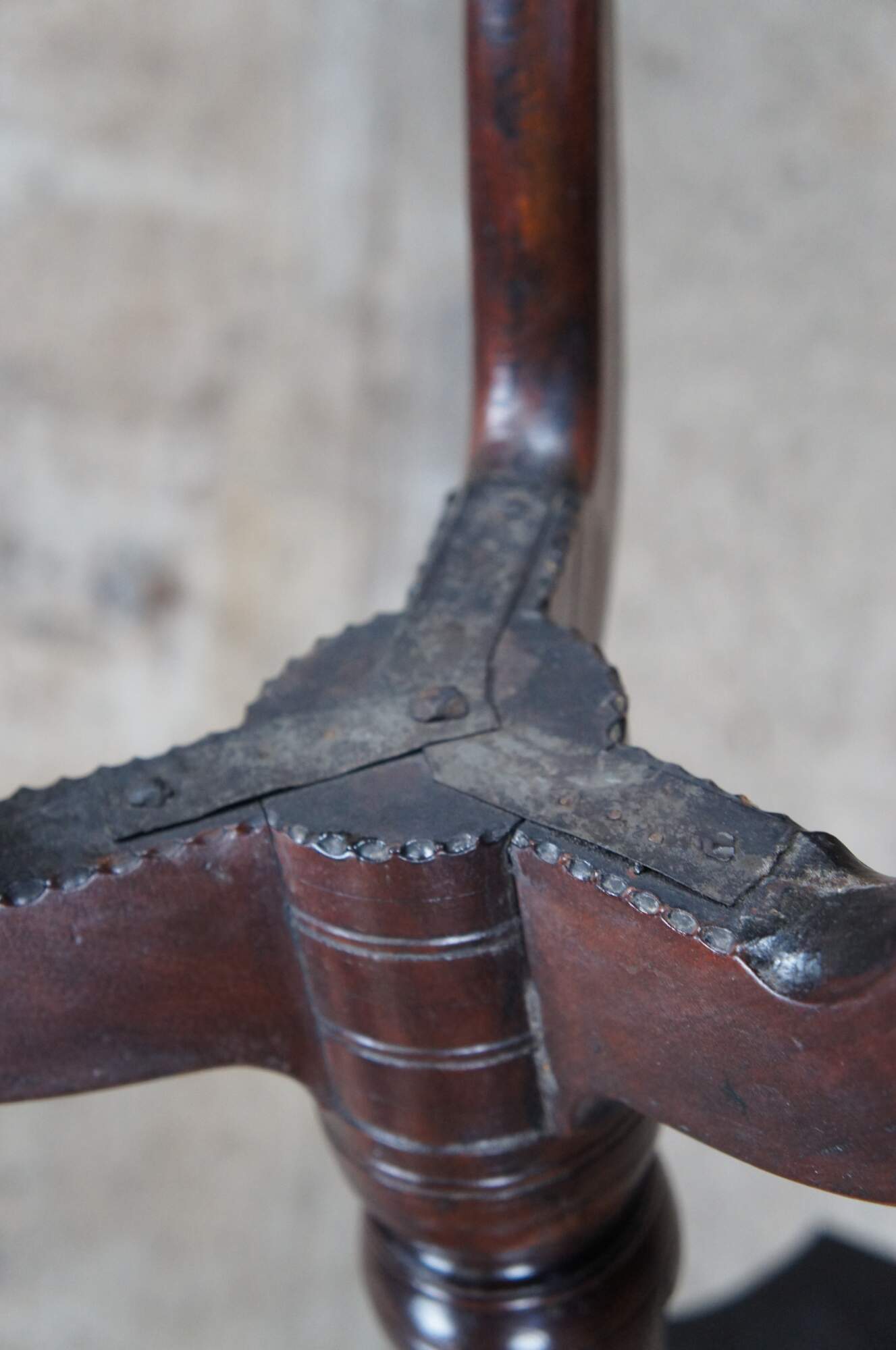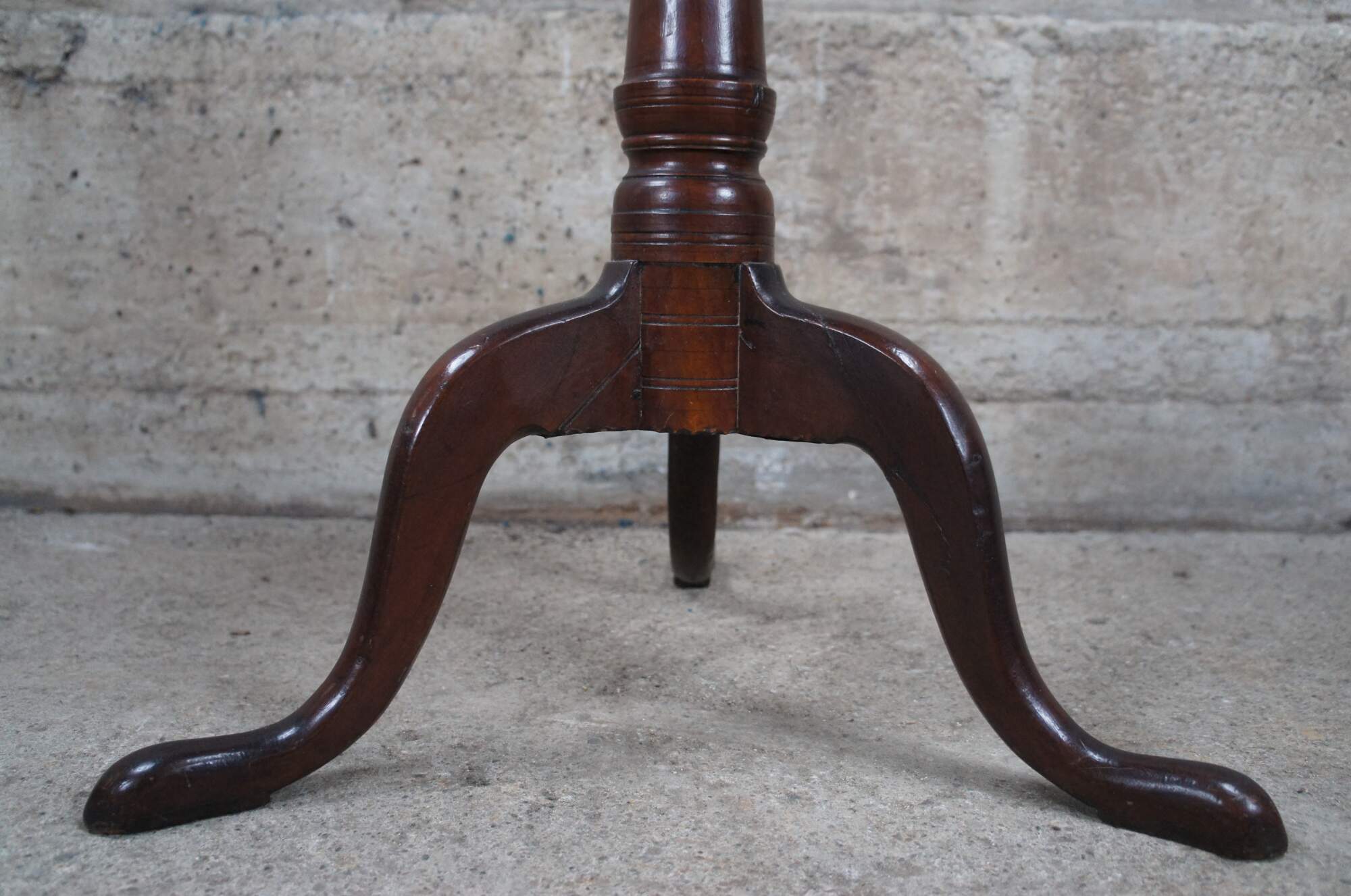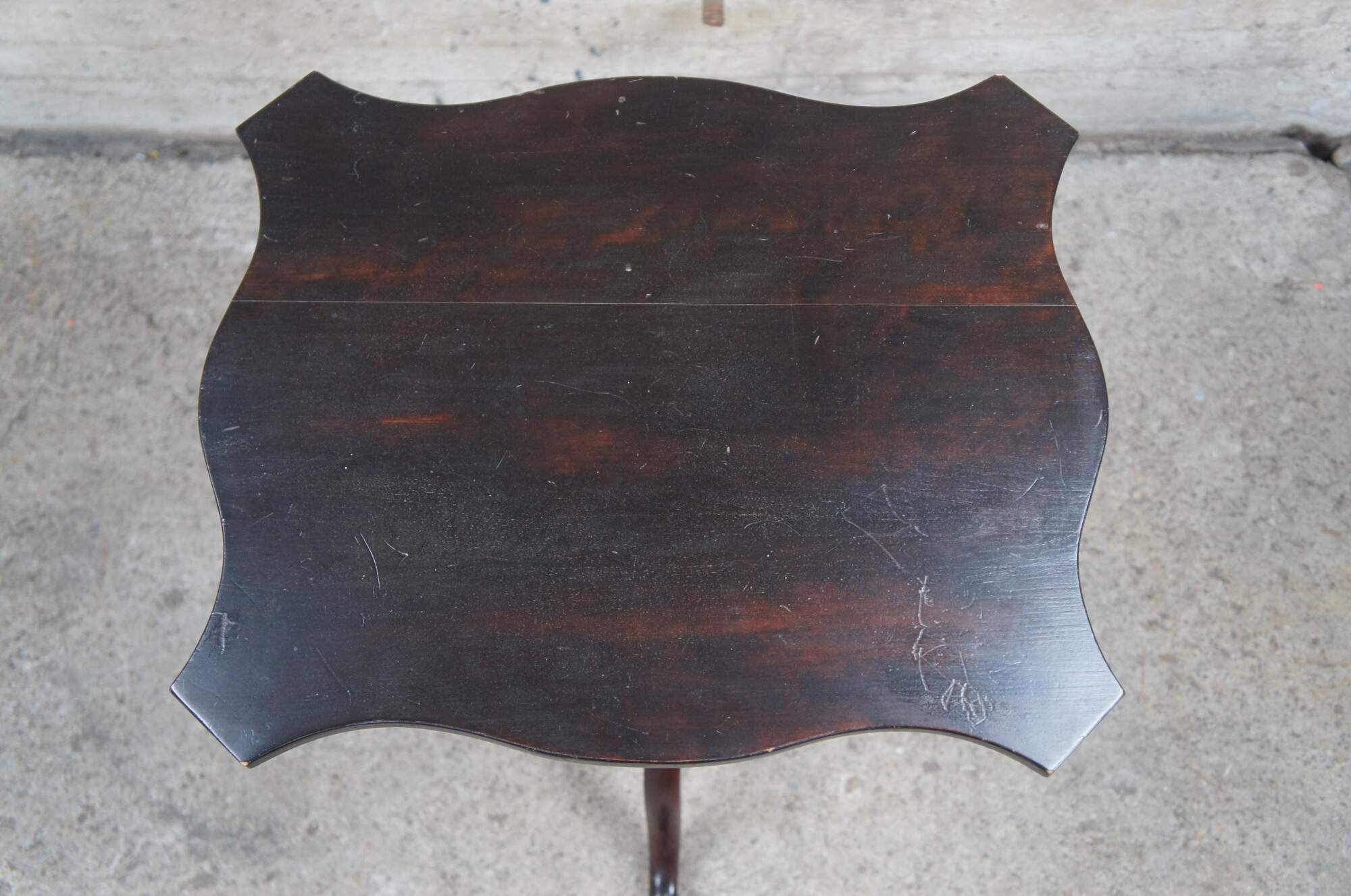 Good Antique Condition; some scratching and wear commensurate with age. Seam in top surface, past repair to one leg