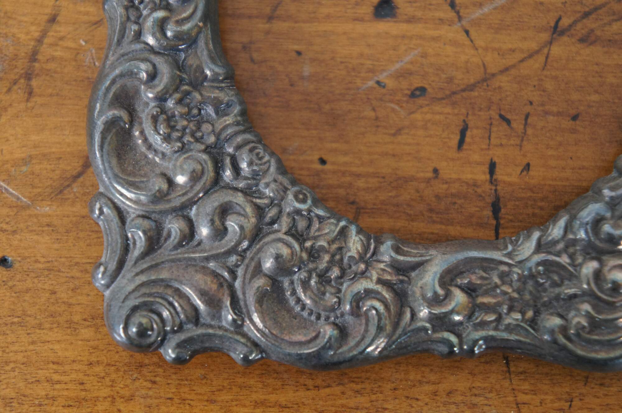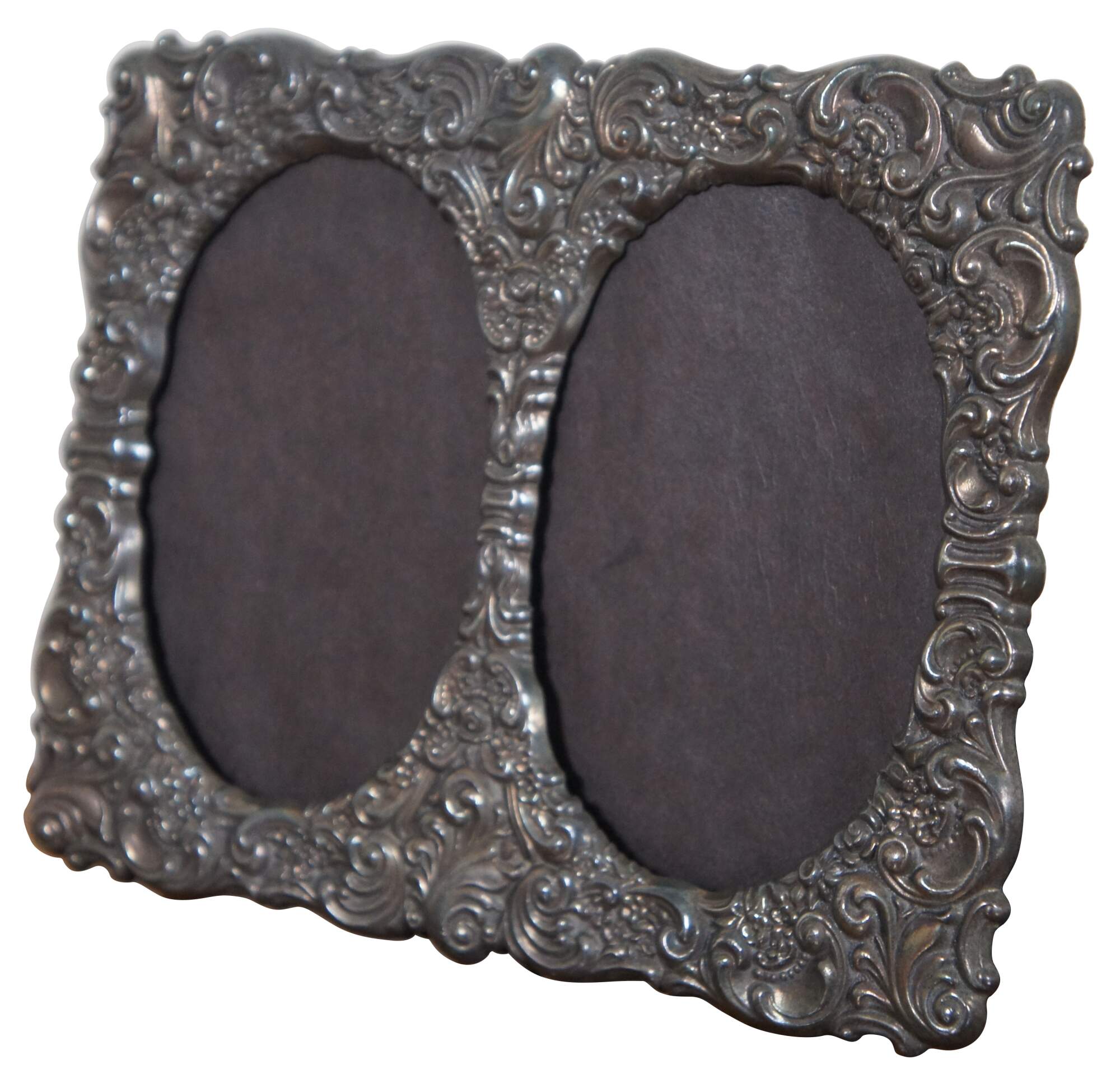 Vintage Baroque by Wallace heavy silver plate photo frame number 781, featuring a floral baroque design, two oval slots and easel back.