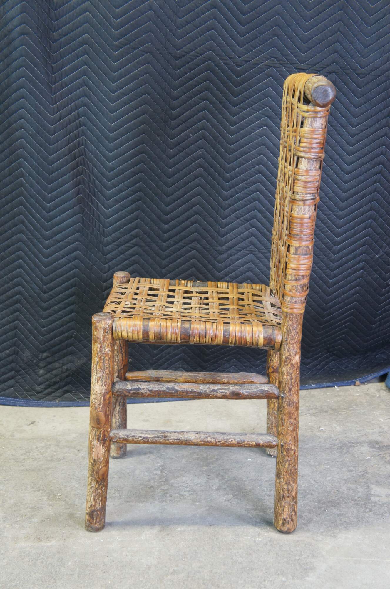 Antique Hickory side chair with woven rattan seat and back. Rustic design that has a great cabin or lodge feel.