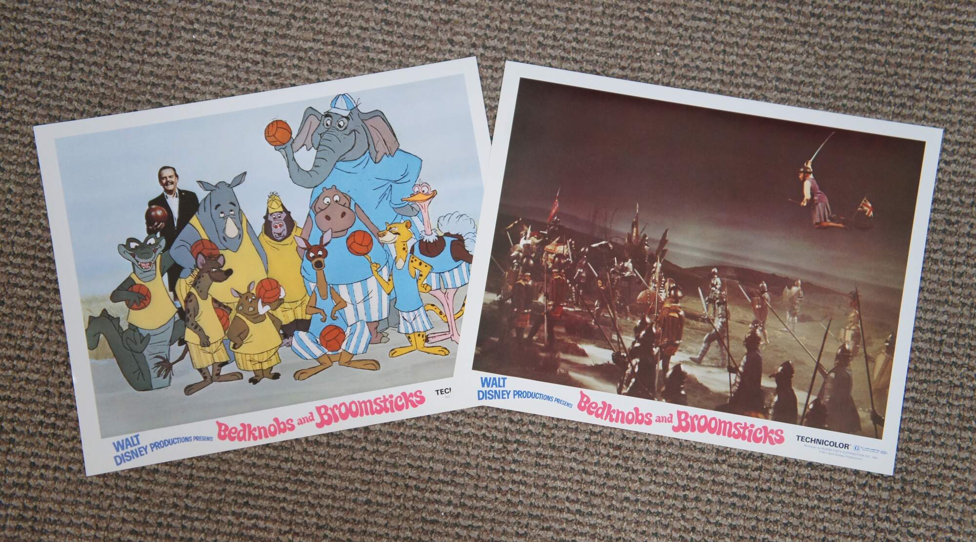 Full set of nine vintage 11 x 14 prints from Walt Disney’s 1971 film “Bedknobs and Broomsticks” starring Angela Lansbury and David Tomlinson. Realeased by Buena Vista Distribution Co for Walt Disney Productions.