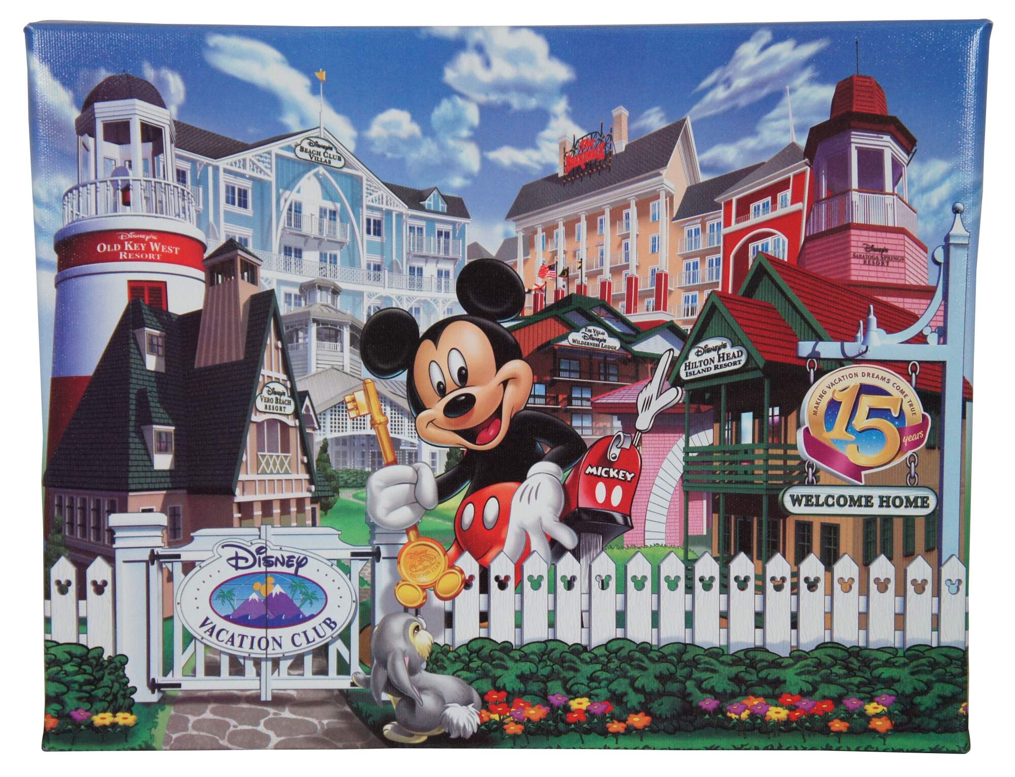 Vintage Disney Vacation Club 15th Anniversary Commemorative Mickey mouse giclee print on canvas with original box and Certificate of Authenticity. Circa 2007-2008