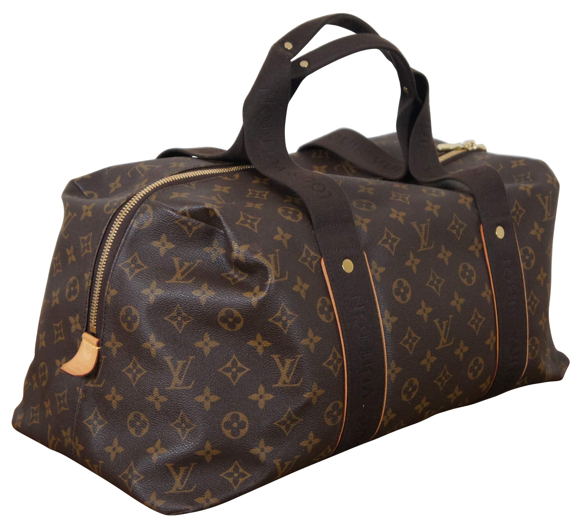 Vintage Louis Vuitton Beaubourg Weekender duffle bag crafted from brown monogram canvas with cowhide leather trim, canvas straps, and gold tone brass hardware. One slip pocket on front and six interior organizational pockets. Serial Number DU2161. Made in France between June 27th-July 3rd of 2011.