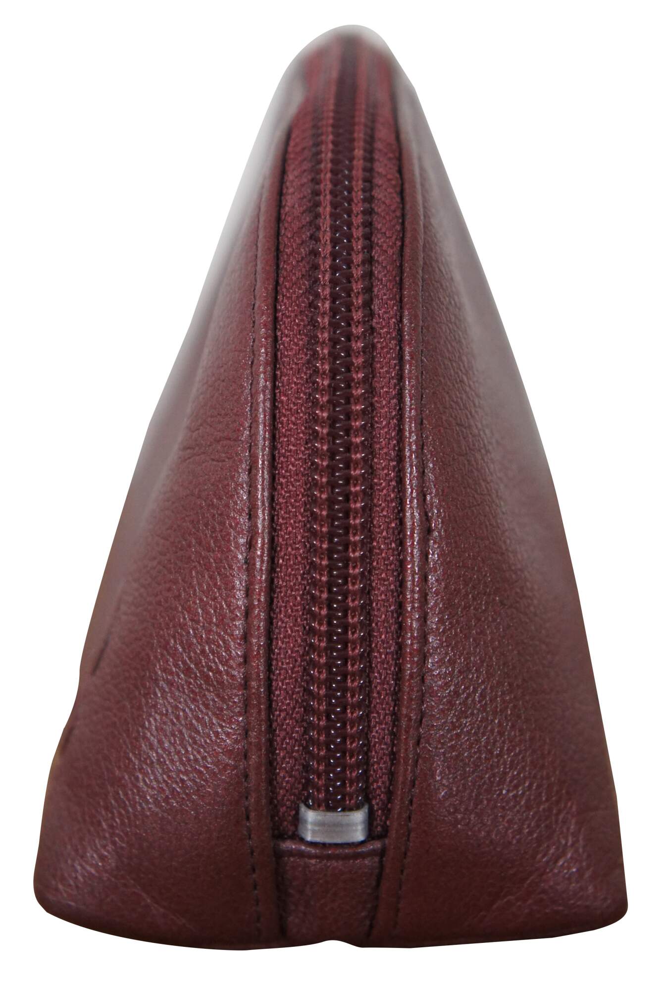 Vintage Chanel Butterfly Camellia burgundy leather zippered cosmetic / beauty / makeup / toiletry bag, stamped with a flower and iconic silver interlocked C logo. Made in Italy.
