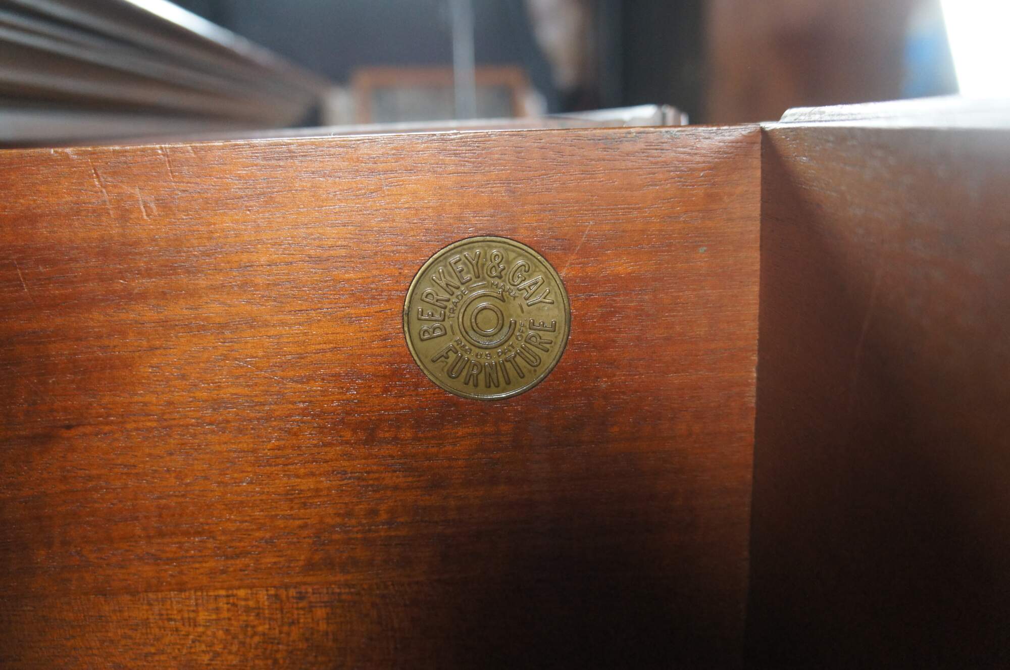 The Berkey & Gay Furniture Company used three different types of labels to mark the furniture that they manufactured. The first label was branded into the wood and can often be found inside the drawers of the Berkey & Gay case pieces. Around the year 1900 the branded type label was replaced by a paper label. The brass label was used starting around the 1920's until Berkey and Gay went out of business in the 1940's.