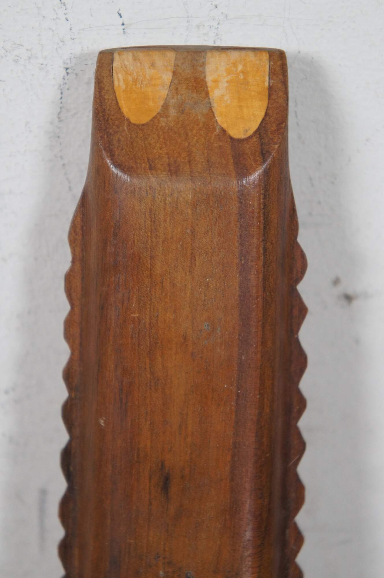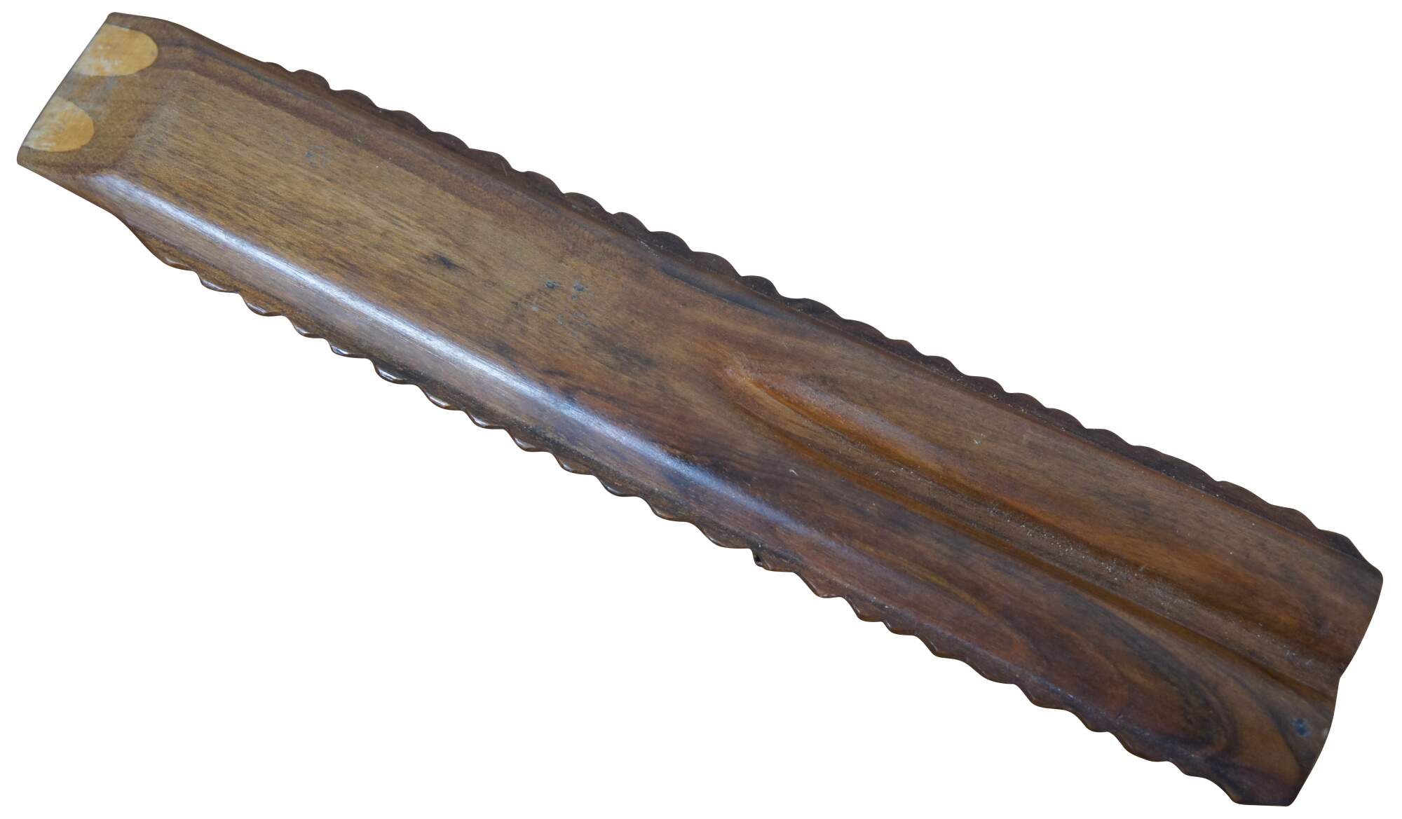Vintage Serbian folk art carved wooden dvojnice / drone or double flute, beautifully carved with geometric motifs and a sawtooth edge.