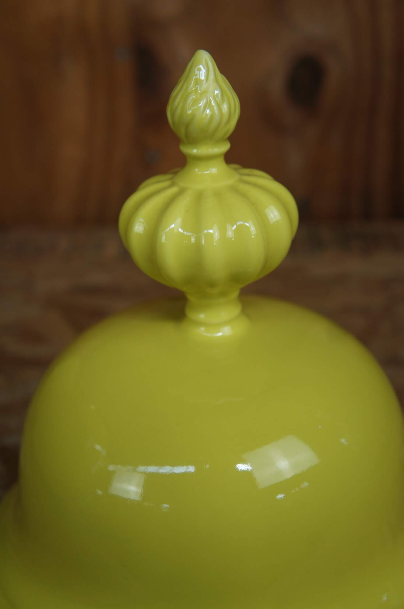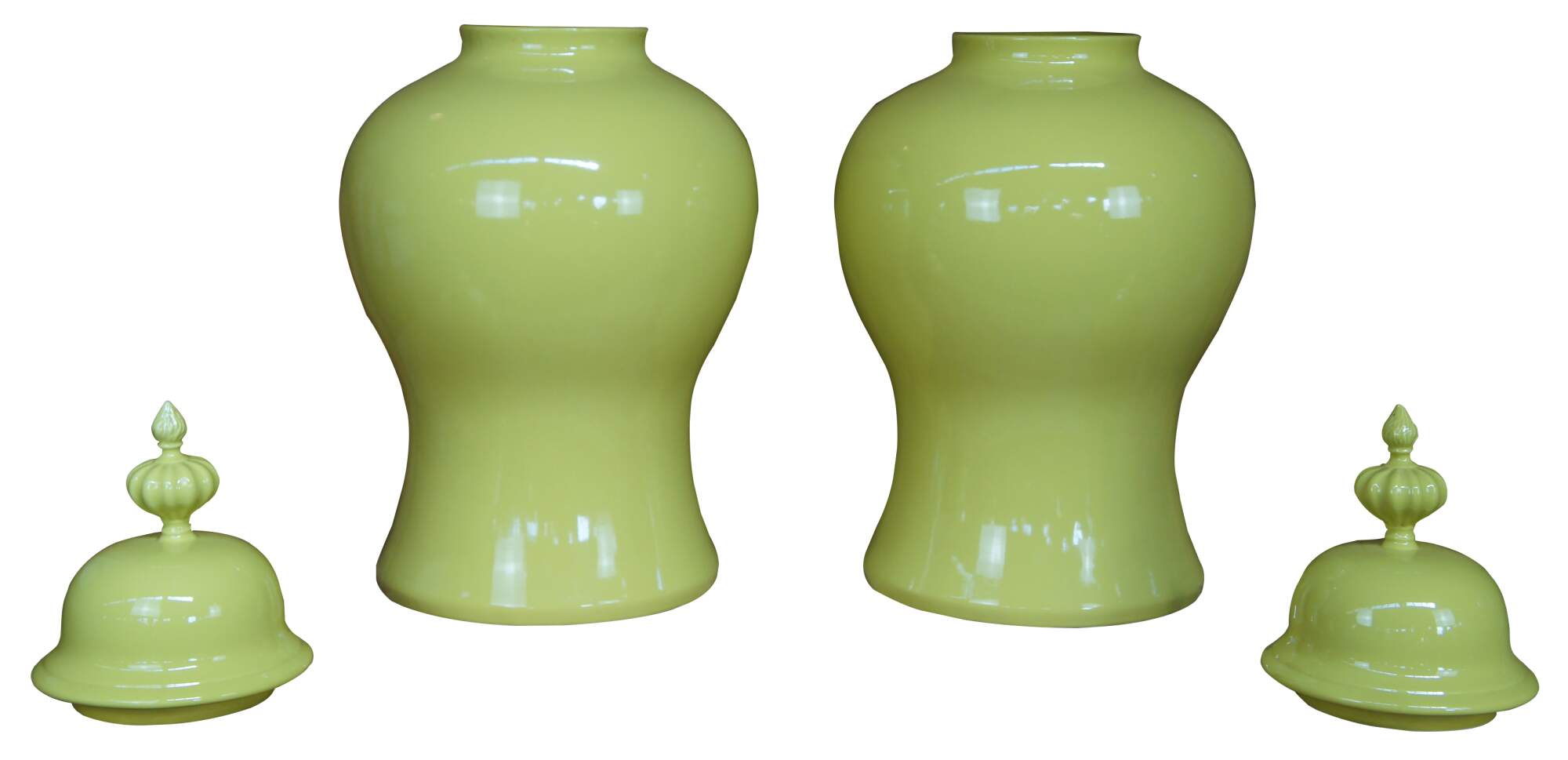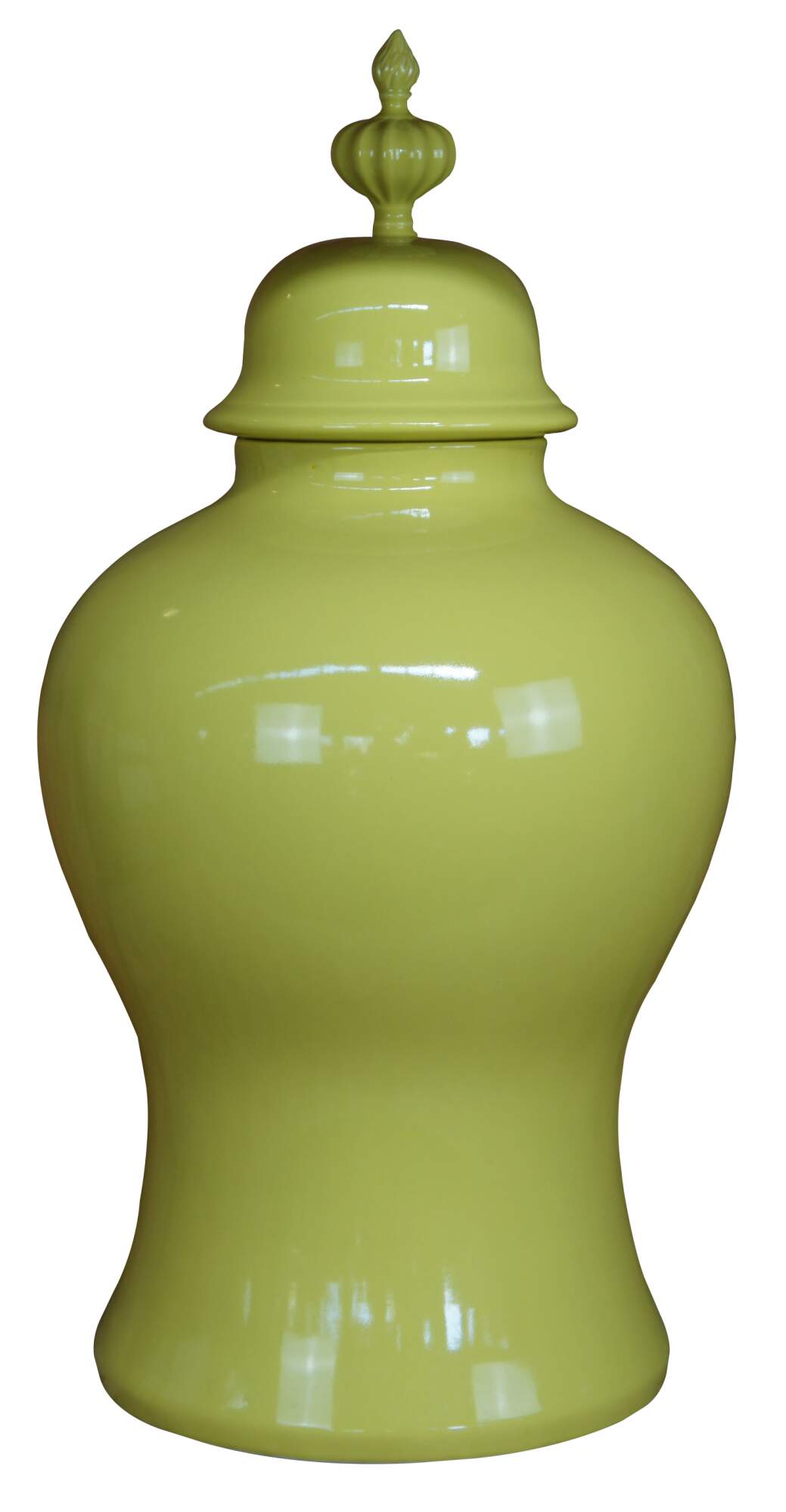 Global Views Colonial Williamsburg Ginger Jars, in Yellow. Made from ceramic inspired by the fluted urn-shaped finials that crown a green japanned bedstead in the Governor’s Palace in Colonial Williamsburg’s Historic Area.
