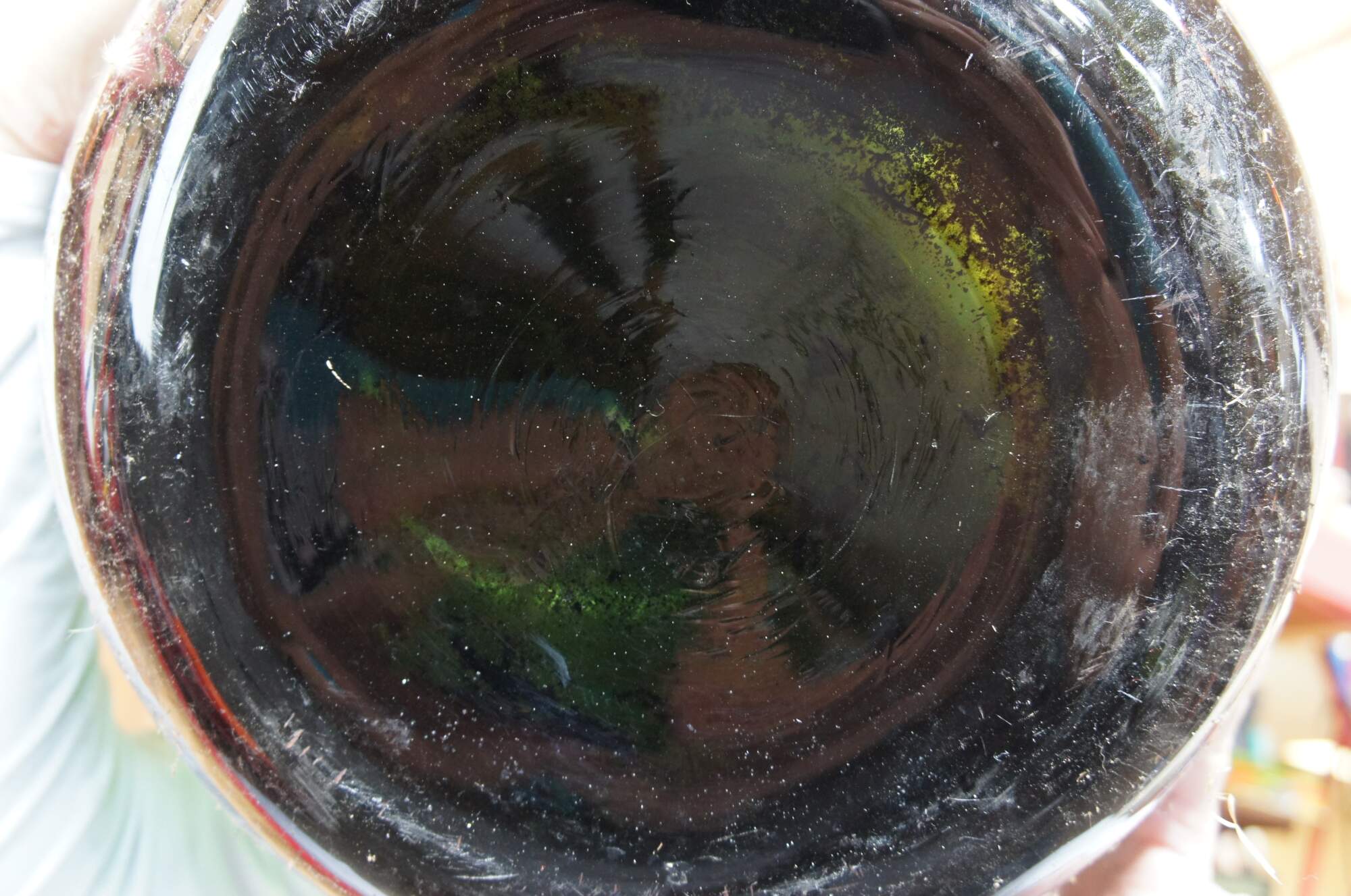 Good Condition; the top of the bottle is broken, cork fits in with cloth wrapped around it