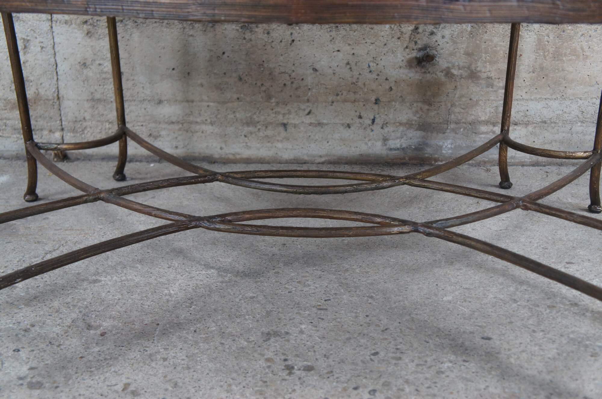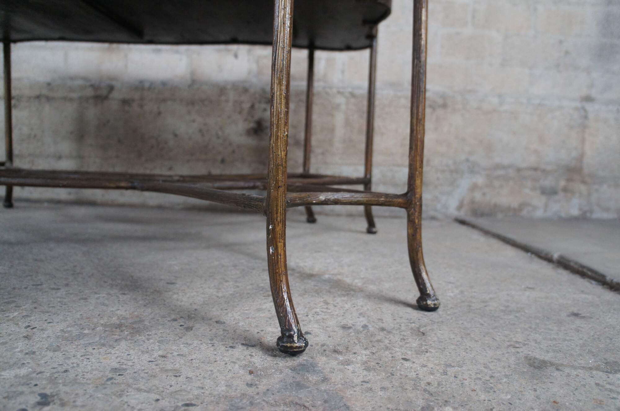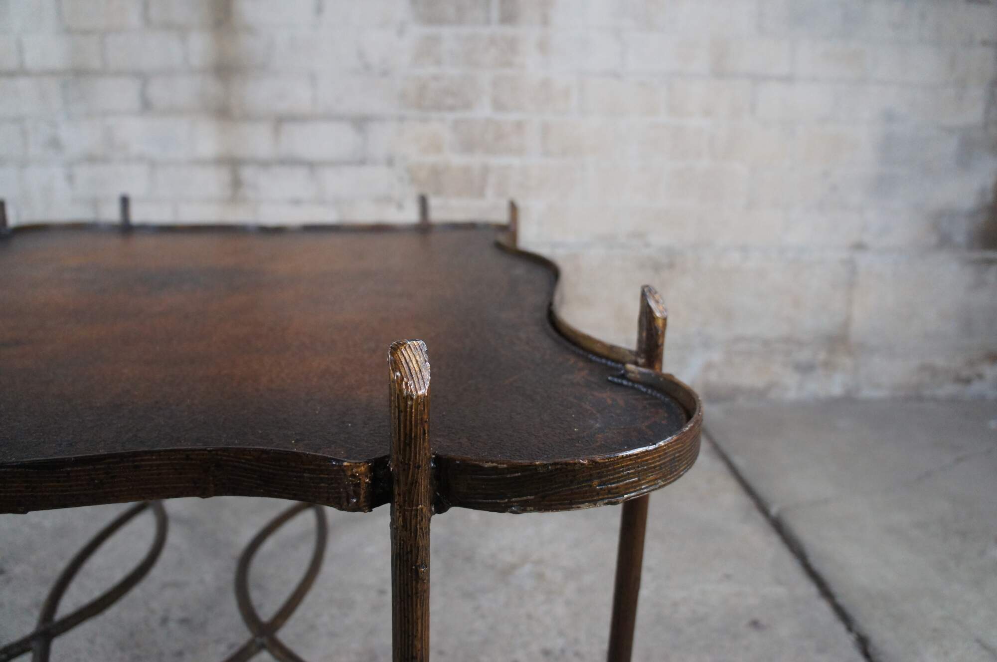 Gorgeous Maitland-Smith gilded faux bois iron coffee table in chinoiserie or Hollywood Regency style with tole painted metal tray style top, circa 1990.