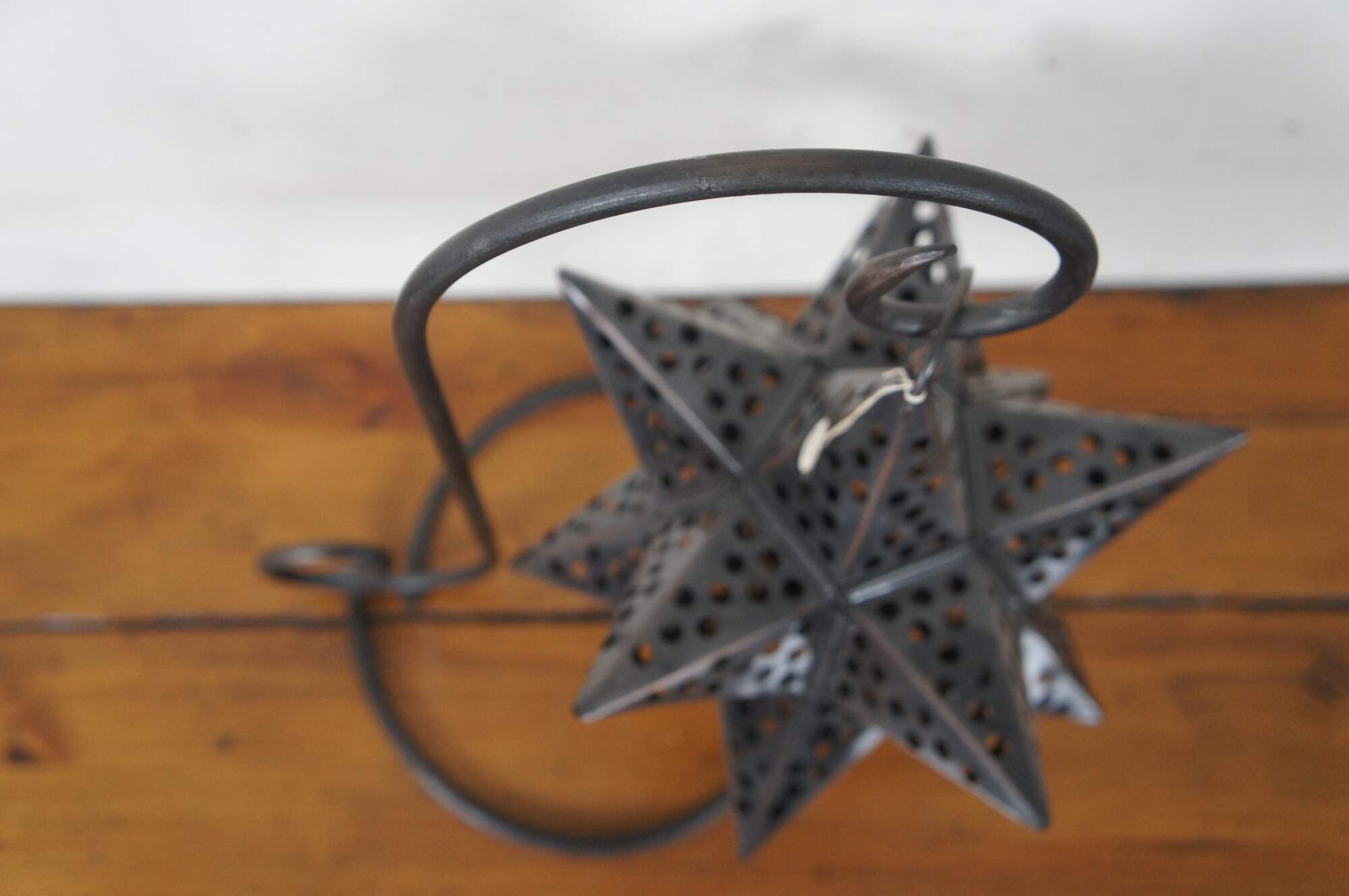 2 Vintage Pierced Metal Moravian Star Votive Lights Pendant Lanterns