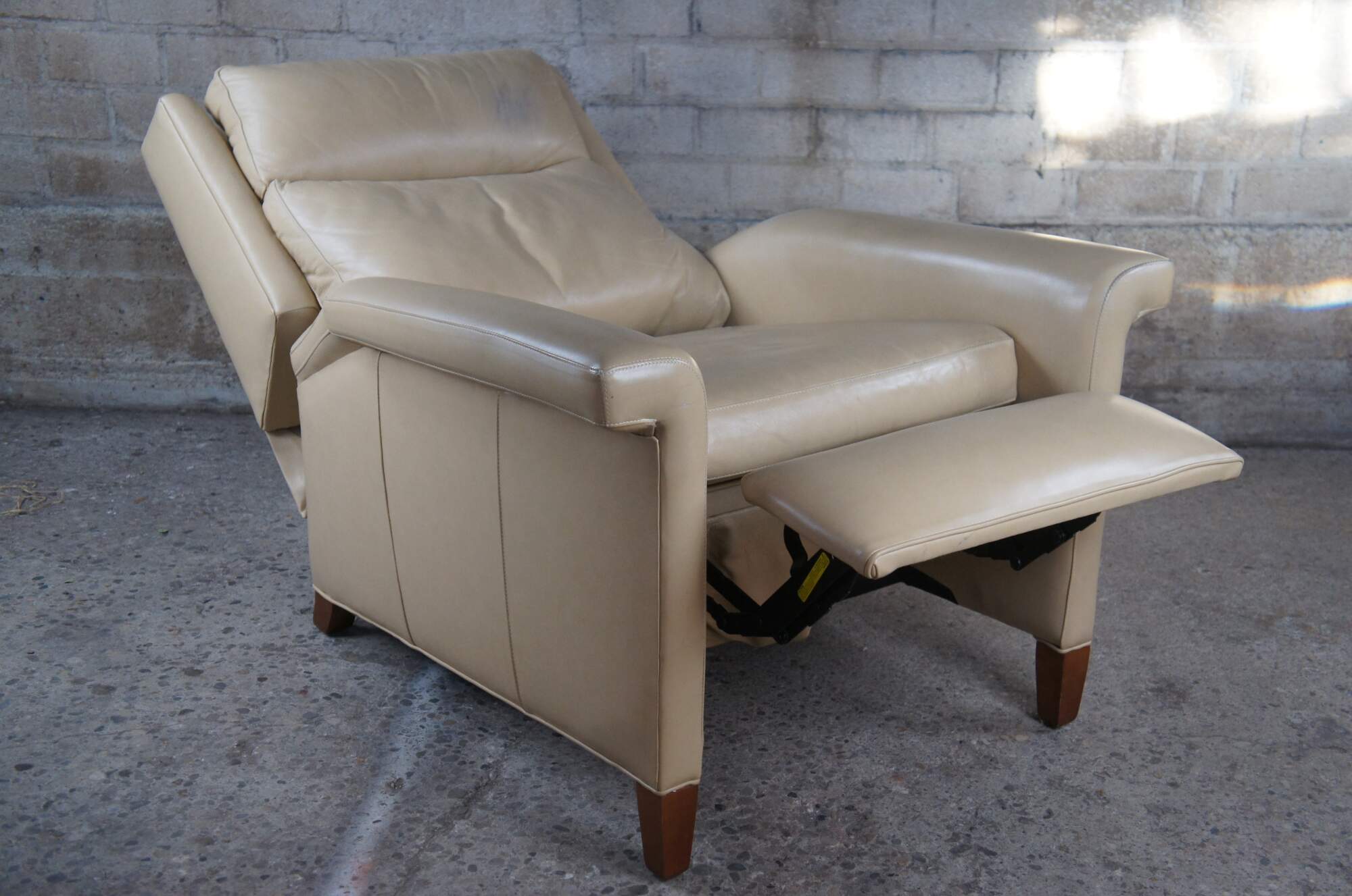 Hancock & Moore Motion Seating Collection Ghent Push Back Recliner. Cream Leather Fabric NC7000.