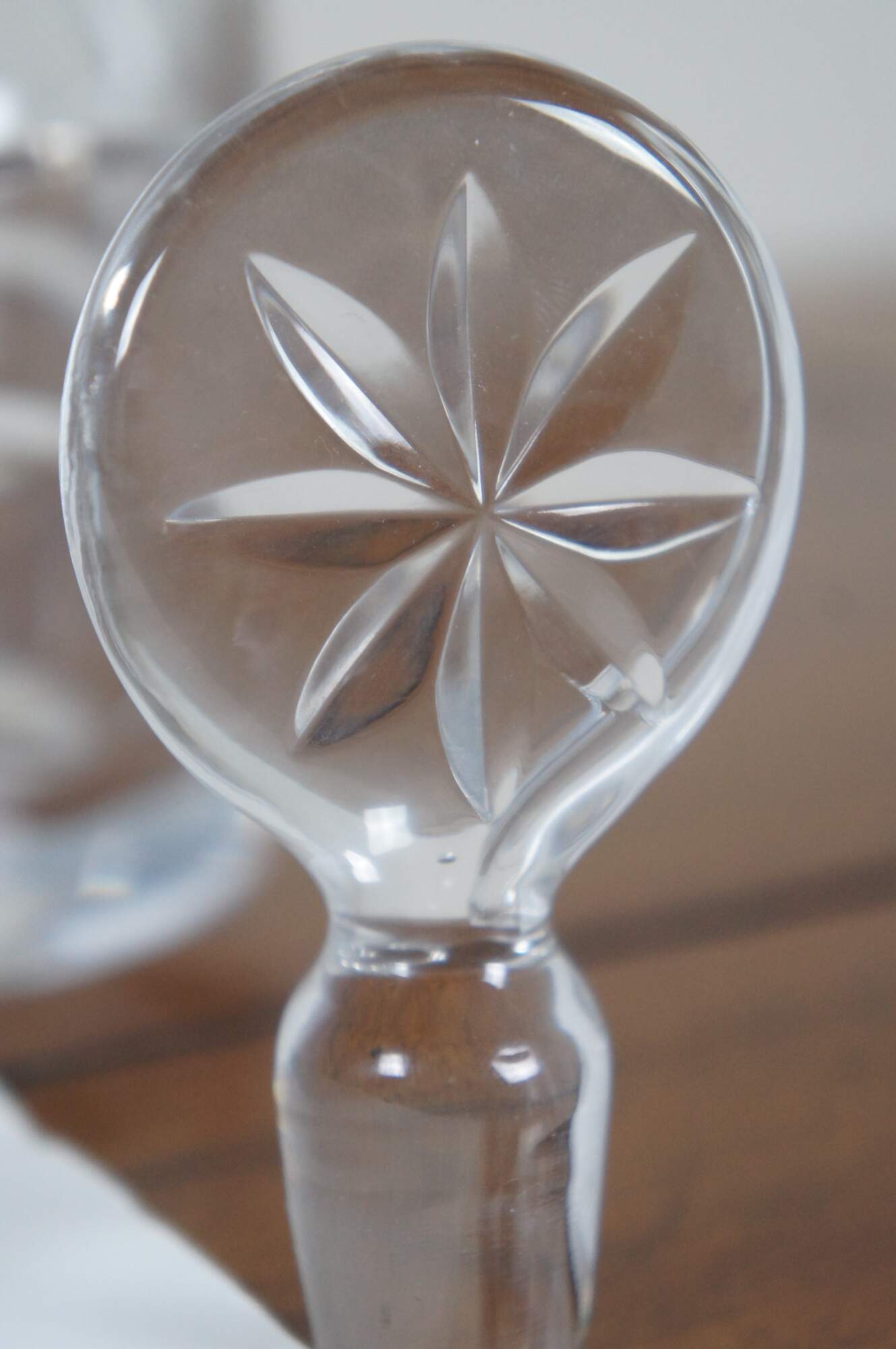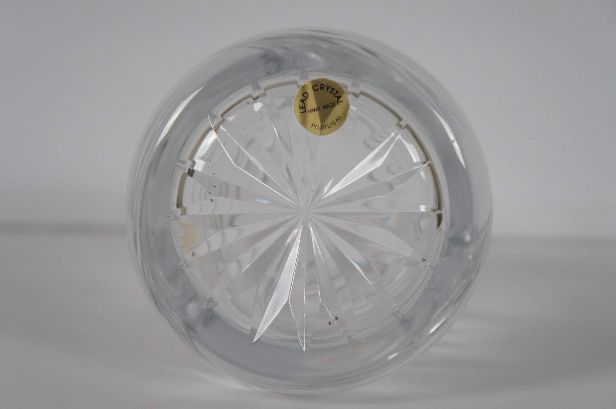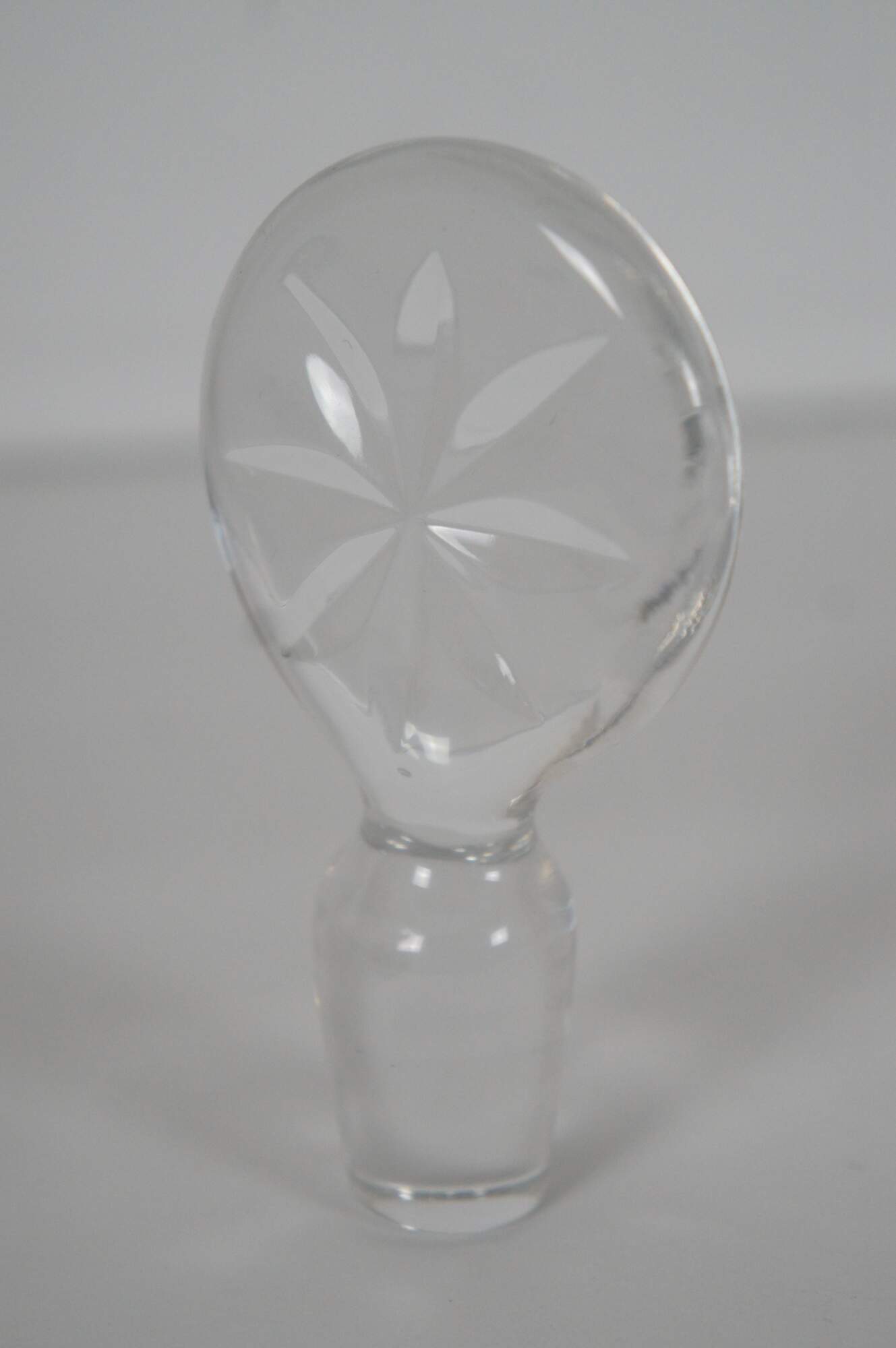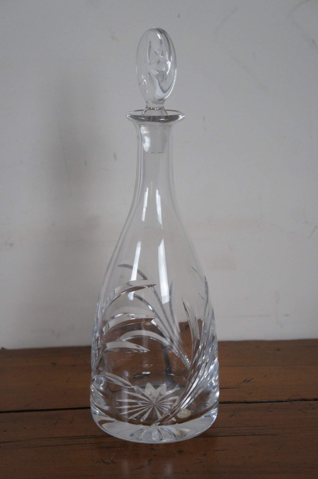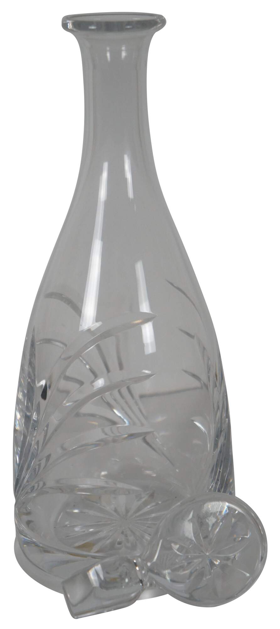 Vintage cut crystal wine decanter, made in Potugal, featuring a modern weeping cut design and round star cut stopper.