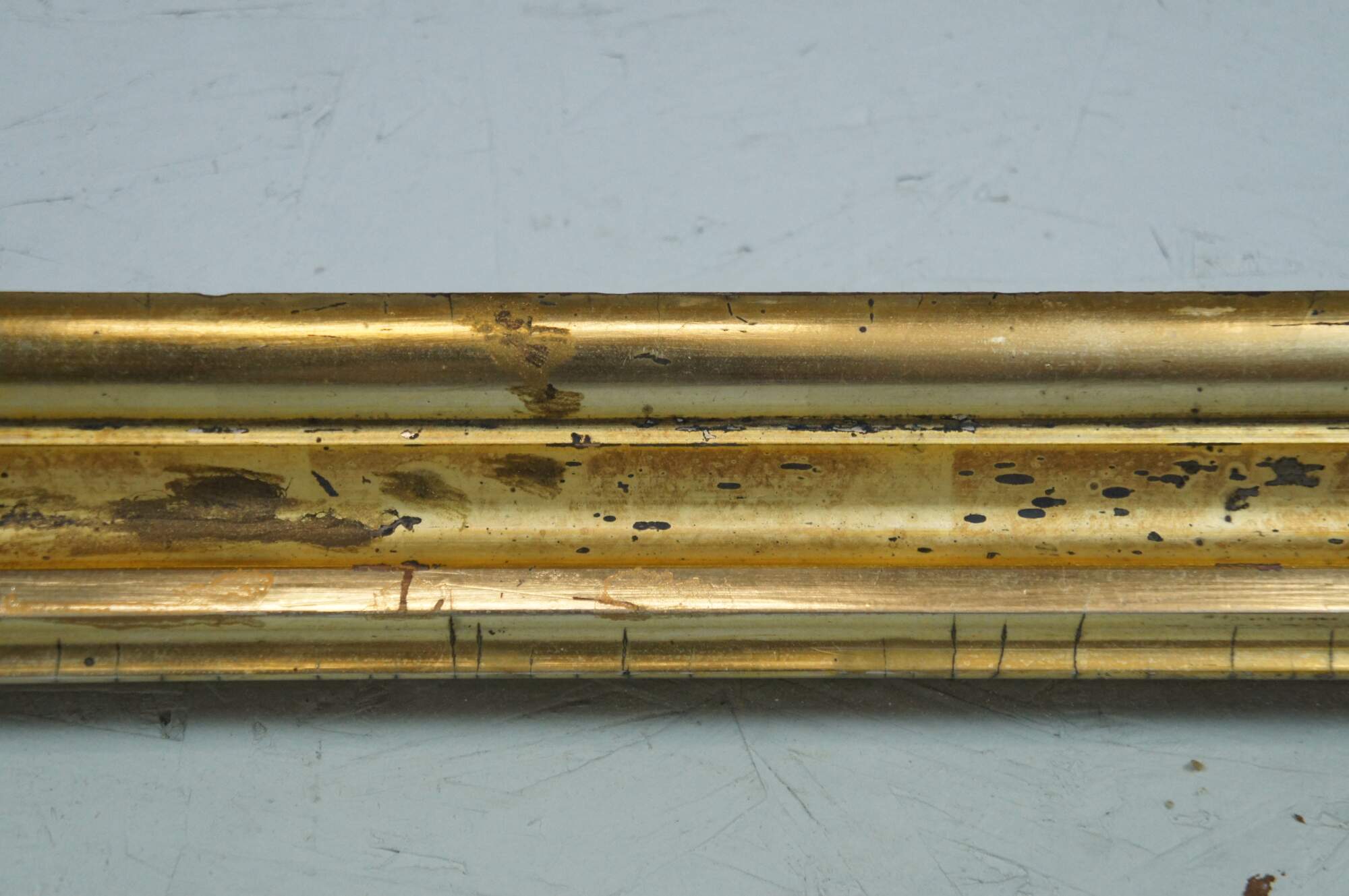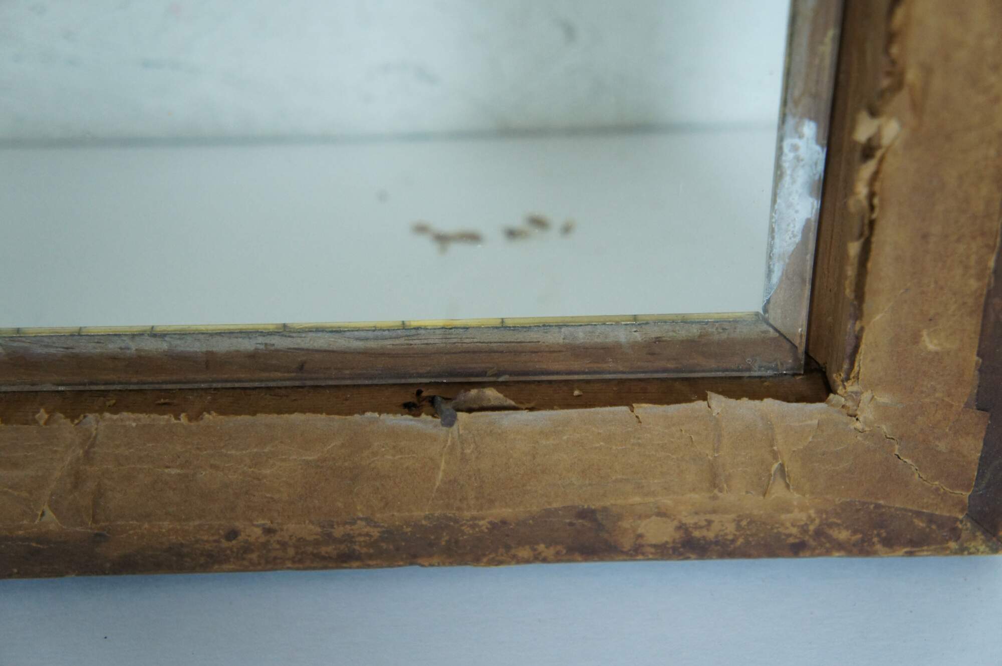 Antique beveled edge, rectangular gilt wood picture frame with original rolled / wavy antique glass.
