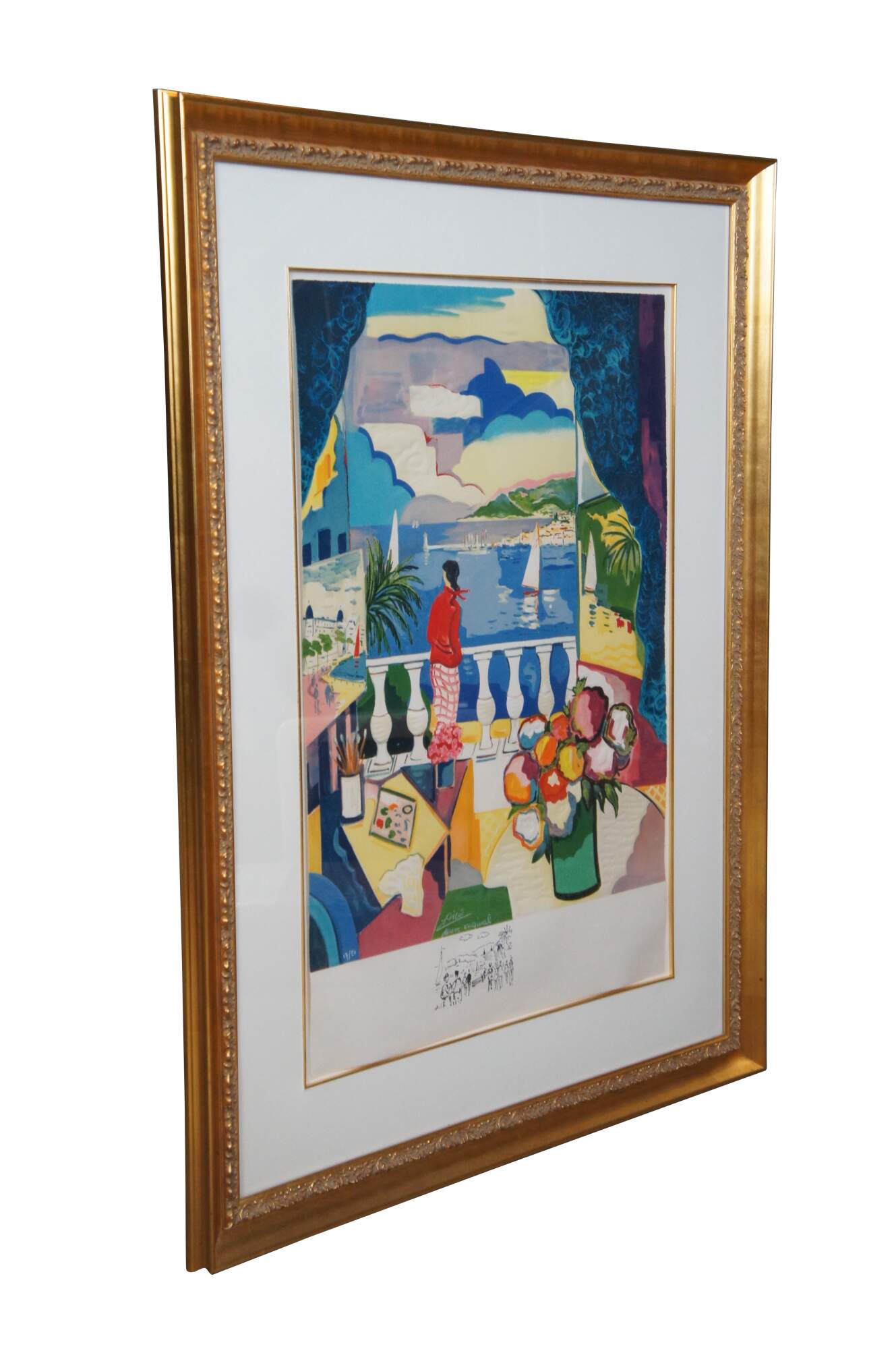 Vintage circa 1990 embossed lithograph print titled Femme � la Fenêtre / au Balcon (Woman in the Window / Balcony) by Jean-Claude Picot, pastel signed and numbered 17/50, with original remarque composition ink drawing at the bottom. Printed in Paris.