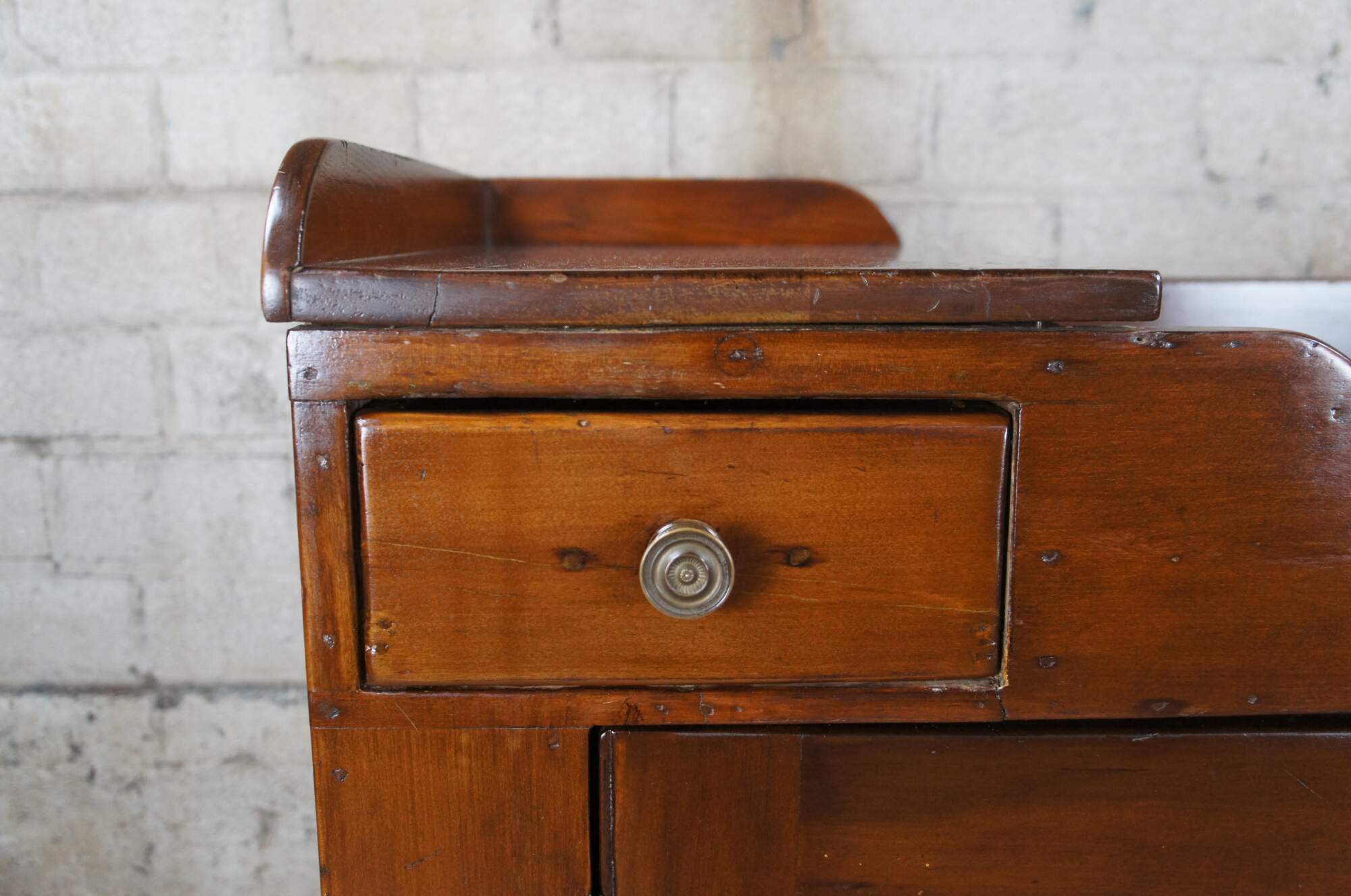 Antique Early American farmhouse dry sink or washstand cabinet. Made of walnut featuring two tiered upper surface with one drawer and two doors that open to lower shelves.