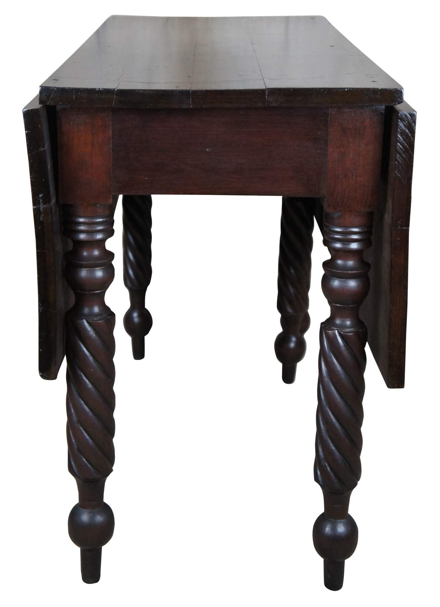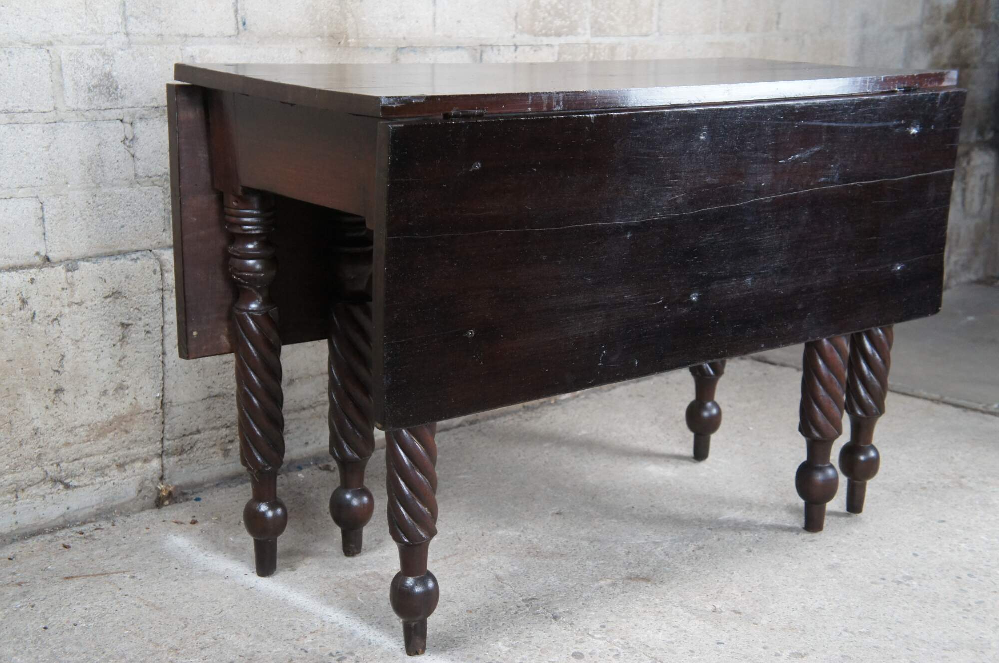 Antique 19th century dropleaf gateleg console or dining table. Made of walnut featuring two leaves with turned barley twisted legs.