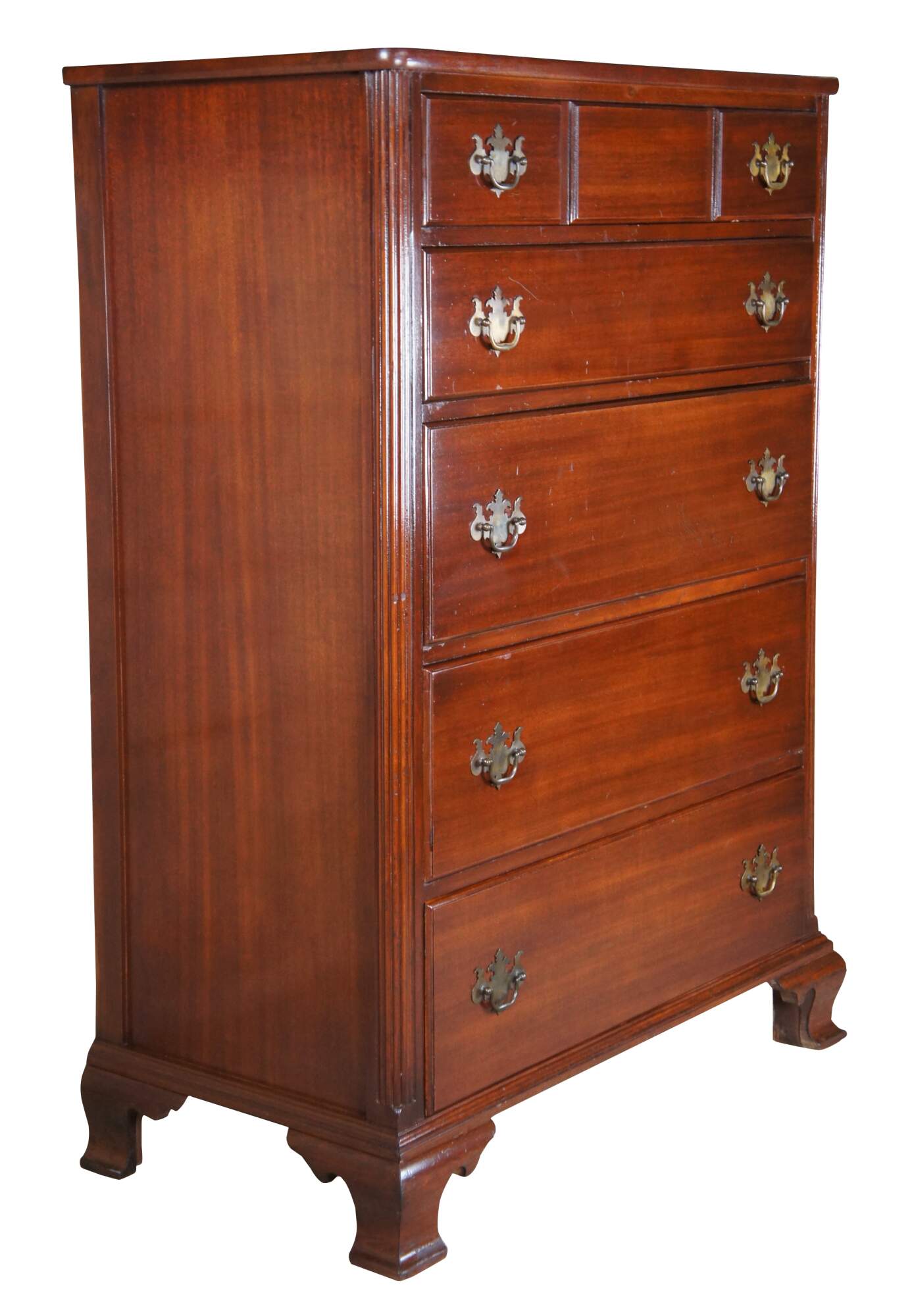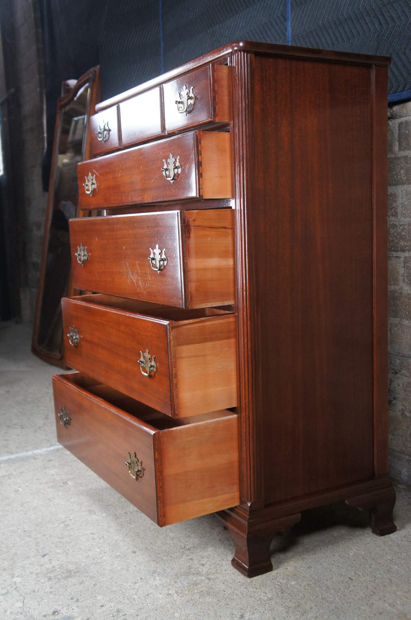 Antique Mahogany Chippendale Georgian Style Tallboy Dresser Chest of Drawers 50"