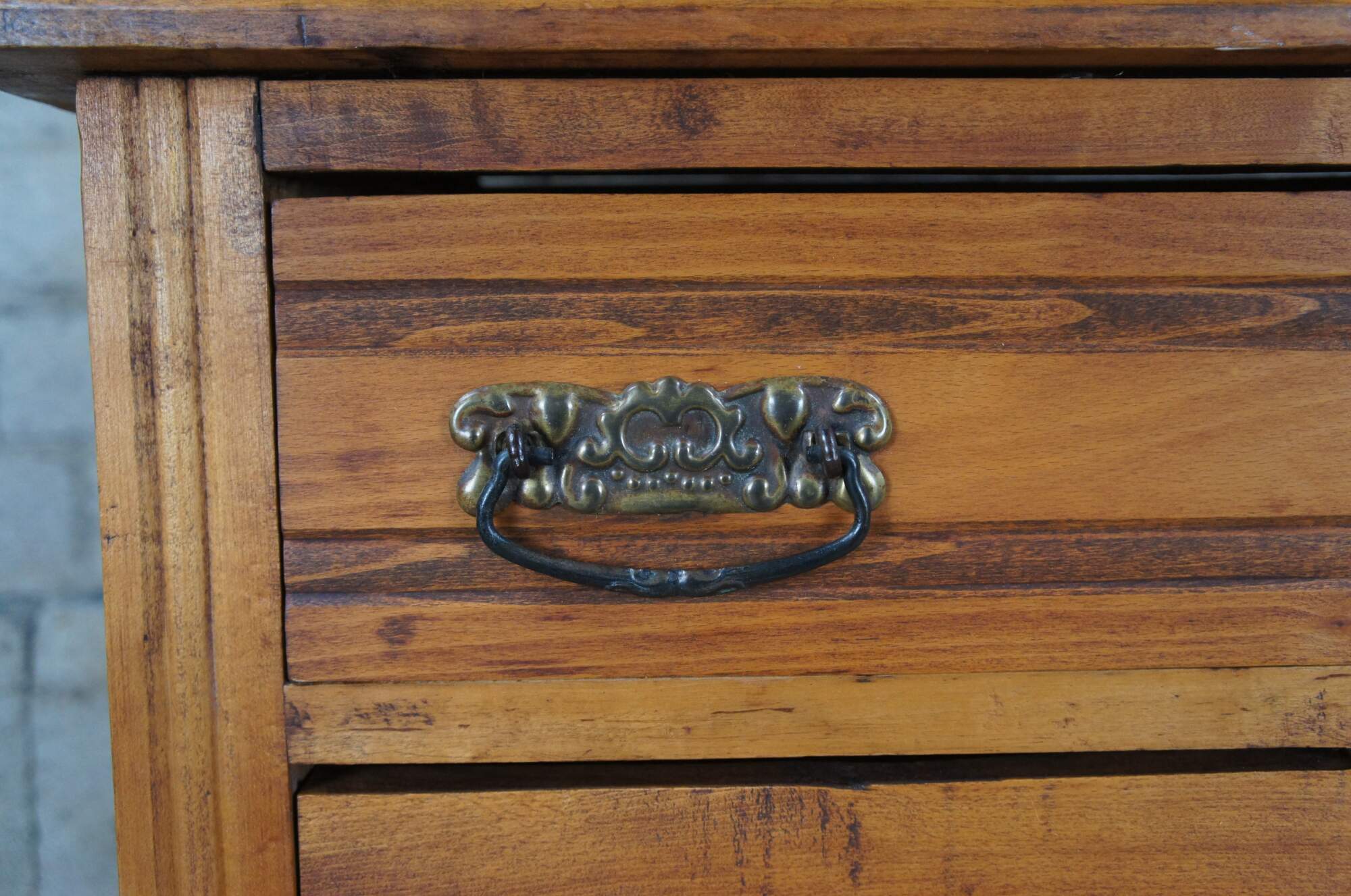 Turn of the century oak washstand featuring three drawers with side cabinet and brass hardware.