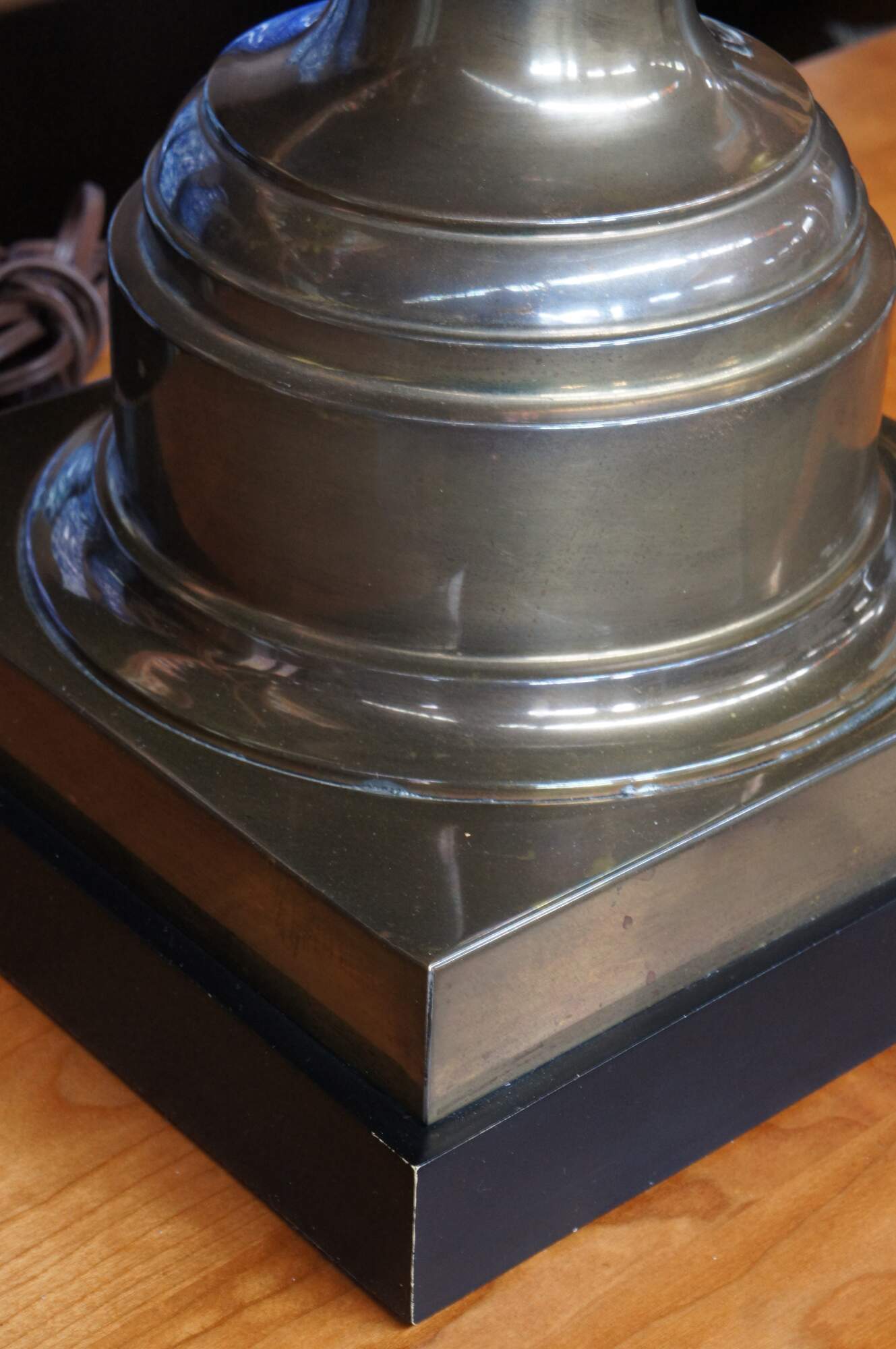 Good Overall - A few trim spots missing along the lower edge of shade. Tarnish - This lamp can be polished if you want it to glisten.