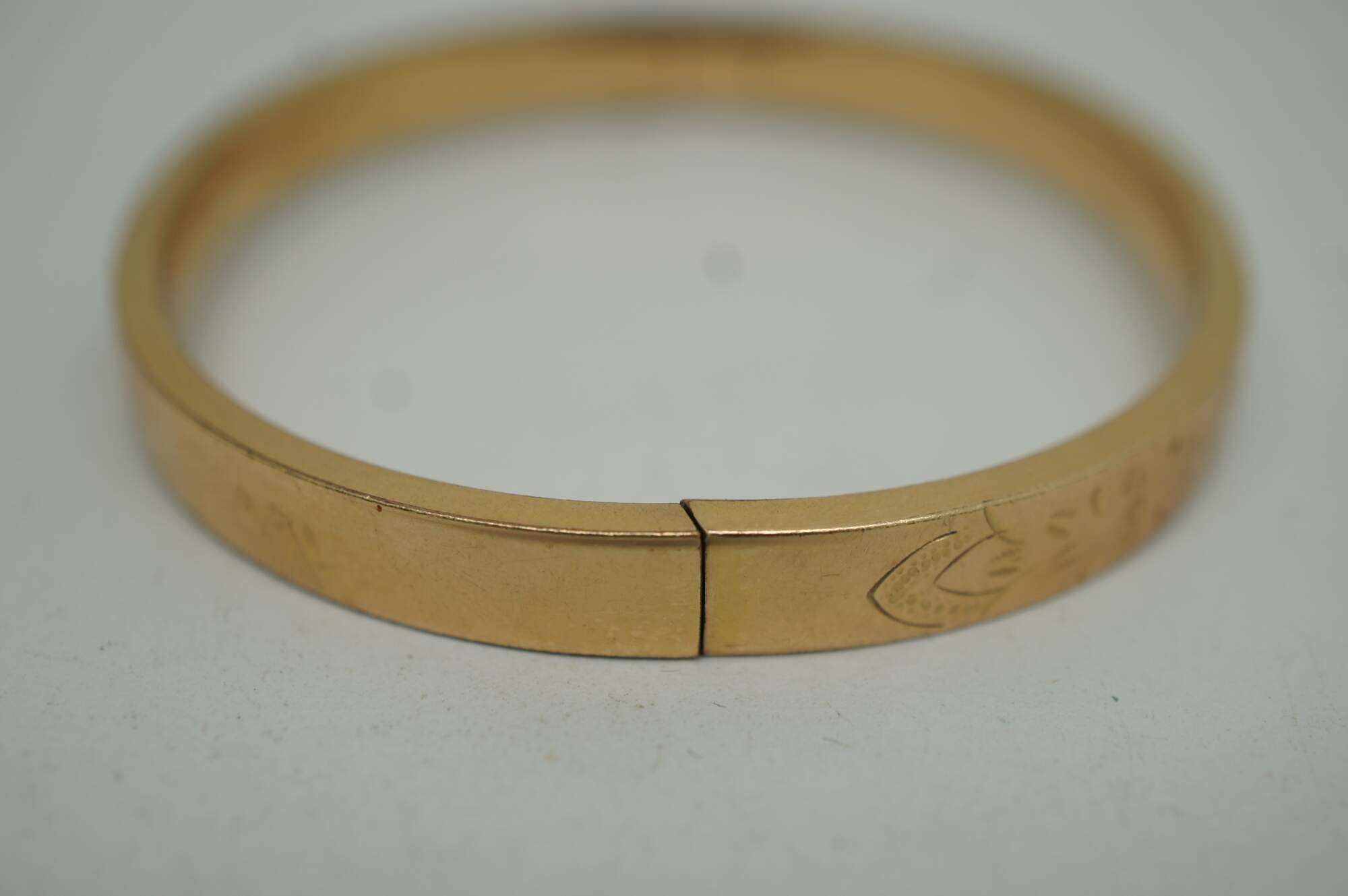 Antique Victorian Winard 12K gold filled bangle bracelet with a simple art deco etched floral design. Marked 8 (size?) - Winward 12KT G,F.
