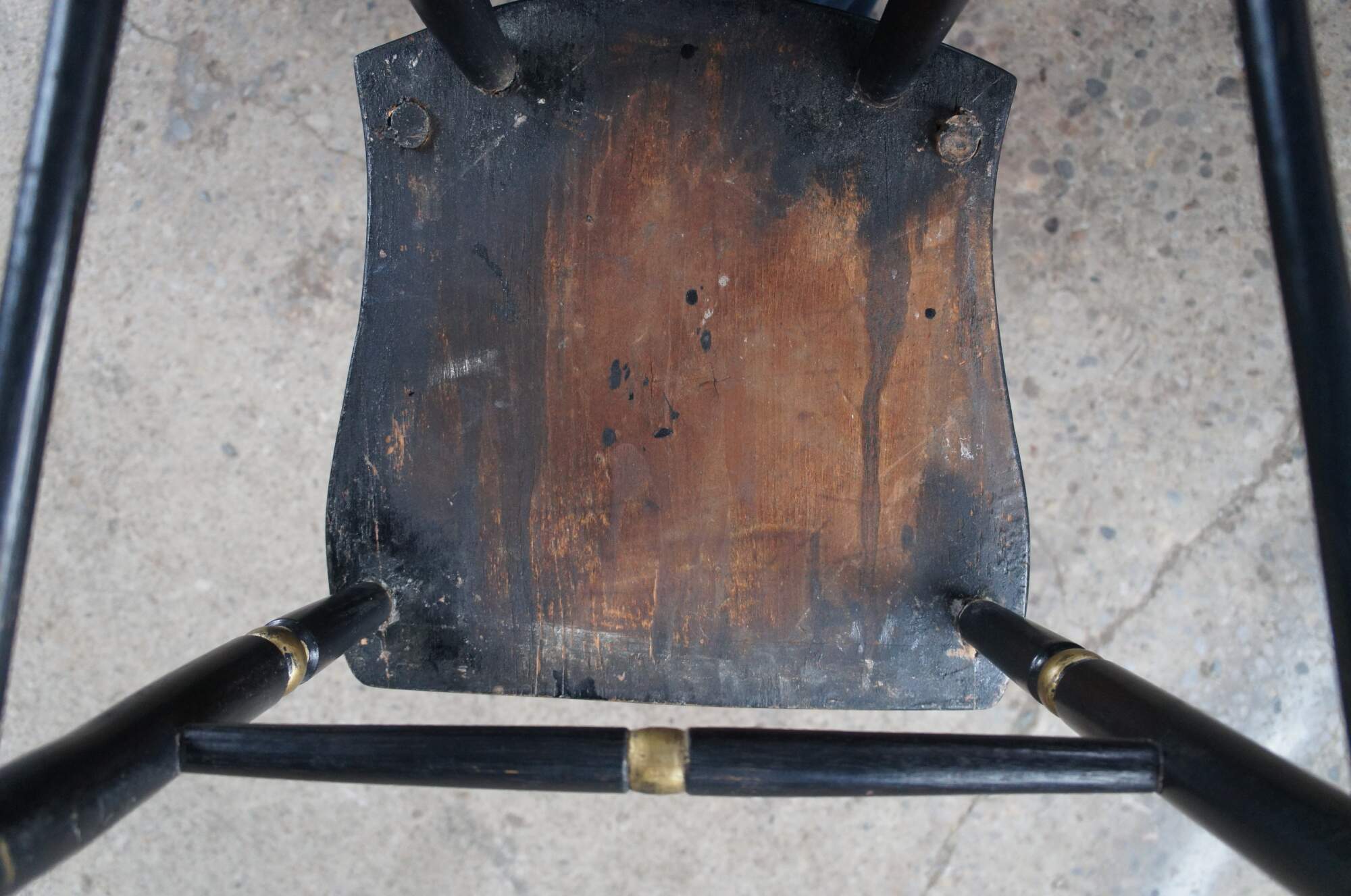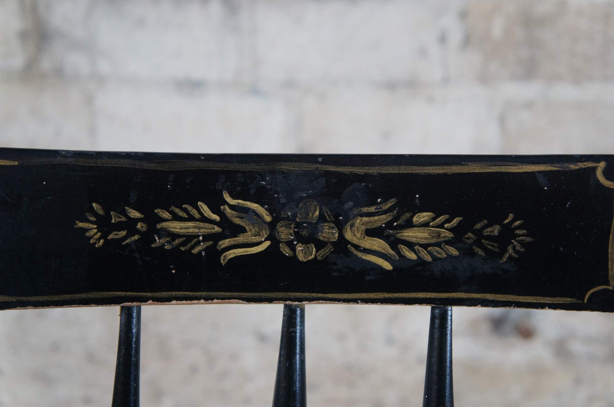 Antique primitive Hitchcock style plank seat Windsor chair featuring black stenciled fruit design with gold accents.