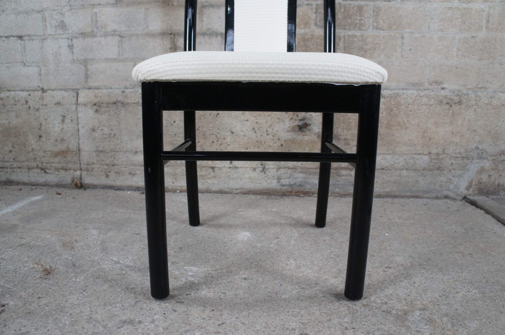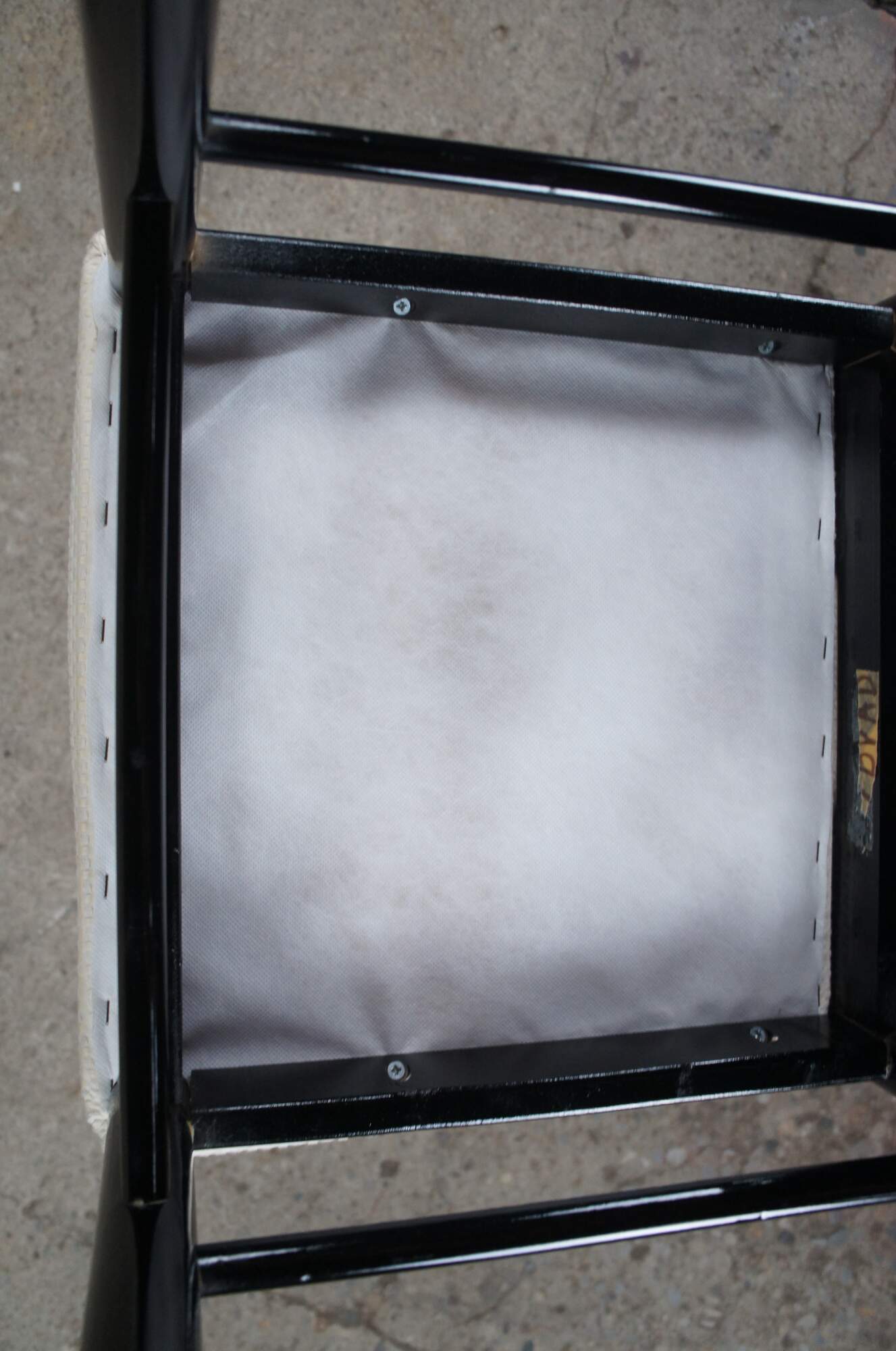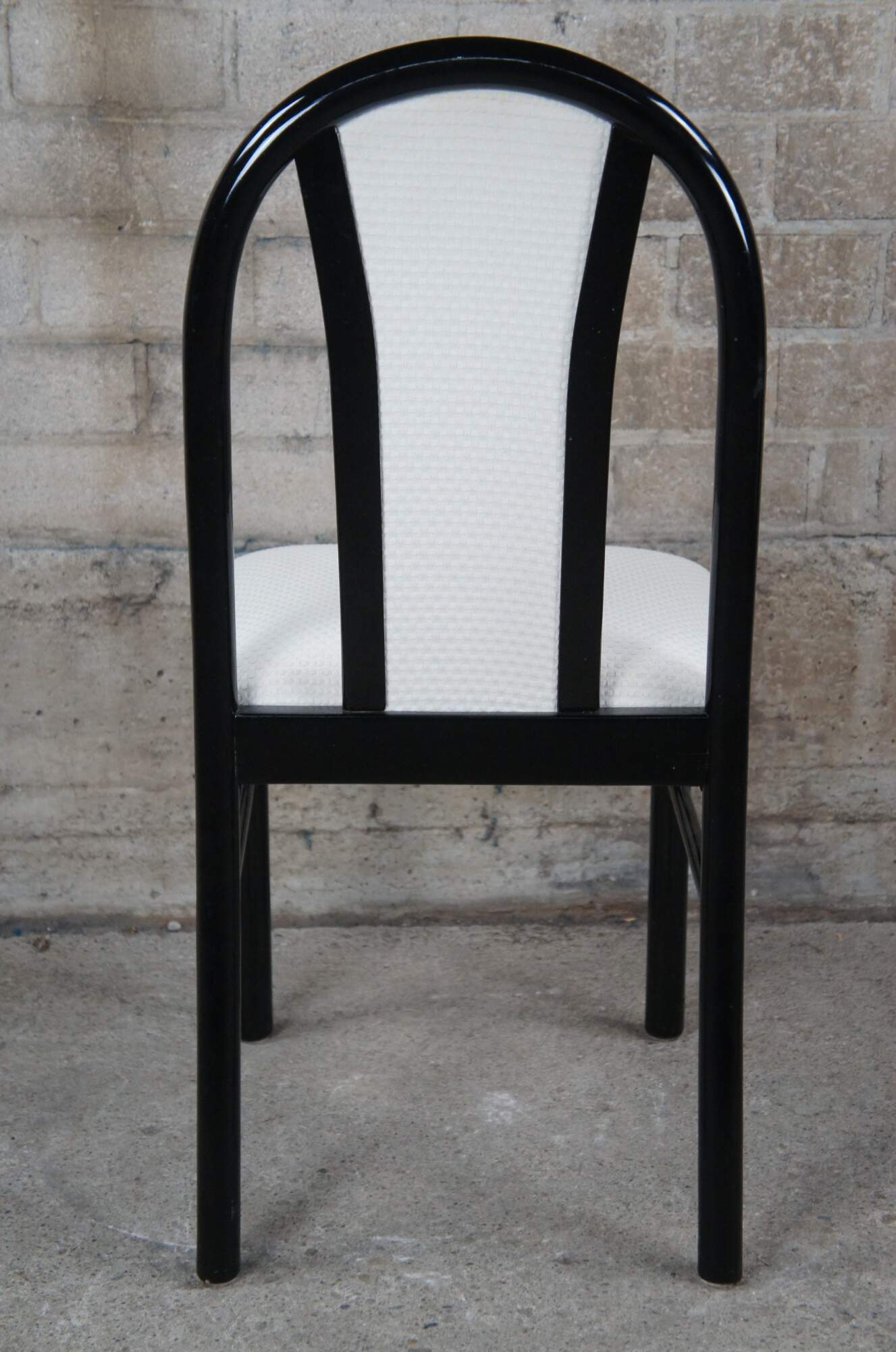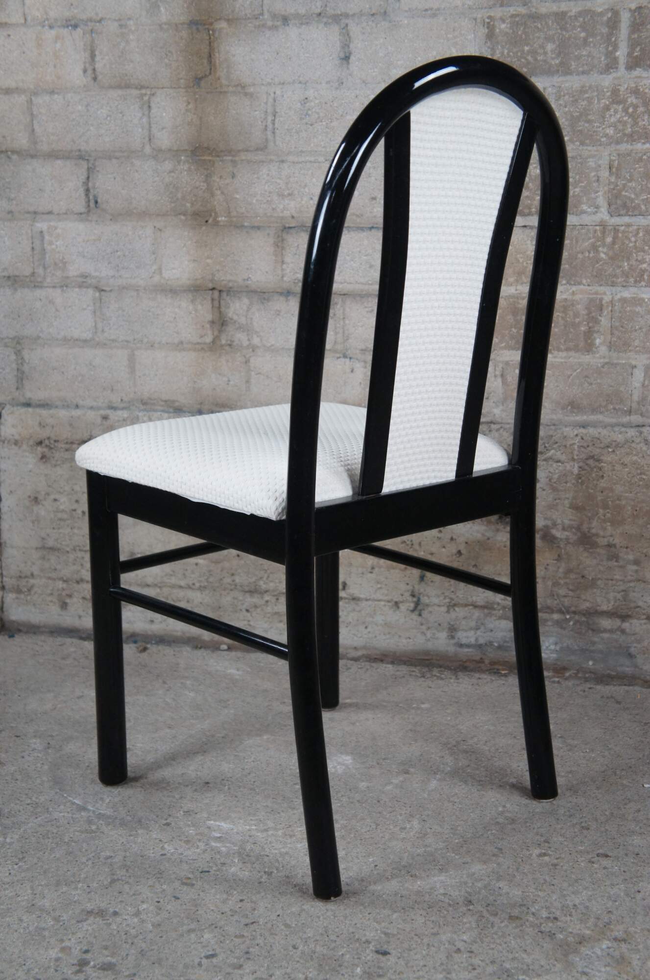 Circa 1970s black lacquer bentwood side chair. Features a split back with upholstered continuing to the seat.