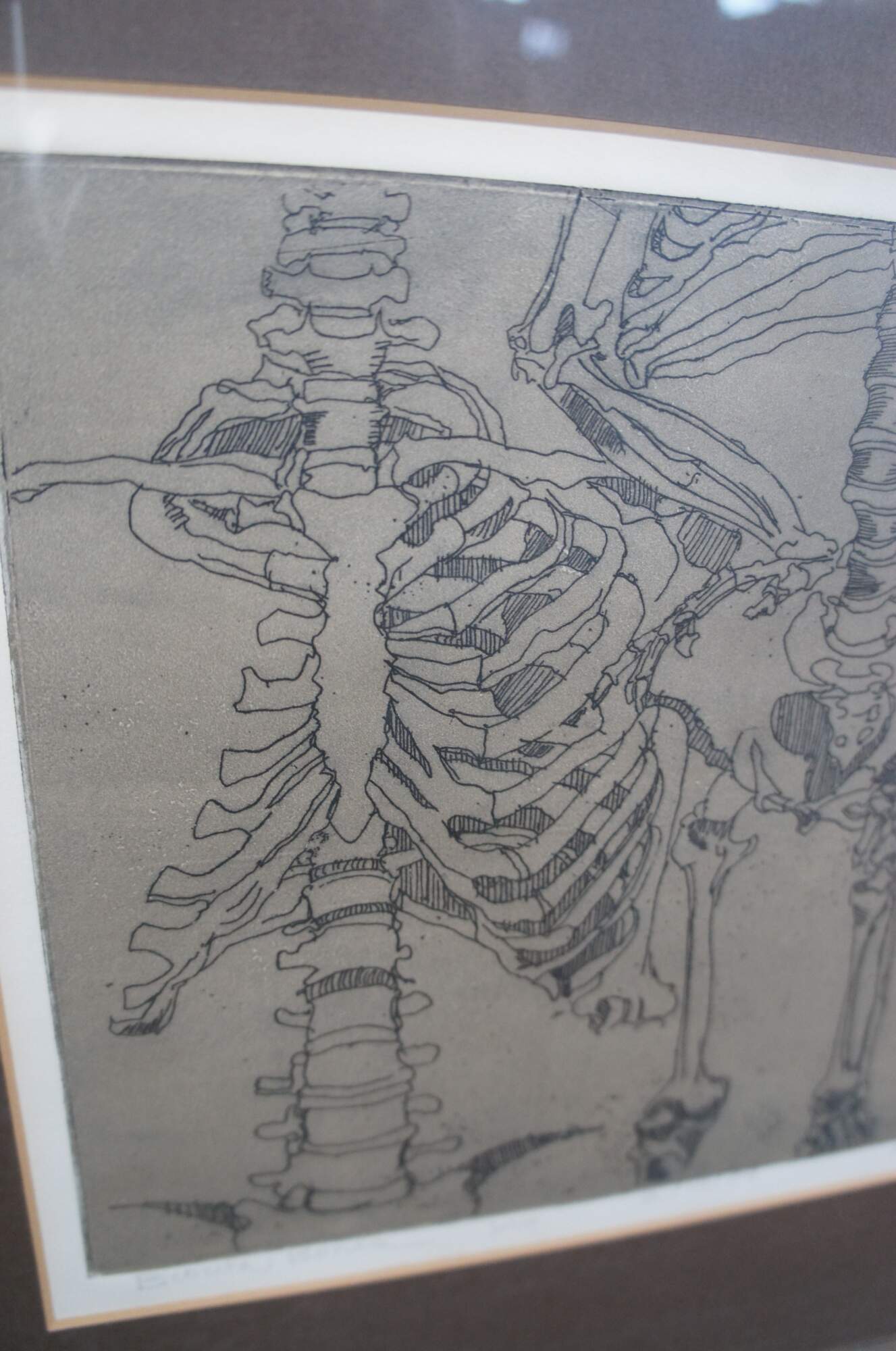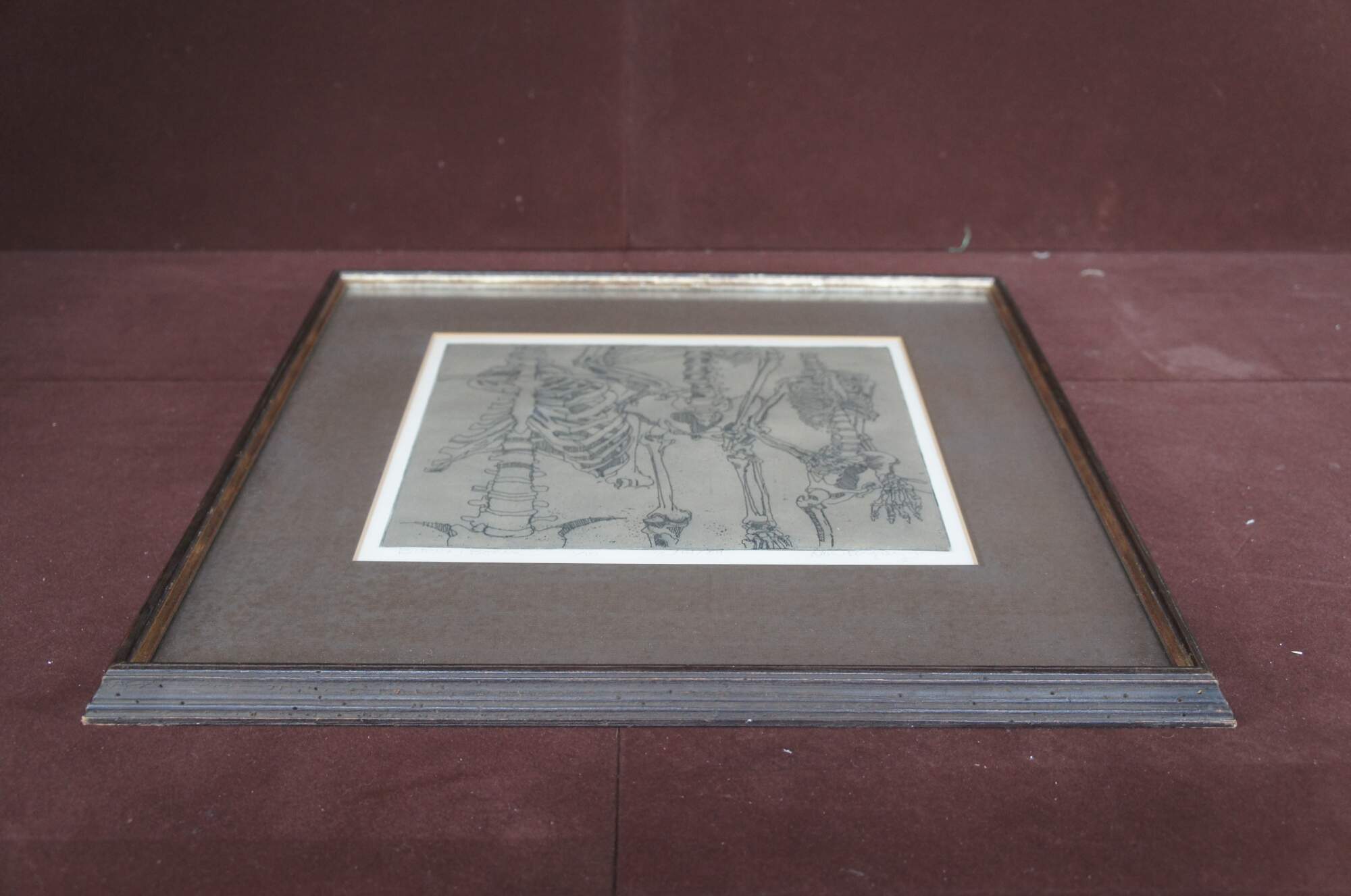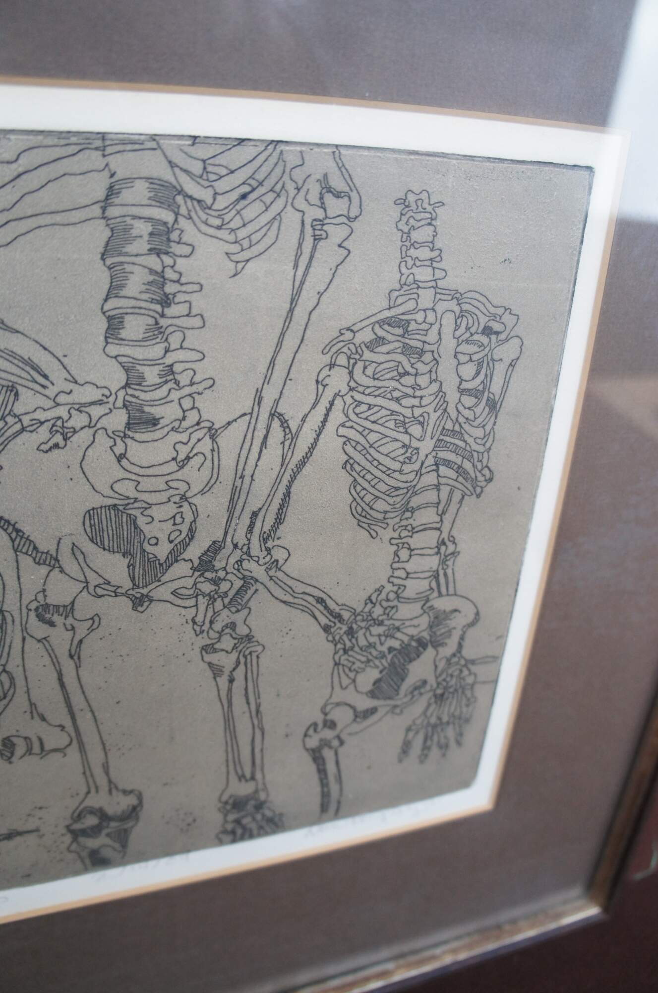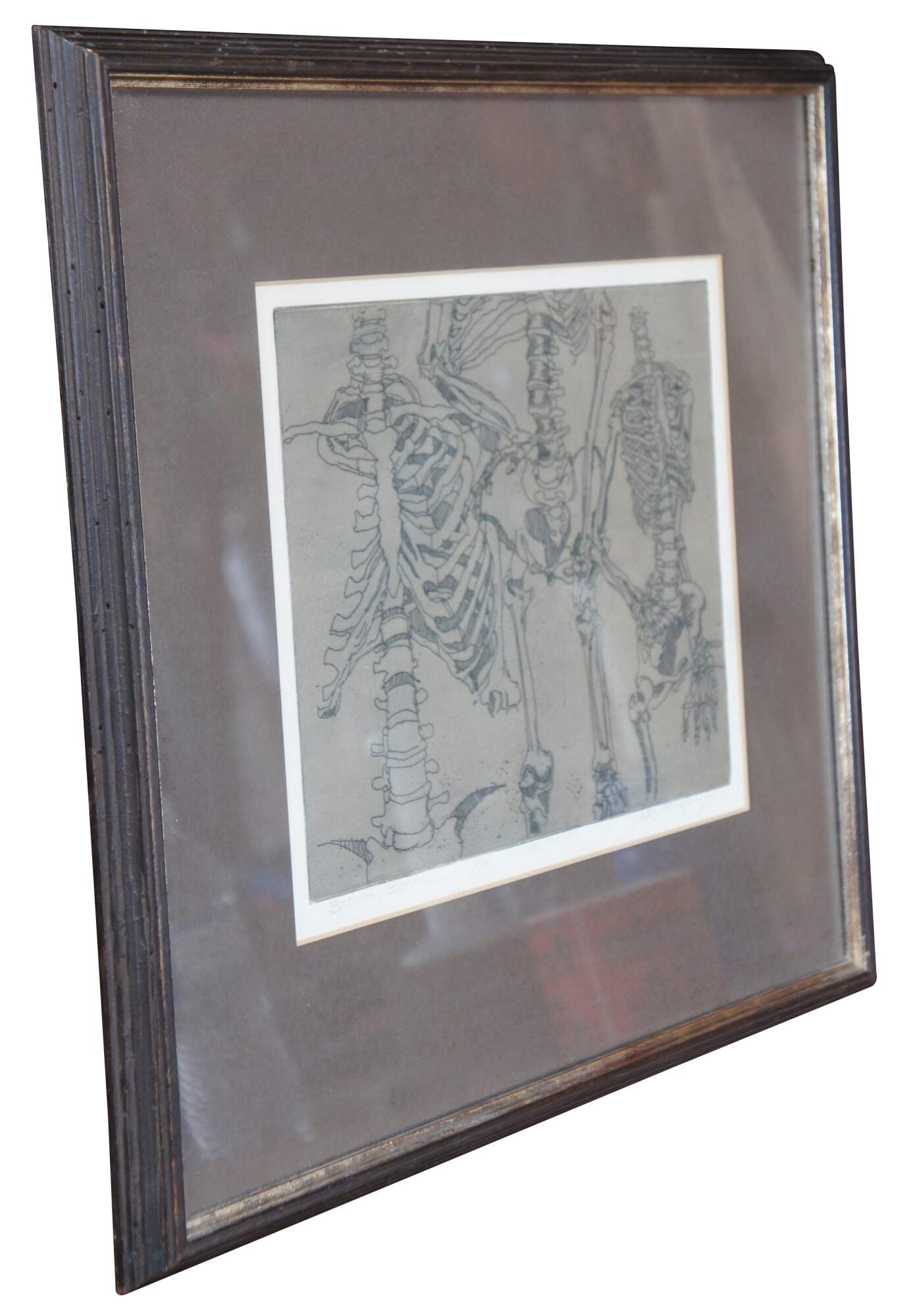 Vintage Dean Pingray Brown Bones skeleton etching. This piece was made on valentines day in 2009, Edition 1 of 10.