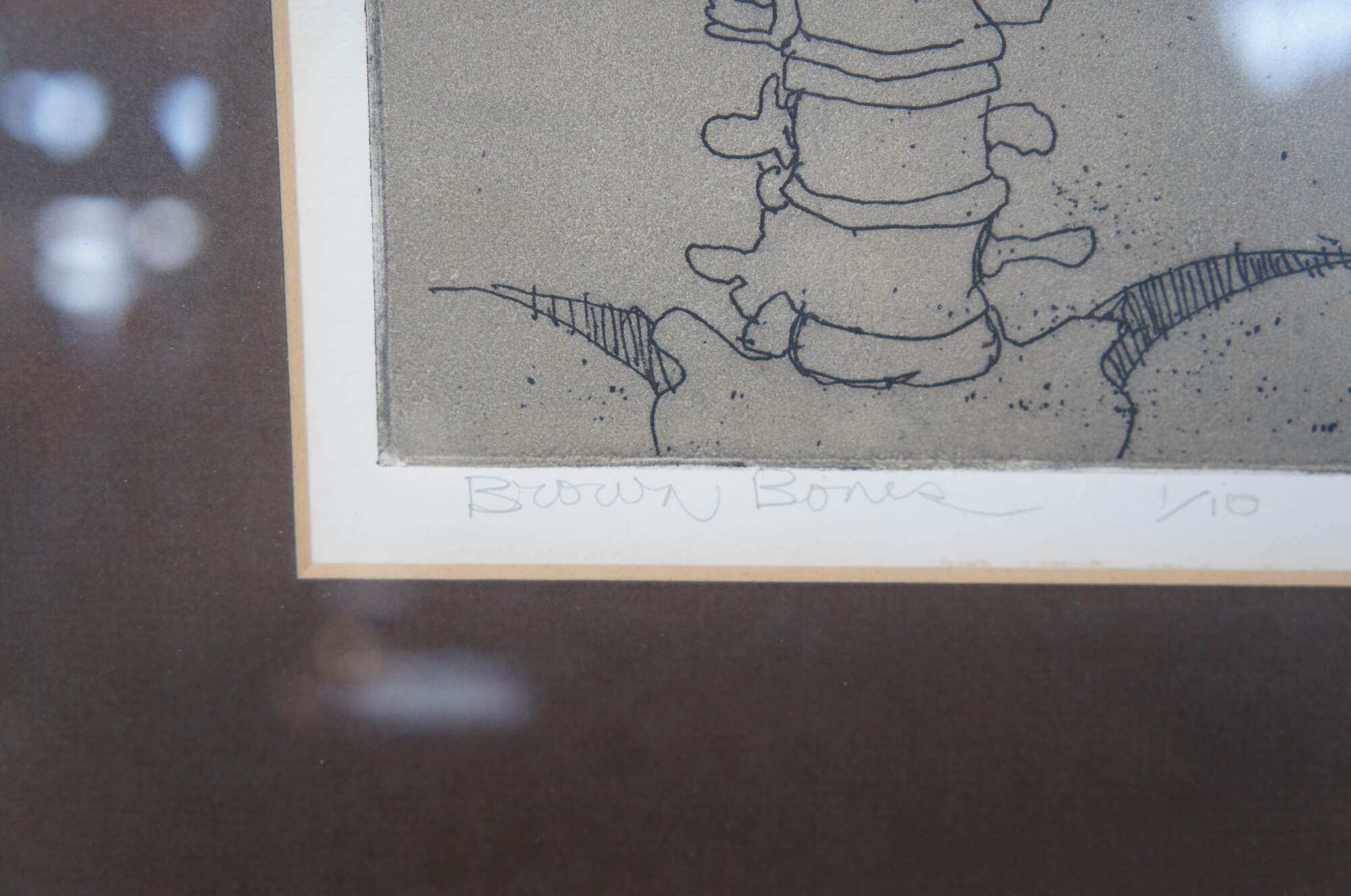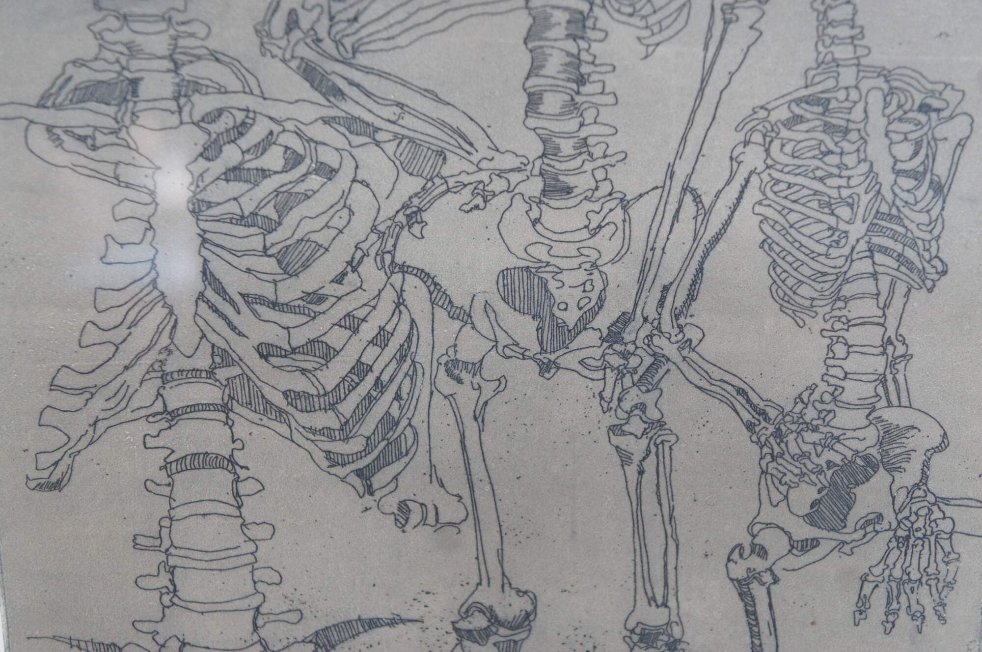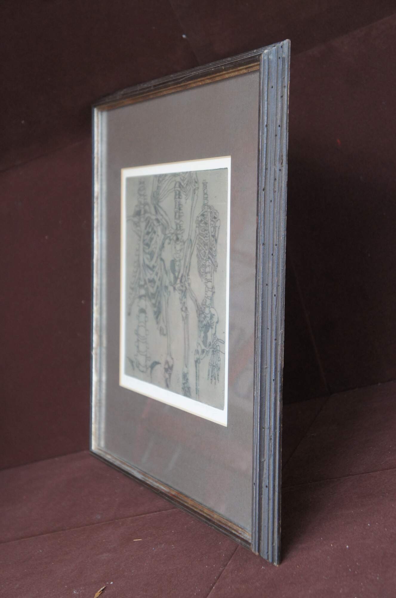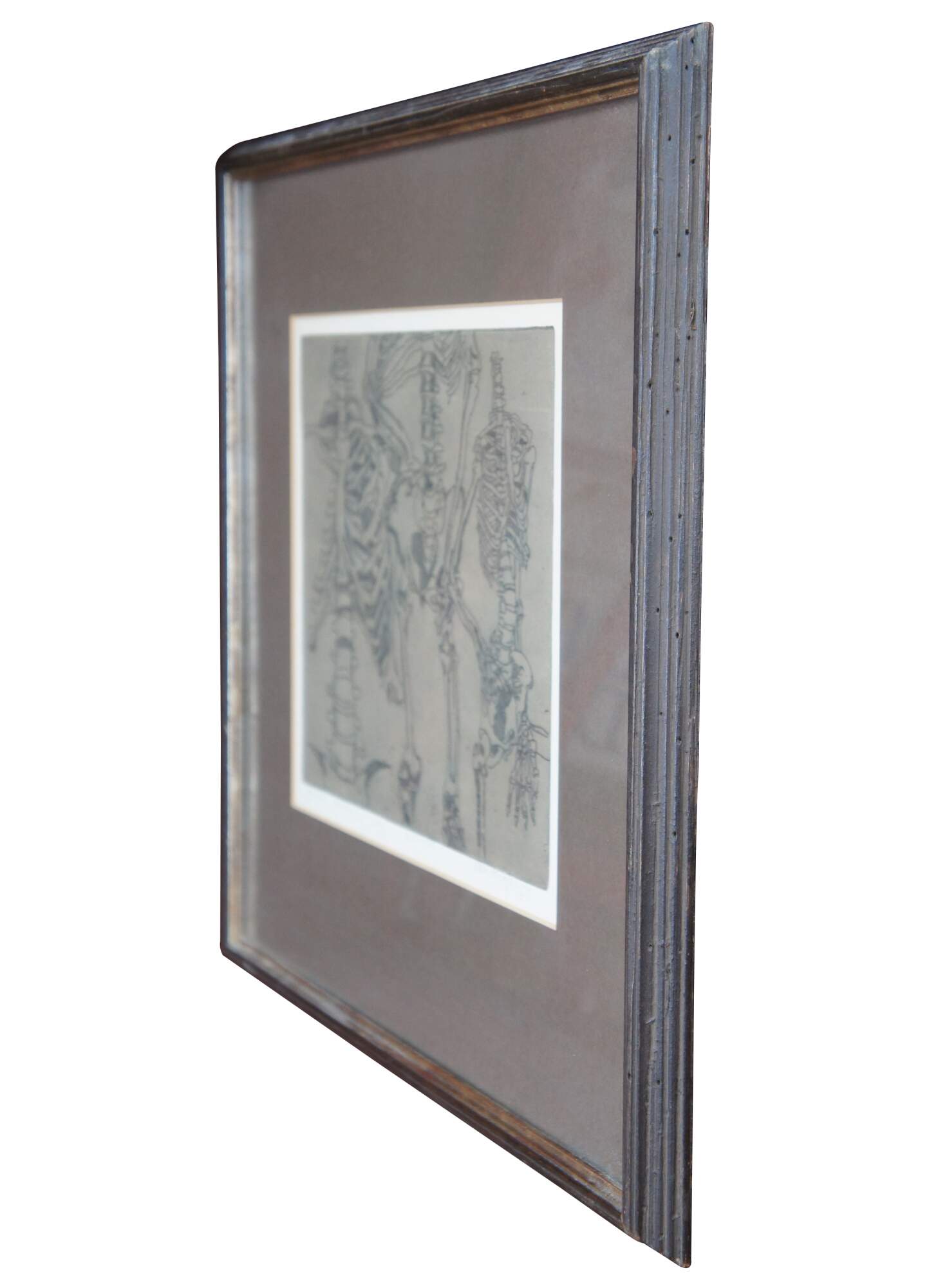 Vintage Dean Pingray Brown Bones skeleton etching. This piece was made on valentines day in 2009, Edition 1 of 10.
