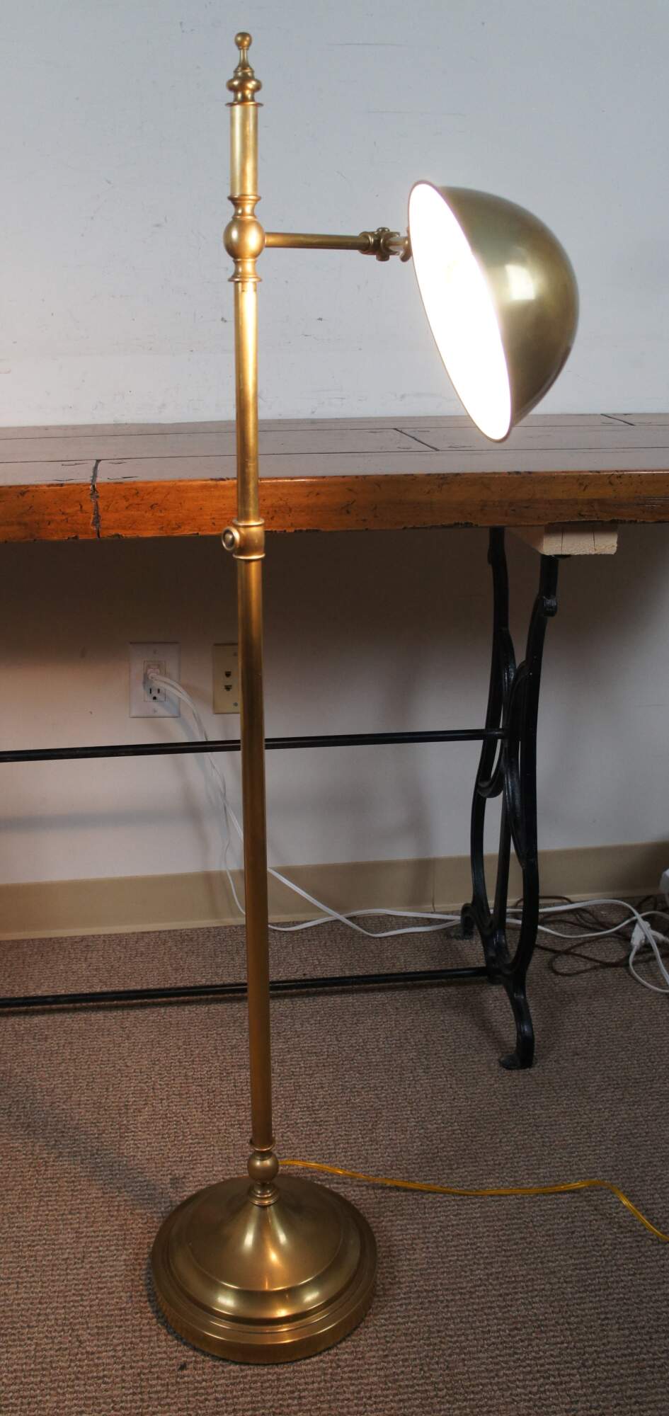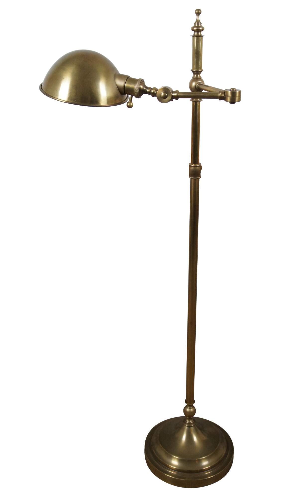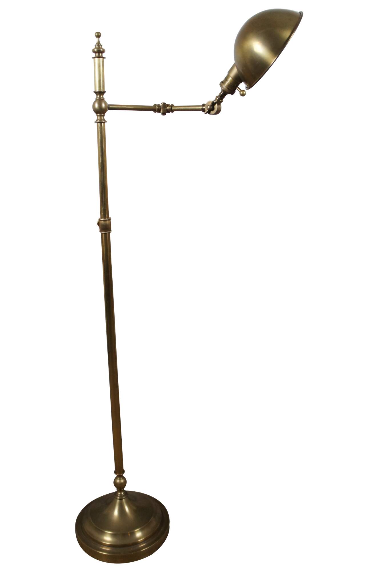 Robert Abbey Ant Bee (1873) articulated swing arm floor pharmacy / library / reading lamp in antique brass finish. Circa 2003.
